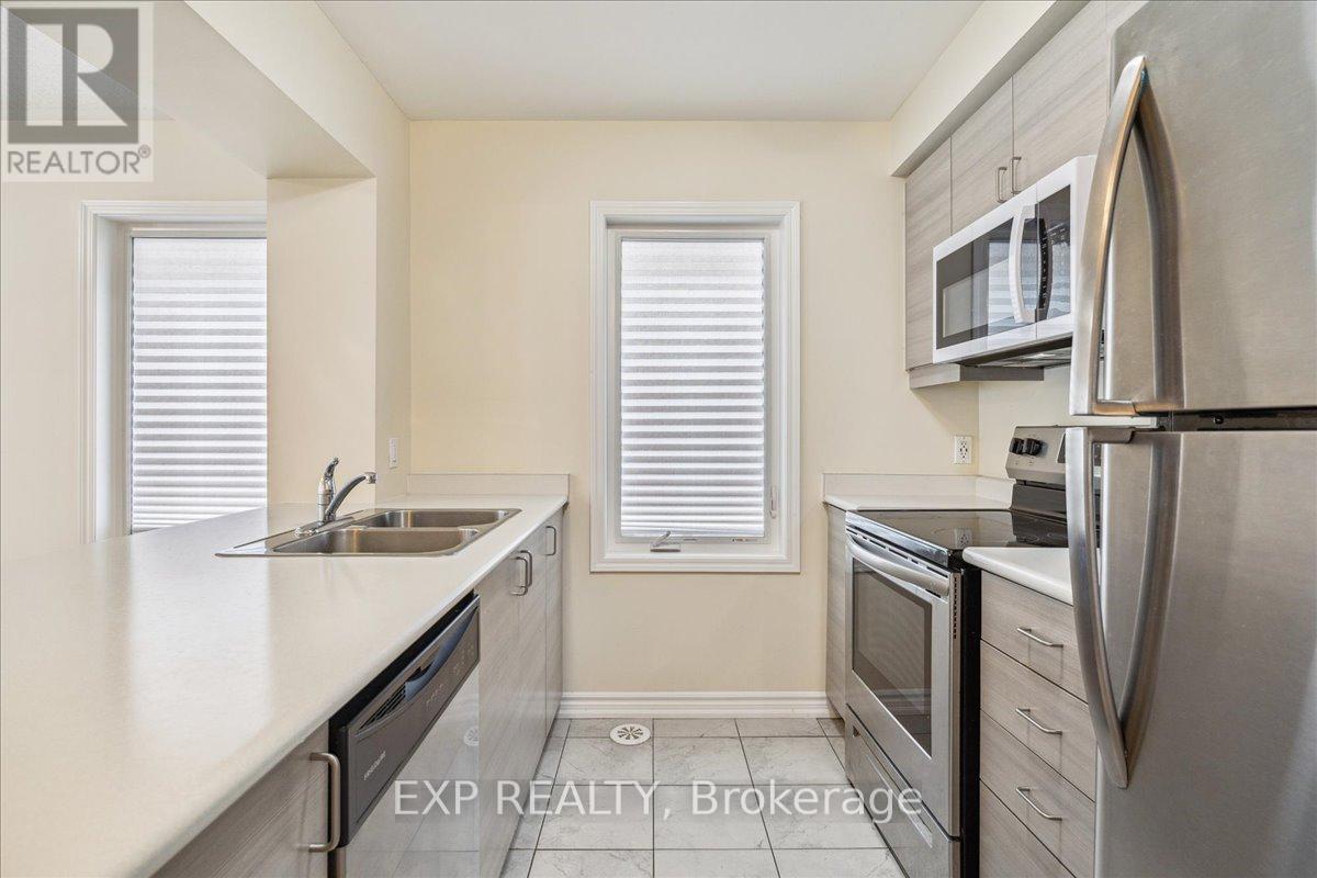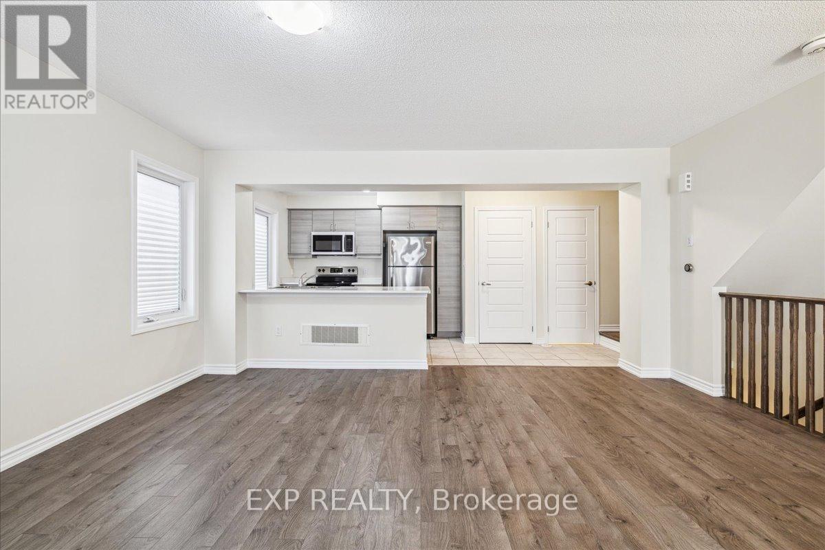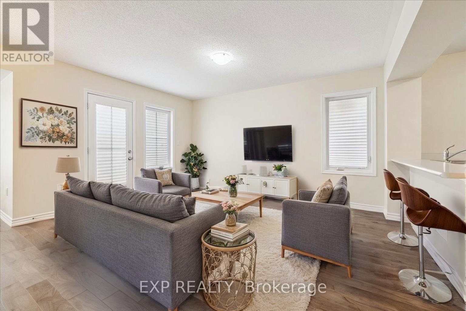 Immaculate Mattamy end-unit freehold townhome! Solid-brick exterior + Coveted 3 Car parking - Long driveway + 1 garage space. 1,333 sq. ft. (per builder's plan) in Milton's sought-after Ford neighbourhood. This bright, beautifully maintained home offers 3 bedrooms, 2 bathrooms, and a versatile main-floor den space - perfect for working from home. Direct garage access. The second level features an open layout with large windows, abundant natural light, and a spacious living/dining area ideal for both daily living and entertaining. The modern kitchen shines with stainless appliances, ample cabinetry, and generous counter space. Upstairs, you'll find 3 well-sized bedrooms, including a primary w/ walk-through access to a stylish semi-ensuite bath. Lovingly cared for - shows well throughout. Close to top schools, parks, trails, Kelso Conservation, highways 401/407, Milton GO, and all major amenities. A turnkey gem for families, professionals, & investors alike. Don't Miss! (id:64974)