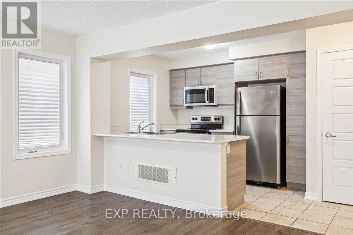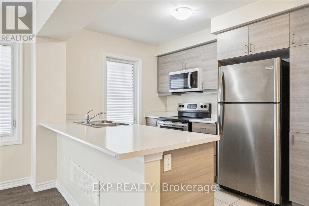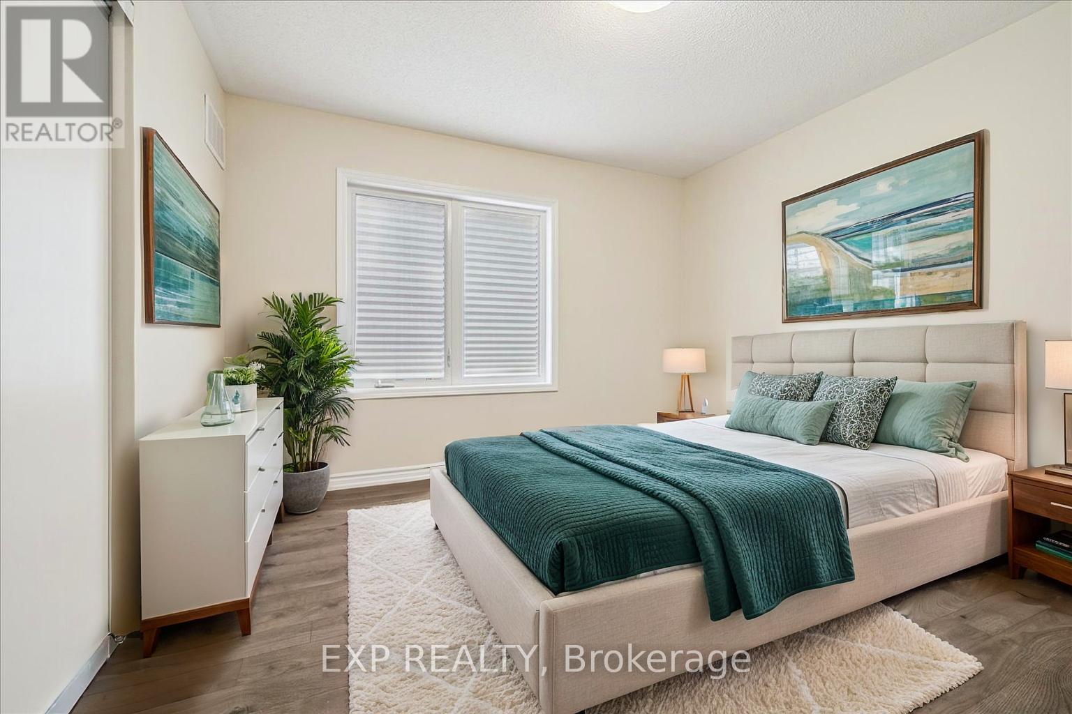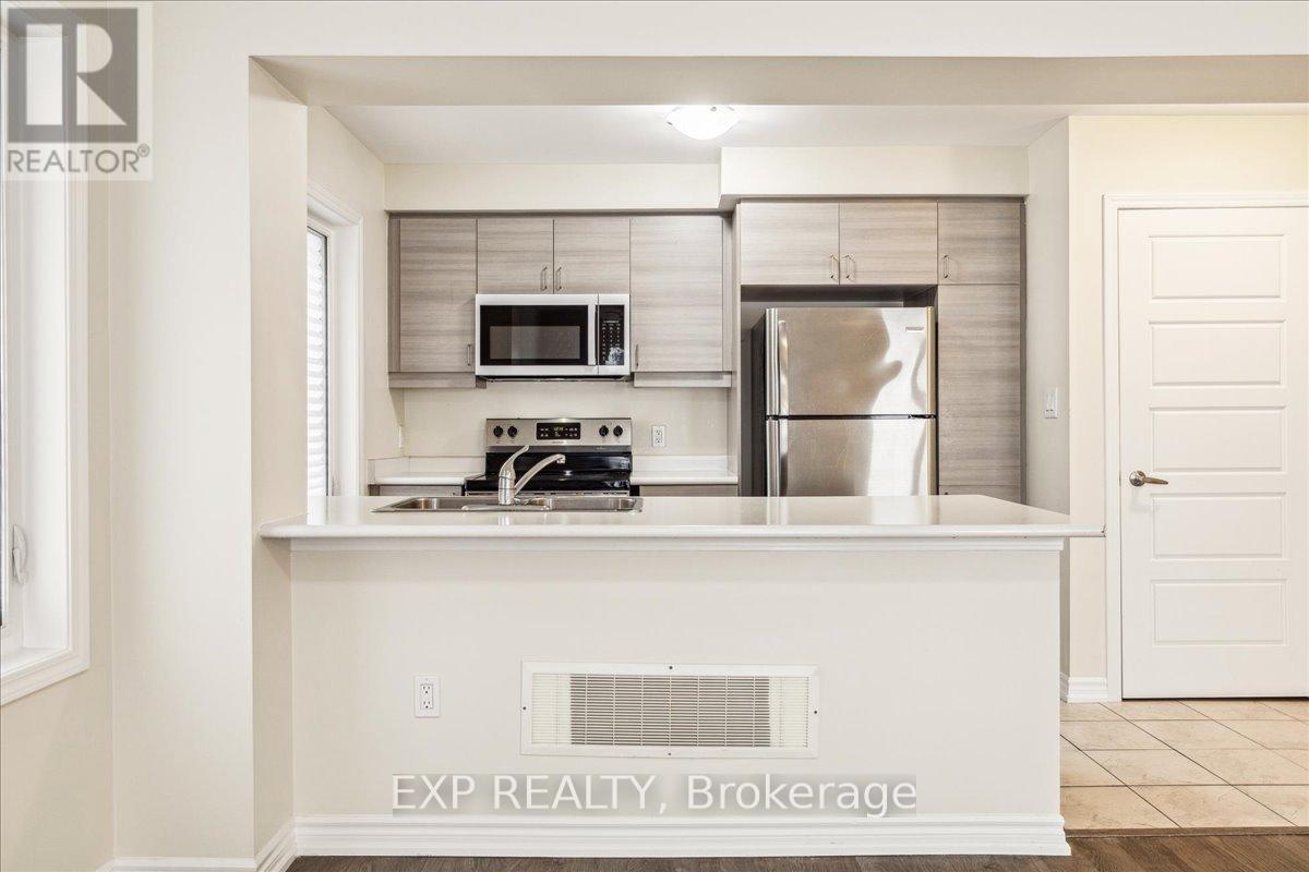 Immaculate Mattamy end-unit freehold townhome! Solid-brick exterior + Coveted 3 Car parking - Long driveway + 1 garage space. 1,333 sq. ft. (per builder's plan) in Milton's sought-after Ford neighbourhood. This bright, beautifully maintained home offers 3 bedrooms, 2 bathrooms, and a versatile main-floor den space - perfect for working from home. Direct garage access. The second level features an open layout with large windows, abundant natural light, and a spacious living/dining area ideal for both daily living and entertaining. The modern kitchen shines with stainless appliances, ample cabinetry, and generous counter space. Upstairs, you'll find 3 well-sized bedrooms, including a primary w/ walk-through access to a stylish semi-ensuite bath. Lovingly cared for - shows well throughout. Close to top schools, parks, trails, Kelso Conservation, highways 401/407, Milton GO, and all major amenities. A turnkey gem for families, professionals, & investors alike. Don't Miss! (id:64974)