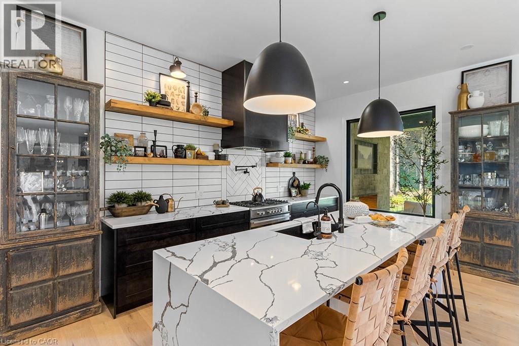 Welcome to 107 Louise Creek Crescent, a stunning 5-bedroom plus den, 5-bathroom bungalow perfectly situated on a quiet, tree-lined street in Elmwood. This custom residence showcases a captivating wood and Shouldice designer stone exterior, blending timeless elegance with modern design. Inside, you'll find wide plank hardwood floors, soaring 10 ft ceilings on the main level, and 8 ft doors that create a sense of space and luxury throughout. The open-concept kitchen, living, and dining area is ideal for both everyday living and entertaining, featuring top-of-the-line appliances and abundant natural light. Step outside to your own private treed oasis, where a covered back porch with a stone wall and double-sided fireplace creates the ultimate atmosphere for year-round enjoyment. The spacious primary suite offers a luxurious ensuite retreat complete with heated floors, while all additional bedrooms are generously sized to accommodate the whole family. An oversized heated 3-car garage with direct stairs to the lower level adds unmatched convenience and functionality. Conveniently located steps from Boyd Lake and scenic walking trails, with school bus route access, this home is the perfect blend of comfort, style, and practicality. (id:64974)
