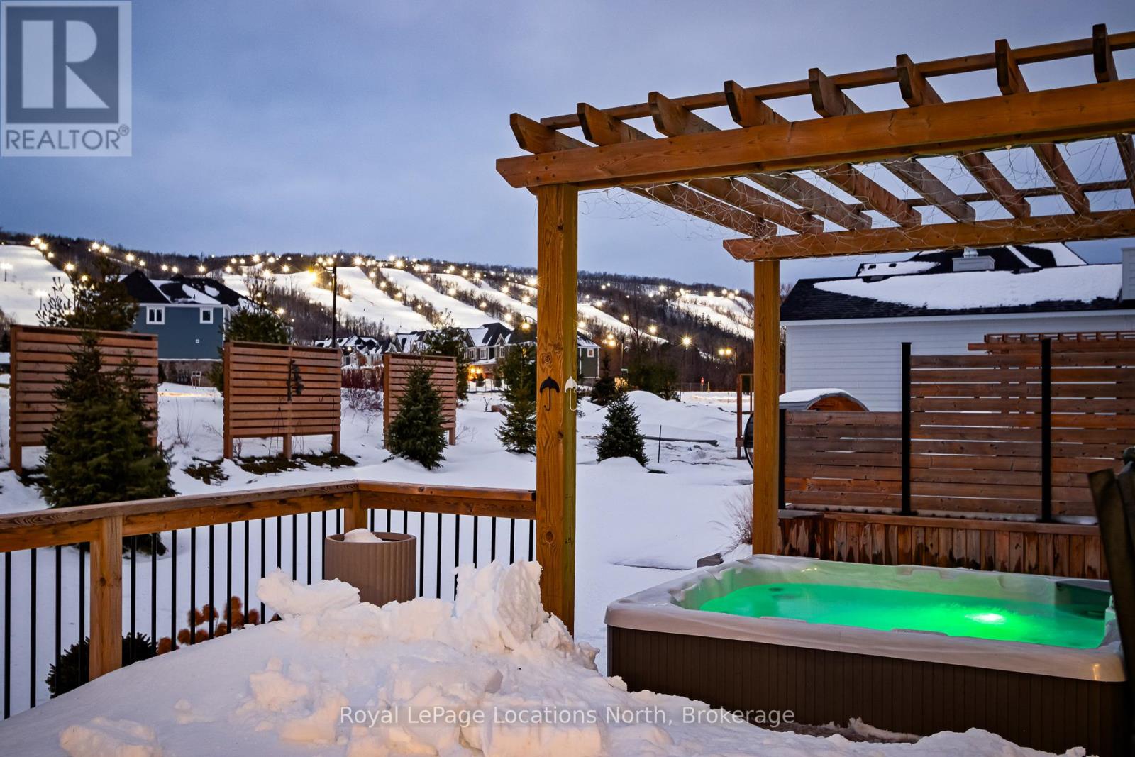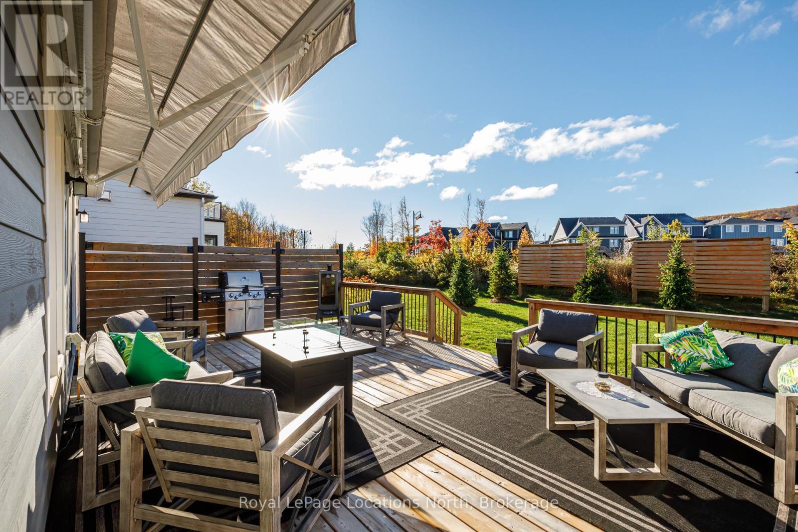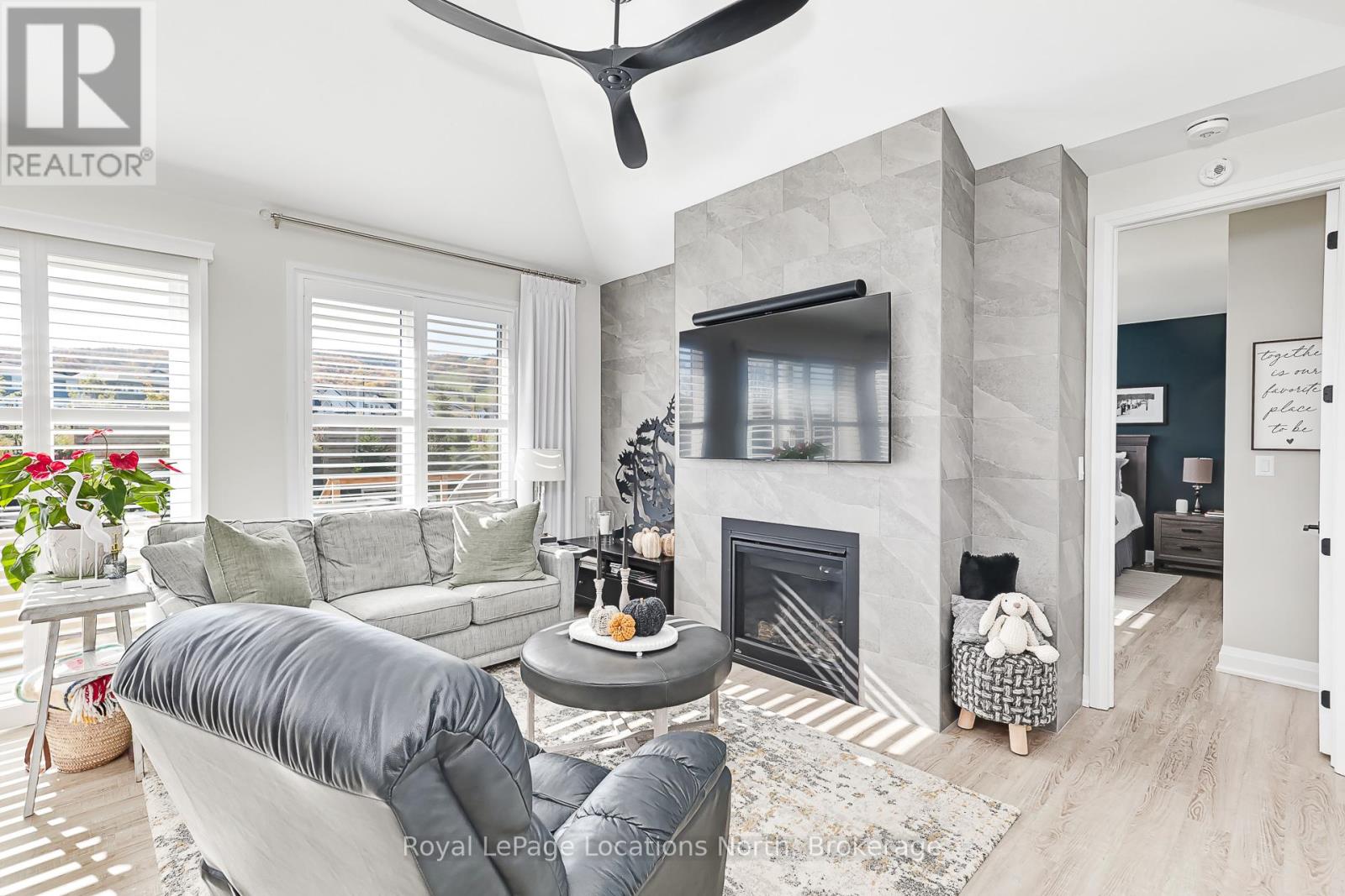 This incredible bungalow was built in 2020 by Crestview homes and combines quality craftsmanship with refined modern style. Over 2900 square feet of finished space, this four-bedroom, three-bathroom home has an open floor plan that's bright, inviting and beautifully designed for everyday comfort or weekend escapes. The main level features vaulted ceilings, large windows that fill the space with natural light, and a cozy gas fireplace that anchors the space. The custom kitchen is a chef's dream with quartz counters, stylish cabinetry, a gas stove and high end appliances. Outside, the spacious deck and hot tub take in the incredible views of the ski hill. The fully finished lower level offers two additional bedrooms, a full bath, and a large rec room with space for hobbies or the current music setup. This home comes with a mandatory Blue Mountain Village Association Membership - giving you access to a private beach, shuttle service to the ski hills, and discounts at village shops and restaurants. Move in ready and impeccably maintained, this home truly has it all! Location, lifestyle and luxury in one exceptional package. ** This is a linked property.** (id:64974)