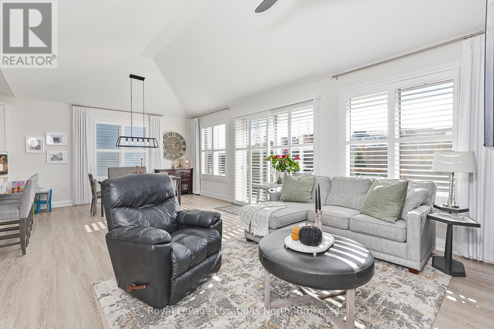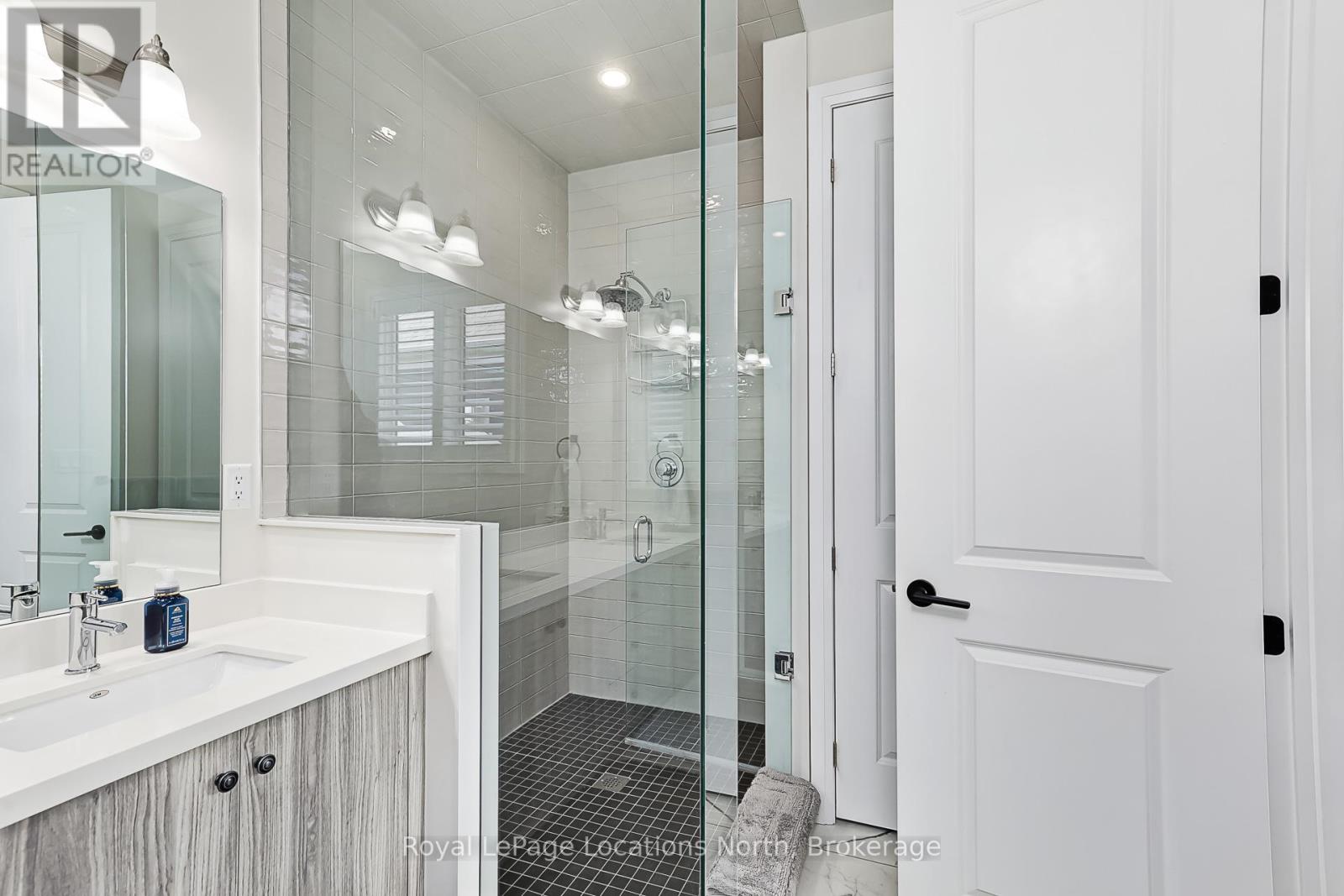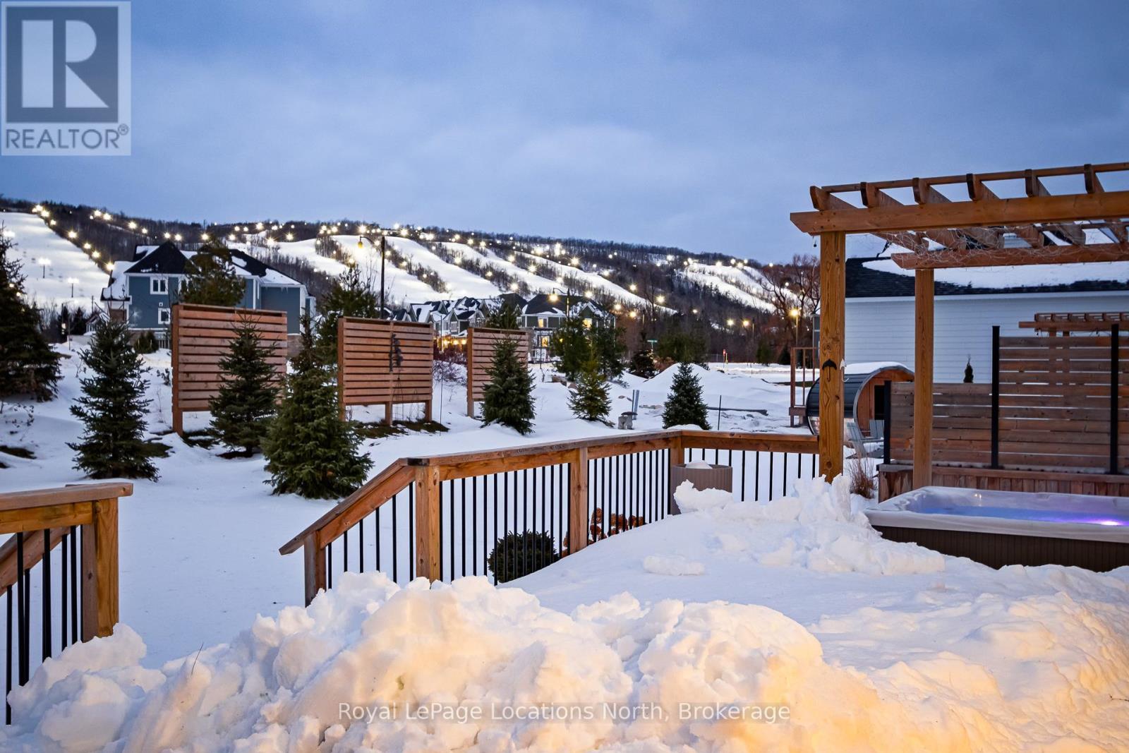 This incredible bungalow was built in 2020 by Crestview homes and combines quality craftsmanship with refined modern style. Over 2900 square feet of finished space, this four-bedroom, three-bathroom home has an open floor plan that's bright, inviting and beautifully designed for everyday comfort or weekend escapes. The main level features vaulted ceilings, large windows that fill the space with natural light, and a cozy gas fireplace that anchors the space. The custom kitchen is a chef's dream with quartz counters, stylish cabinetry, a gas stove and high end appliances. Outside, the spacious deck and hot tub take in the incredible views of the ski hill. The fully finished lower level offers two additional bedrooms, a full bath, and a large rec room with space for hobbies or the current music setup. This home comes with a mandatory Blue Mountain Village Association Membership - giving you access to a private beach, shuttle service to the ski hills, and discounts at village shops and restaurants. Move in ready and impeccably maintained, this home truly has it all! Location, lifestyle and luxury in one exceptional package. ** This is a linked property.** (id:64974)