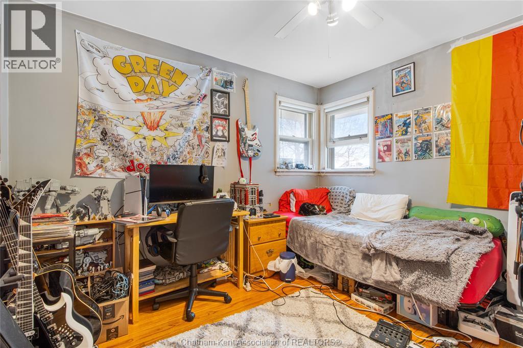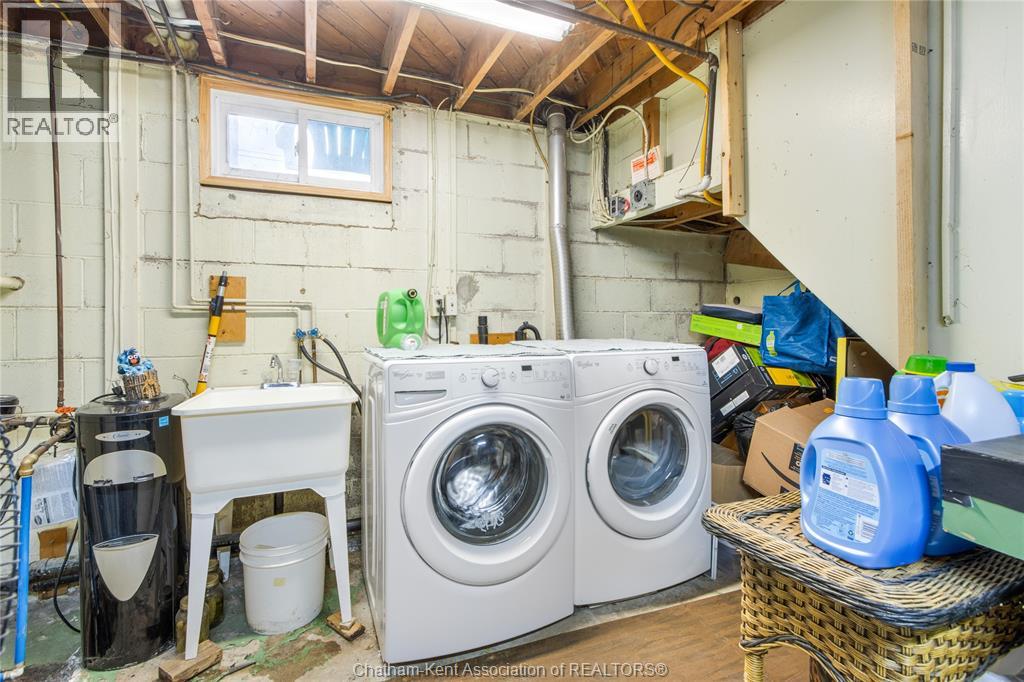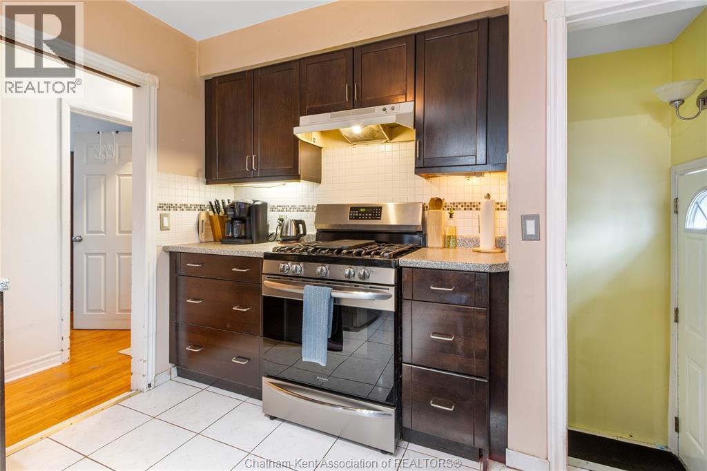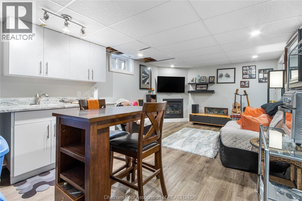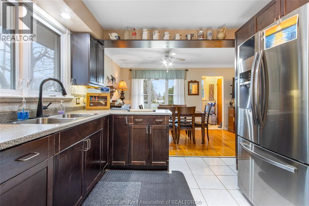 Situated on a corner lot in a quiet north-side Chatham neighbourhood, this well-maintained bungalow offers 3+1 bedrooms and 2 full bathrooms, with numerous updates throughout. The kitchen features ample cabinetry, stainless steel appliances, and an open layout connecting into the dining area and living room, highlighted by hardwood flooring. The lower level provides additional living space, including a fourth bedroom and a spacious rec room with a wet bar—perfect for entertaining or extended family use, all finished with a modern, updated feel. An attached garage offers convenient sheltered parking or workspace, while the fully fenced yard provides a great setting for family enjoyment and outdoor activities. (id:64974)