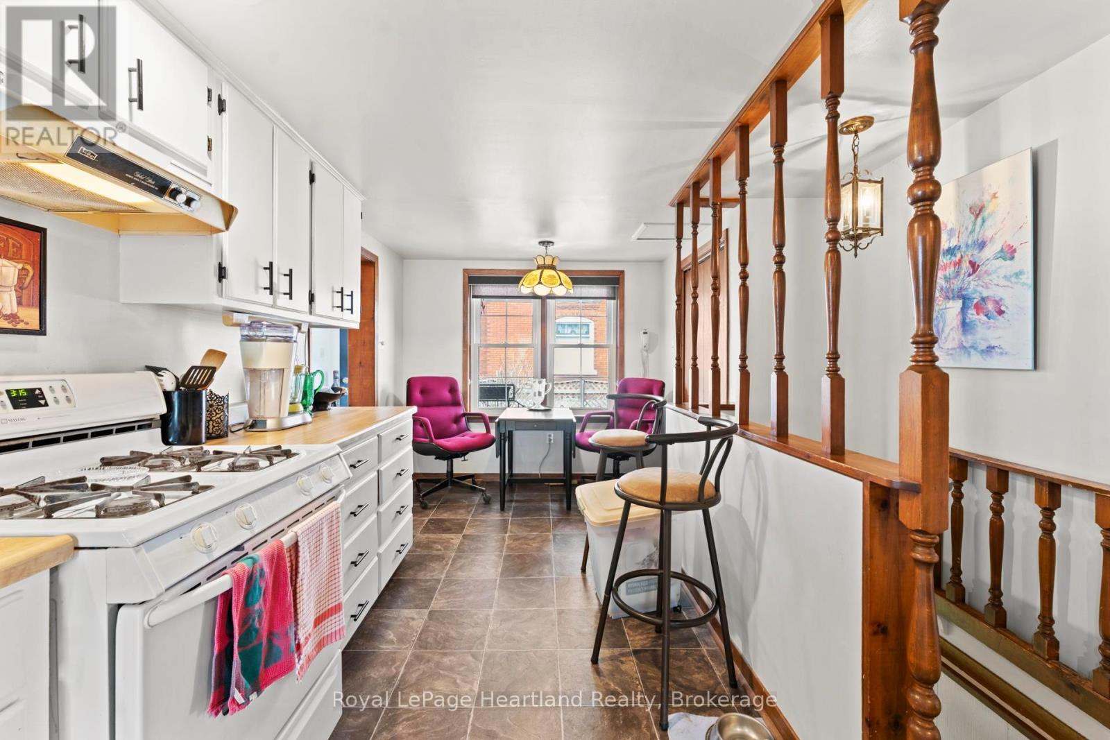 Just steps from Goderich's historic downtown square, this charming bungalow offers character, comfort, and an easy-to-enjoy lifestyle in one of Ontario's most beloved communities. With 2 bedrooms and 1 bathroom, this inviting home is well suited for first-time buyers, downsizers, or anyone looking for a property that feels welcoming from the moment you arrive.The seasonal front porch creates a practical and charming entry point, ideal for leaving coats, shoes, and everyday essentials before stepping inside. From there, the home unfolds into warm and inviting living spaces filled with cottage-inspired appeal. The front foyer leads into a spacious double living room and formal dining area, creating flexible space for relaxing, entertaining, or enjoying family gatherings.Toward the back of the home, the generous kitchen offers plenty of room for meal prep and storage, while overlooking the large family room. This cozy yet spacious area is anchored by a gas fireplace, making it a natural gathering place throughout the seasons. Whether you are hosting guests or enjoying a quiet night at home, this part of the house delivers both comfort and function.Storage is found throughout the home, adding to its practicality and everyday appeal. Outside, the fenced yard provides a great space for children, pets, gardening, or simply unwinding in a private outdoor setting.The location is a true highlight, placing you within walking distance of downtown shops, restaurants, and amenities, as well as Victoria Park and splash pad, the Menesetung Bridge, and the G2G Trail. This is a wonderful opportunity to own a home that blends charm, convenience, and a strong sense of community, all in the heart of beautiful Goderich. A lovely property offering comfortable living in a location that is hard to beat. (id:64974)