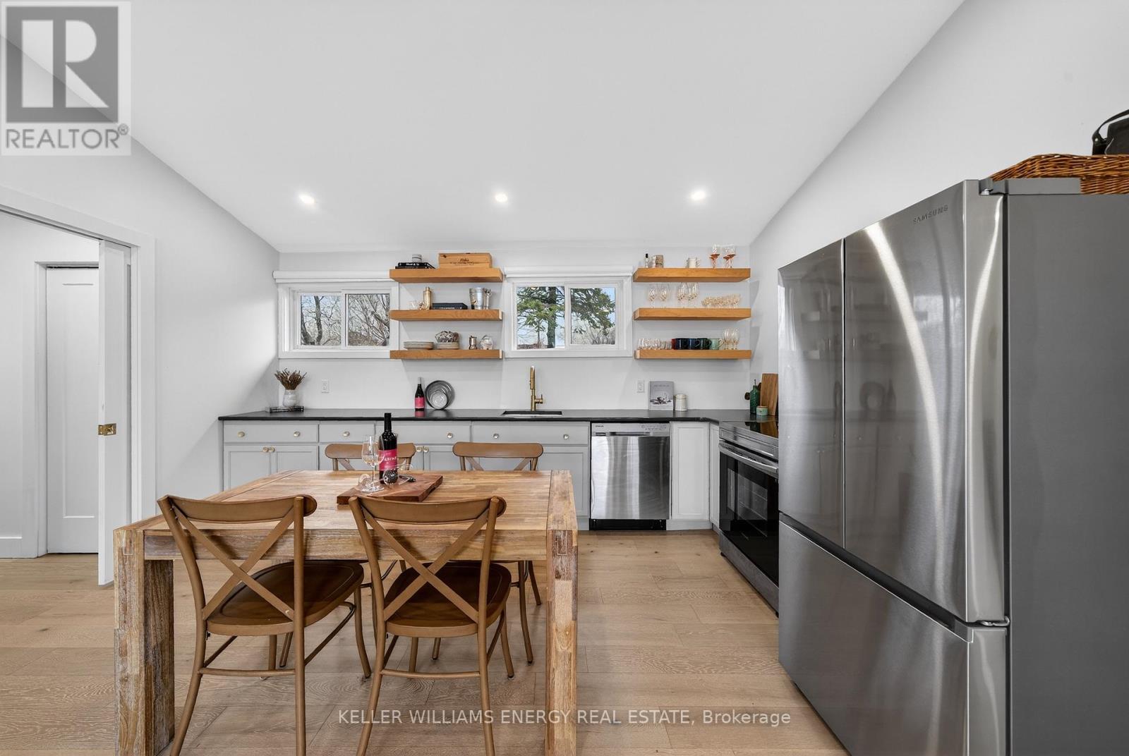 Escape to your own private lakeside retreat on the serene shores of Consecon Lake. This cozy, fully renovated two-bedroom, one-bathroom cottage offers the perfect blend of charm and modern comfort, and comes fully licensed for short-term accommodations - making it an ideal personal getaway or turnkey investment opportunity. Inside, you'll find a thoughtfully updated interior with bright, inviting living spaces designed for relaxation after a day on the water. Step outside onto the spacious deck overlooking the crystal-clear waterfront-perfect for morning coffee or evening sunsets. At the water's edge, enjoy unforgettable nights around the fire pit, unwind in the lakeside sauna, or take a refreshing swim just steps from your door. The property also features a charming bunkie for extra guests and a handy shed for storage, adding both functionality and flexibility. Whether you're looking to host, invest, or simply escape, this waterfront gem delivers the ultimate County lifestyle. Come see it for yourself, fall in love, and you too can Call The County Home. (id:64974)