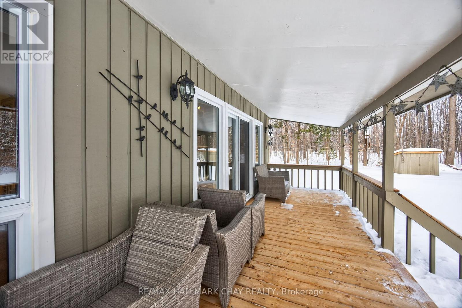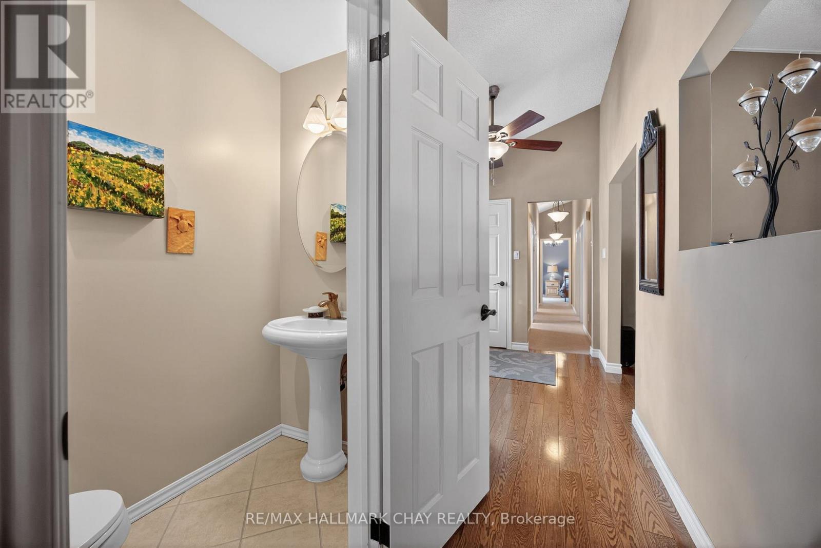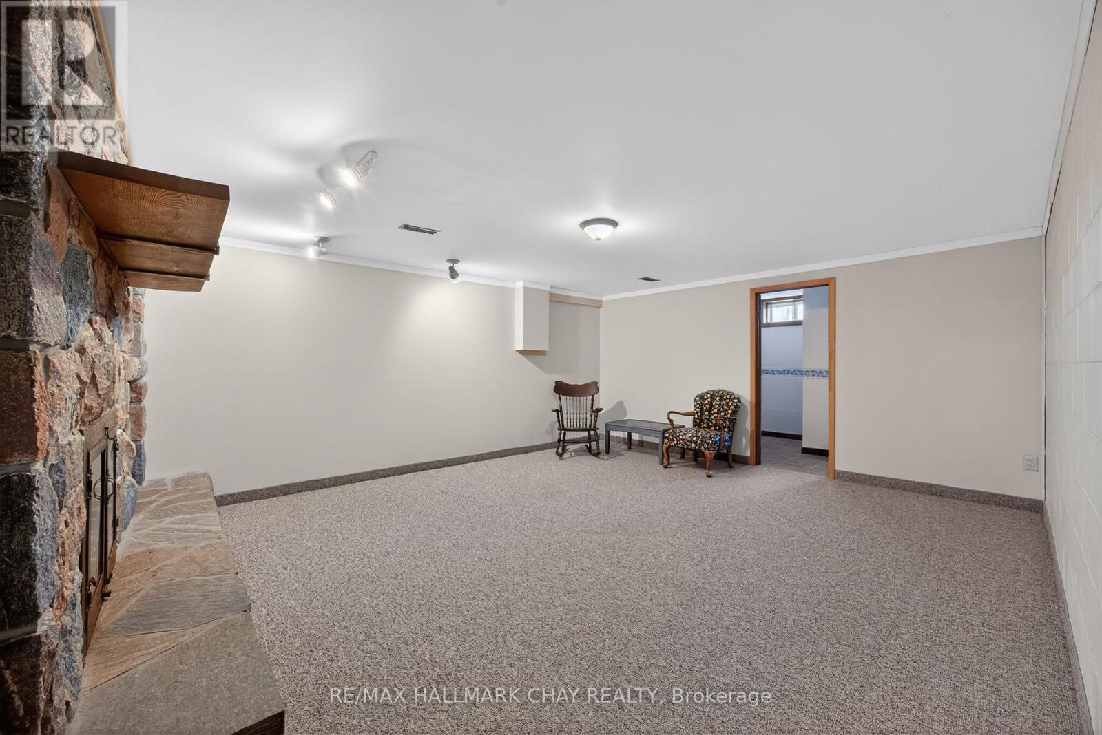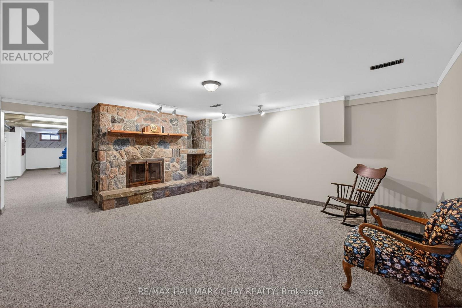 Welcome to 1075 Line 6 South. This beautiful Viceroy 3+1 bedroom bungalow is located in a sought-after Oro-Medonte community, set on a very private, treed lot at the end of the street. Soaring cathedral ceilings and oak hardwood flooring highlight the great room, anchored by a striking floor-to-ceiling fieldstone fireplace with a Napoleon gas insert, while the bright eat-in kitchen offers a welcoming space for everyday living. Step out to the 27' x 7.5' covered porch, ideal for morning coffee and outdoor entertaining. The primary bedroom features a private walkout to its own deck, and a conveniently located main-floor laundry room adds everyday functionality.The finished basement offers excellent in-law potential with a separate entrance, cozy family room with a fieldstone wood-burning fireplace, games room, bedroom, and an existing bathroom. Additional highlights include a two-car garage, parking for up to eight vehicles, and a private treed lot just steps from public water access on Lake Simcoe, where you can launch a boat and enjoy swimming. Ideally located approximately 20 minutes to both Barrie and Orillia for shopping, dining, and entertainment, close to schools and parks, and perfect for commuters seeking easy access to major routes while enjoying a community with a small-town feel. Enjoy endless boating along the Trent-Severn Waterway, nearby golf courses, skiing, and the Oro Rail Trail for hiking, biking, and cross-country skiing. Book your private showing today. (id:64974)