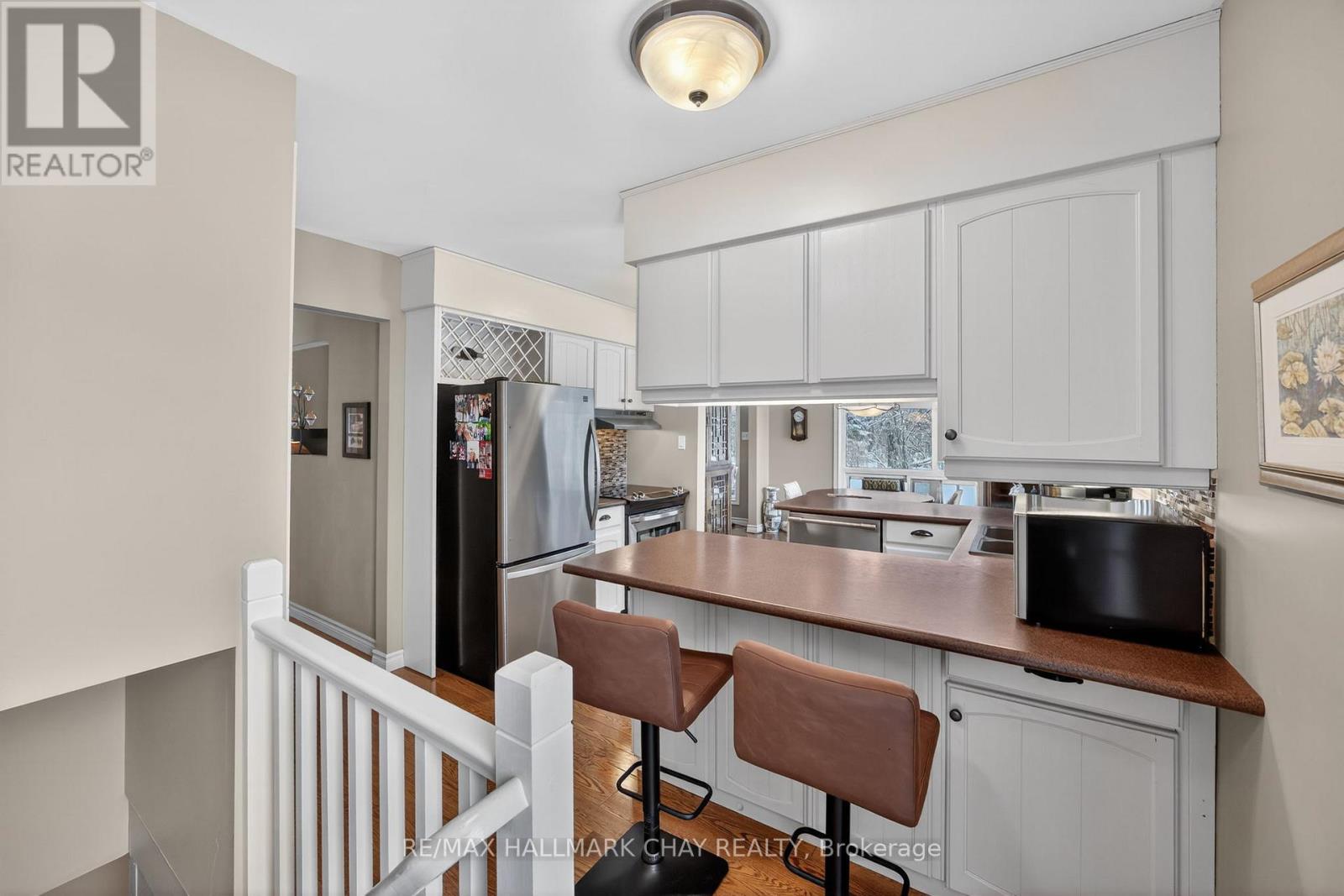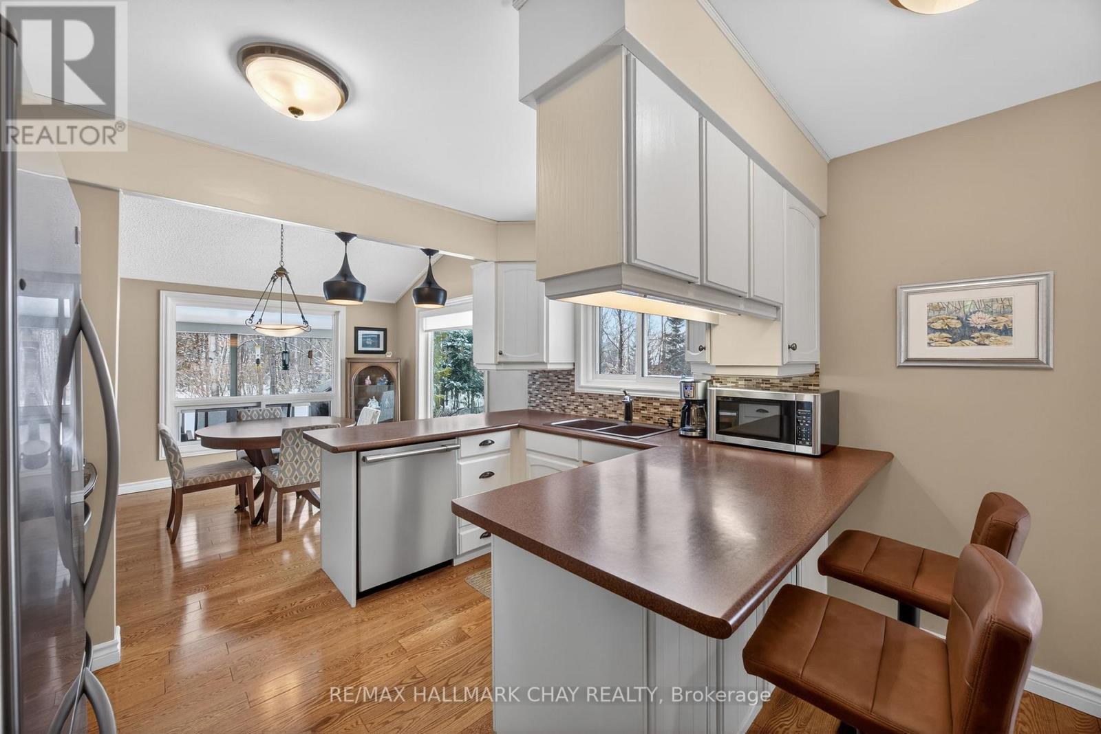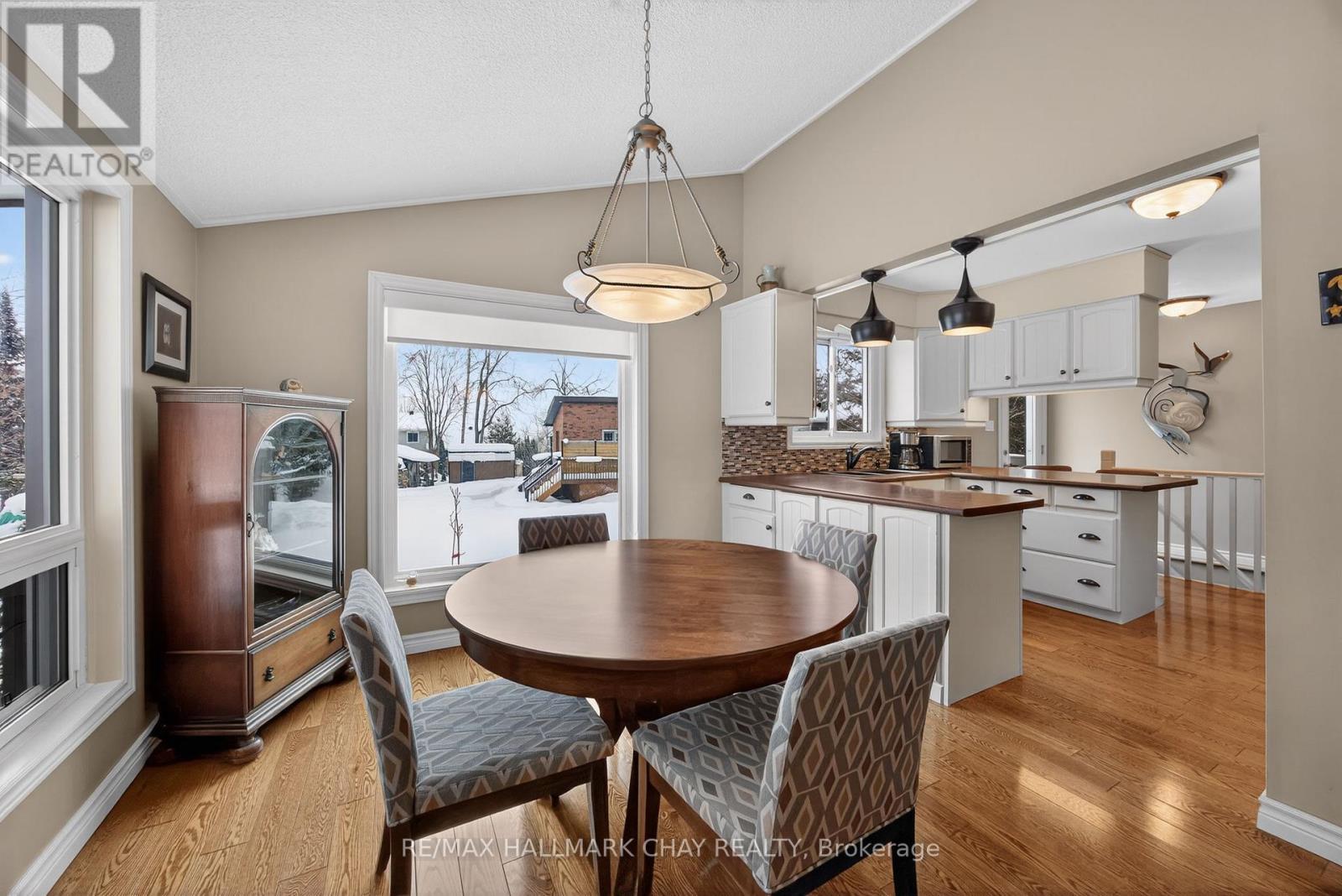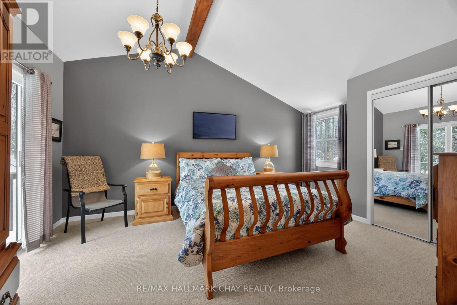Welcome to 1075 Line 6 South. This beautiful Viceroy 3+1 bedroom bungalow is located in a sought-after Oro-Medonte community, set on a very private, treed lot at the end of the street. Soaring cathedral ceilings and oak hardwood flooring highlight the great room, anchored by a striking floor-to-ceiling fieldstone fireplace with a Napoleon gas insert, while the bright eat-in kitchen offers a welcoming space for everyday living. Step out to the 27' x 7.5' covered porch, ideal for morning coffee and outdoor entertaining. The primary bedroom features a private walkout to its own deck, and a conveniently located main-floor laundry room adds everyday functionality.The finished basement offers excellent in-law potential with a separate entrance, cozy family room with a fieldstone wood-burning fireplace, games room, bedroom, and an existing bathroom. Additional highlights include a two-car garage, parking for up to eight vehicles, and a private treed lot just steps from public water access on Lake Simcoe, where you can launch a boat and enjoy swimming. Ideally located approximately 20 minutes to both Barrie and Orillia for shopping, dining, and entertainment, close to schools and parks, and perfect for commuters seeking easy access to major routes while enjoying a community with a small-town feel. Enjoy endless boating along the Trent-Severn Waterway, nearby golf courses, skiing, and the Oro Rail Trail for hiking, biking, and cross-country skiing. Book your private showing today. (id:64974)