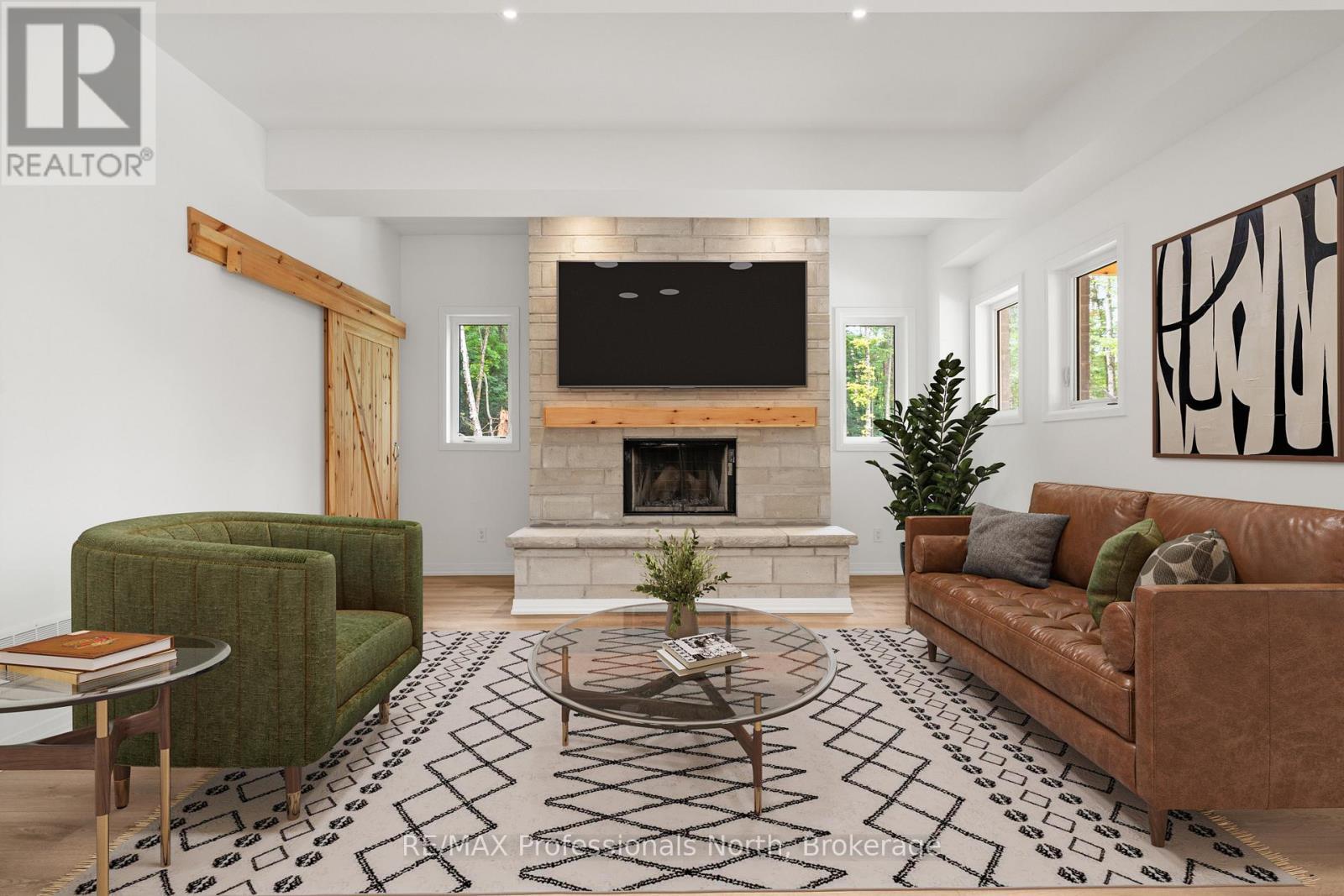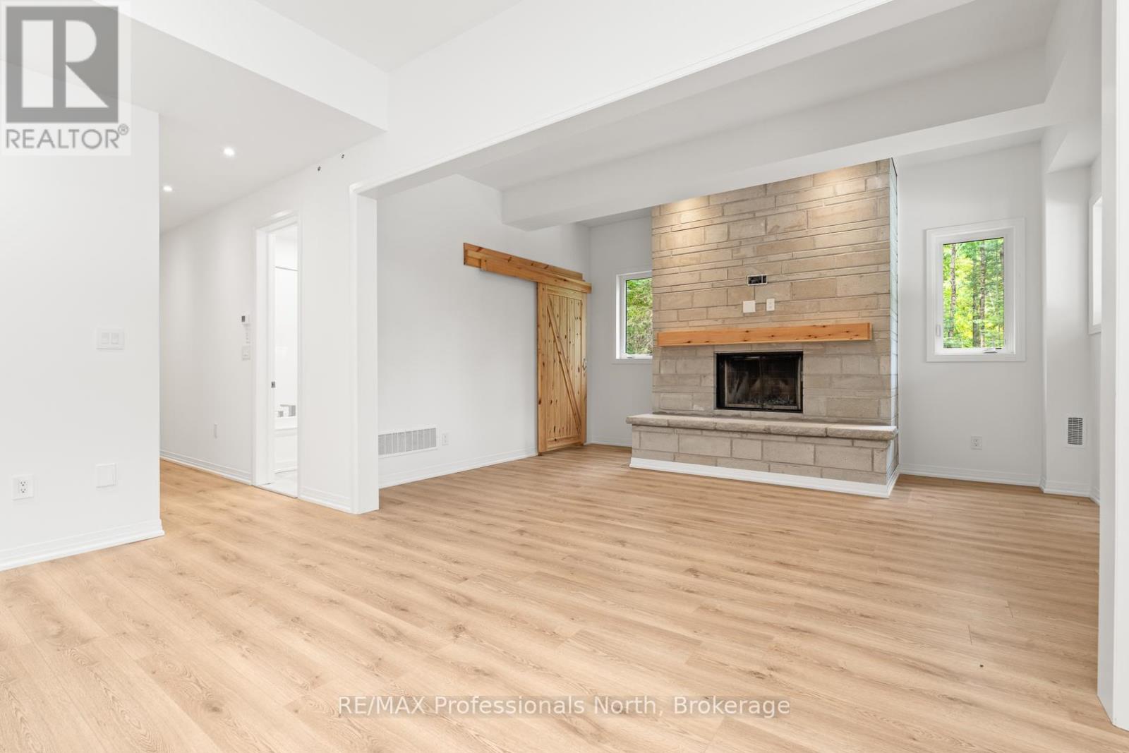 1076 Angel Road | Eagle Lake | 3 Bed | 2 Bath | 1.84 Acres Nestled in the heart of the Eagle Lake community, just minutes from Sir Sam's Ski Hill, this 1,645 sq ft bungalow offers the perfect balance of modern design & natural tranquility. Set on 1.84 wooded acres, this home is a private retreat surrounded by towering trees, fresh air, & four-season adventure right at your doorstep. From the moment you arrive, the clean lines & welcoming charm of the covered front porch invite you inside. With a pine ceiling, pot lights, & timber posts, this space sets the tone for warm evenings with friends or quiet mornings with coffee in hand. Step inside to soaring 10-foot ceilings & an open-concept layout that feels bright and spacious. The living room is anchored by a floor-to-ceiling stone fireplace, creating a cozy gathering space for snowy winter nights. The kitchen is a showpiece, featuring a waterfall island, custom lighting, & walkout access to the outdoors. Thoughtful details are found throughout sound insulation for quiet living, USB plugs, hallway nightlights for convenience, & central vac for easy living. This home includes 3 bedrooms & 2 full baths, each with modern finishes. The primary suite is a relaxing retreat, complete with a stylish ensuite & walk-in shower. Comfort is at the forefront with forced-air propane heating, central air, drilled well, & septic system. Outside, you'll love the detached 2-car garage for storing vehicles & toys, plus a backyard fire pit area, the perfect spot for making memories under the stars. Trails wind through your very own forested property, giving you privacy & connection to nature while still being close to amenities. Whether you're looking for a full-time residence or a weekend getaway, this property checks every box: space, style, & setting. 1076 Angel Road, Eagle Lake, modern country living in the Haliburton Highlands. *Some images have been virtually staged/altered/rendered* Taxes Not Yet Assessed* (id:64974)