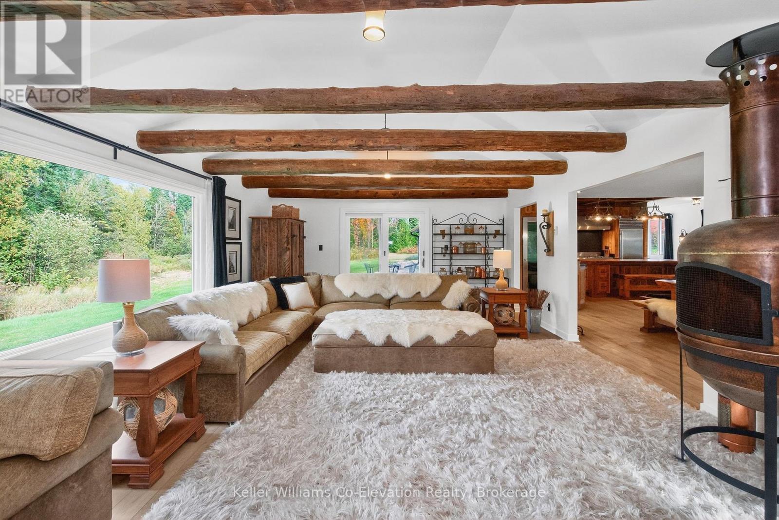 "The Winding Rivers Estate" has it all, privacy, location and acreage. This one of a kind state of the art Contemporary Home is a lifestyle retreat sitting on nearly 100 acres, this extraordinary property offers the perfect blend of peaceful living, recreational opportunities, and income potential. The land features open, treed and cleared productive farmland, and is surrounded by managed forest. A gated private drive crosses a bridge over Matheson Creek, winds past a spring-fed pond, and leads to over 3000 sq ft of luxury living space bordering Willow Creek. Sunlight pours into every inch of the home through the expansive windows and doors designed to frame the fabulous outdoor views. The amazing chef's kitchen comes complete with Sub Zero/Wolf and Viking stainless steel high end appliances a huge island and rustic high end finishes. The radiant in-floor heating, rustic wood beams, multiple fireplaces and custom touches throughout blend style with timeless looks. The 36x48 ft. two level hip-roof barn with space for 7 large stalls, has a free-span loft, concrete floor, hydro and water. The paddocks, run-in shed, and riding ring invites possibilities from equestrian pursuits to creative projects. Explore the large network of private trails weaving through the creeks and streams throughout the entire property; ideal for ATV or horseback riding, hiking or cross country skiing. A 24x60 ft greenhouse makes it easy for the avid gardener to spend hours cultivating their own indoor gardens. The gardens, wood and pump houses, plus wood and propane boilers, offer self-sufficiency in this agricultural zoned estate with a rare blend of natural beauty, long-term value, and exceptional privacy. Whether you're seeking a family retreat, hobby farm or simply space to breathe this is a property that delivers. Just 10 mins to Barrie, 15 to Horseshoe Valley and Vetta spa, golfing, skiing, and major highways, just imagine the endless possibilities that await in this remarkable estate. (id:64974)