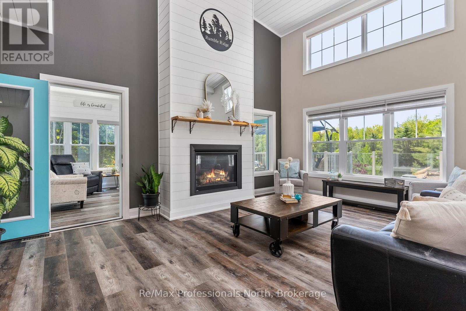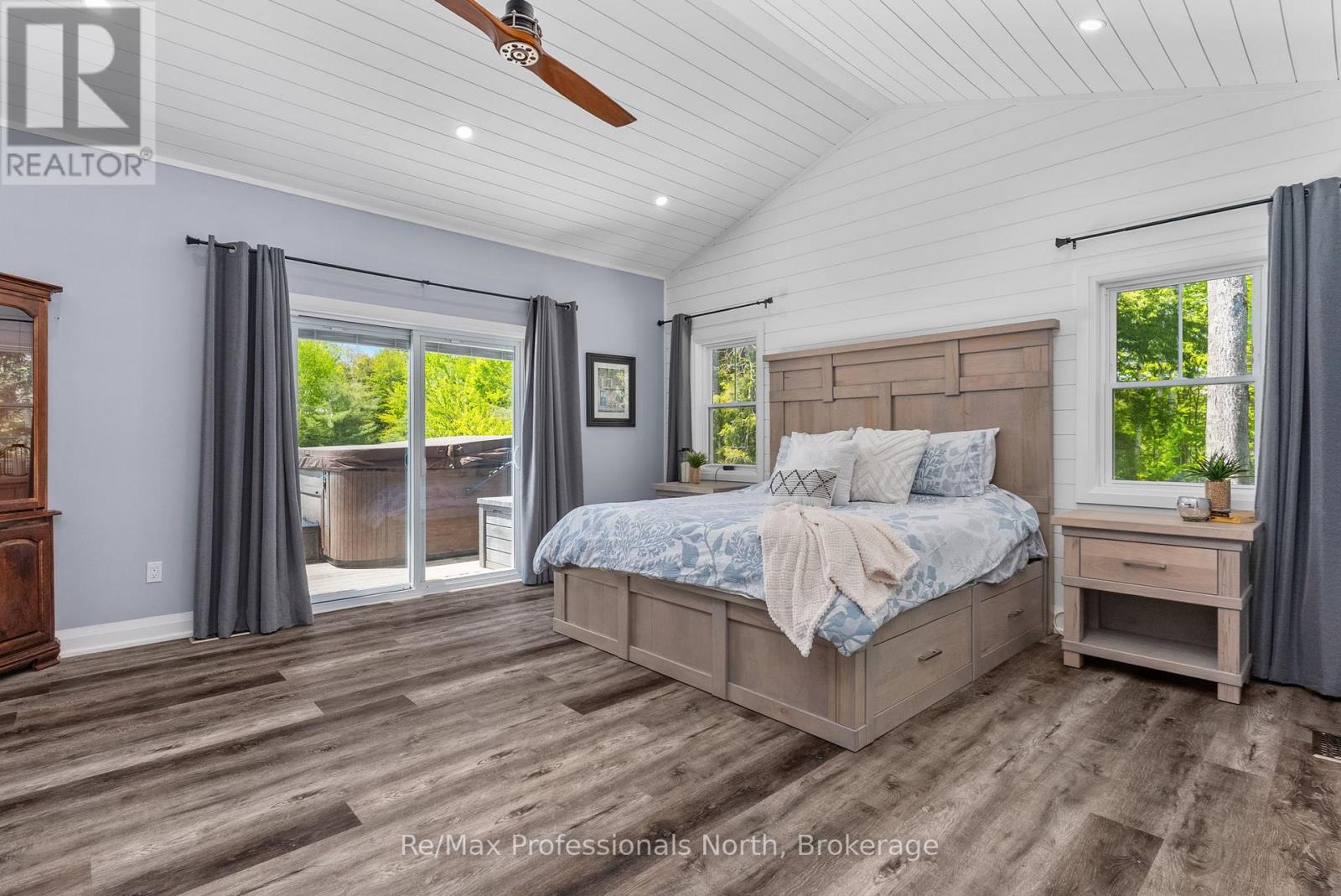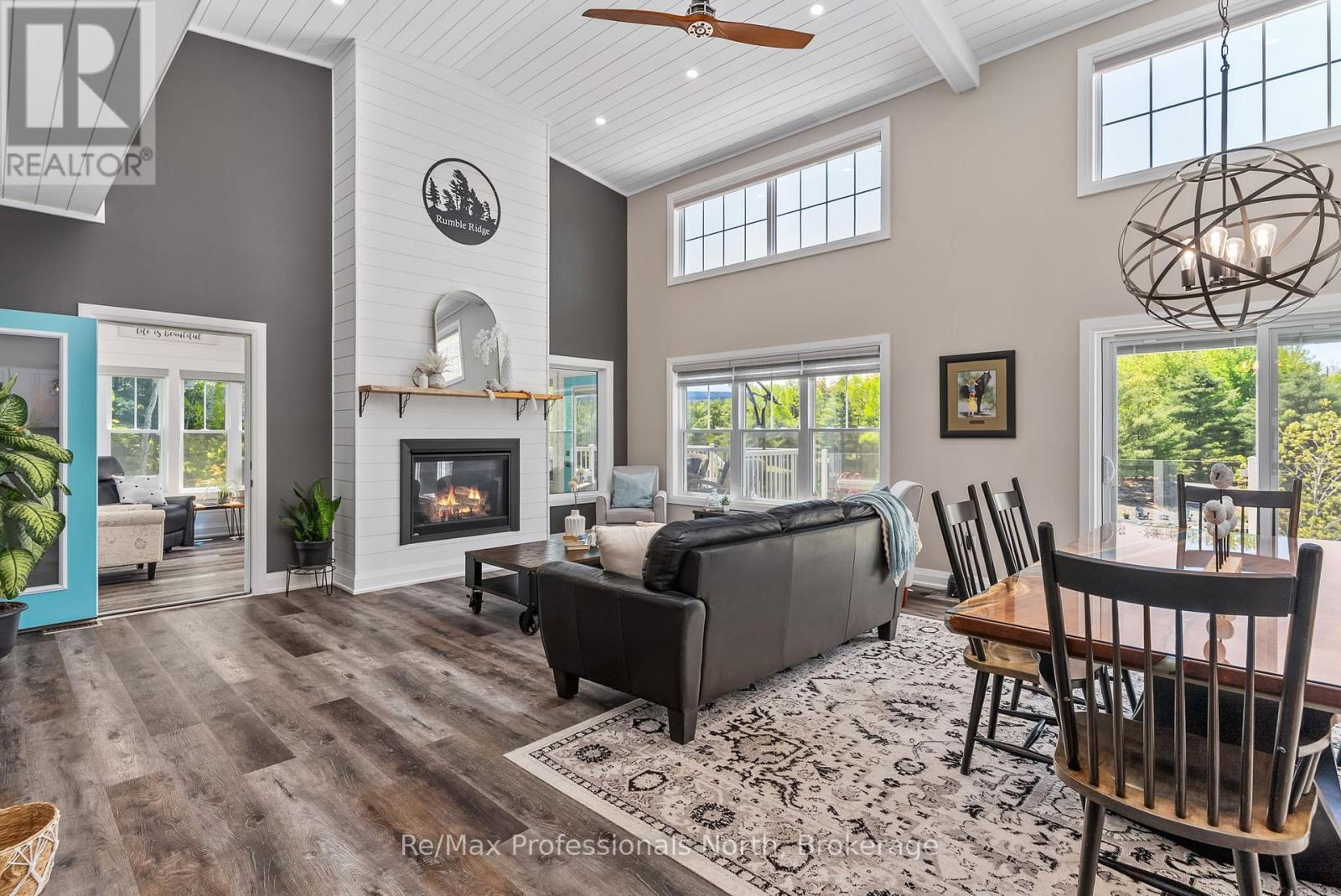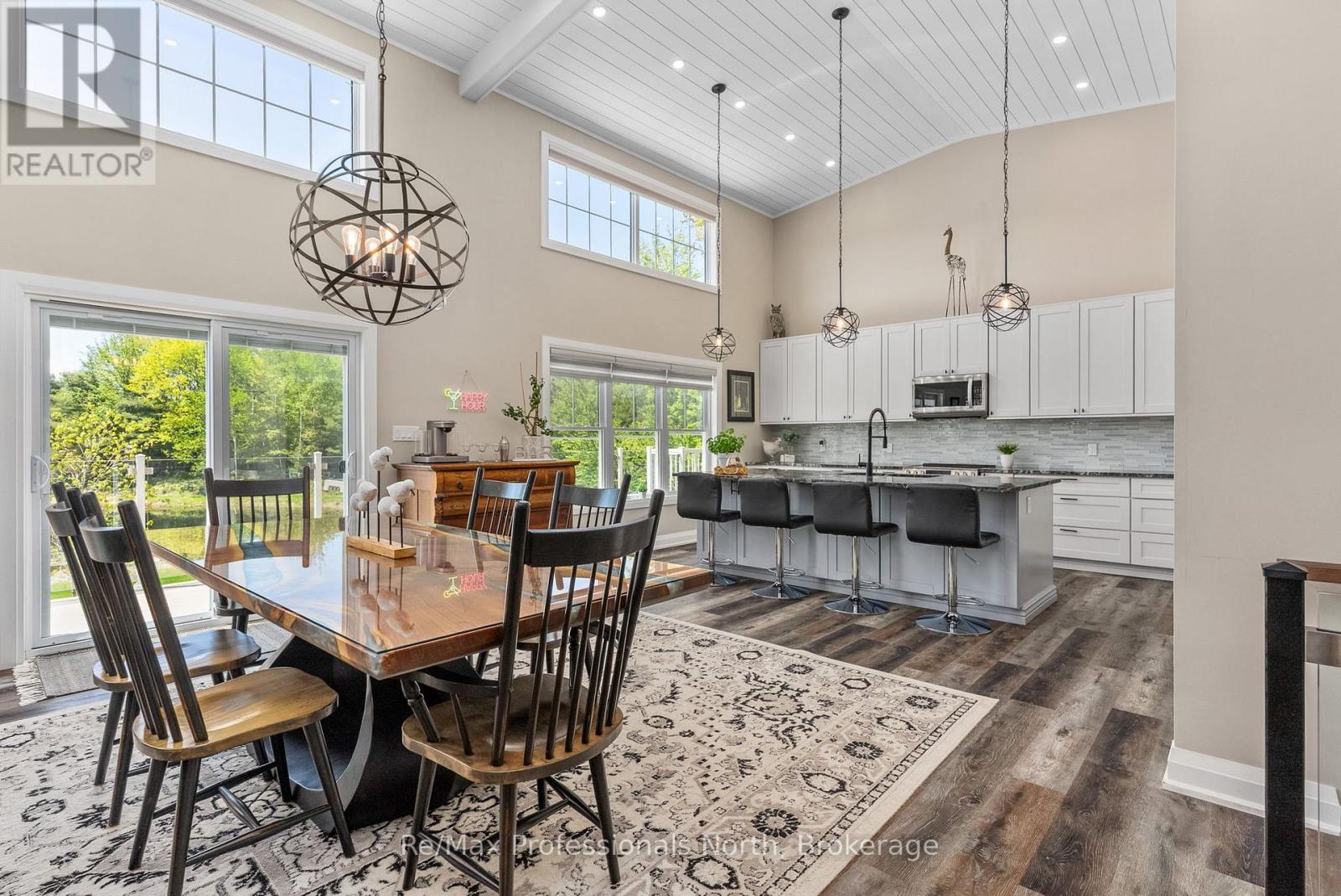 Welcome to 1076 Xavier Street situated in one of Muskoka's most desirable executive enclaves, an exceptional custom-built estate set on 7.17 acres just south of Gravenhurst's downtown. Set back from the road and hidden from view, this 2022-built home offers rare seclusion with a long granite-lined driveway, scenic pond with sandy beach and island, stunning outdoor living, and a 40' x 60' heated shop creating a Muskoka retreat that feels like your own private resort. A dramatic granite staircase leads to a covered front porch and into 3,602 square feet of beautifully finished space across two levels. Vaulted shiplap ceilings, expansive windows, and a striking black propane fireplace framed by floor-to-ceiling white shiplap define the great room. The entertainers kitchen features chiseled-edge granite throughout, including a statement island ideal for hosting. From the dining area, step out to a rear deck that spans the entire back of the home and overlooks your firepit sitting area, a tranquil pond, beach, and landscaped island framed by mature forest. A footbridge invites exploration, where the second firepit and Muskoka chairs offer the perfect vantage point for morning coffees or evening stargazing. The insulated Muskoka room offers passive climate flow from the home, a supplemental electric fireplace, and access to both decks. The private primary suite features direct access to the deck and hot tub, a walk-in closet, and a spa-inspired 5-piece ensuite. The fully finished walkout lower level offers a large rec room, two additional bedrooms, a full bath, and direct access to the backyard. At the rear of the property, a 40' x 60' heated shop includes 12' doors, hydro, and 3 piece bath ideal for the hobbyist, recreational gear, or as a private workspace and storage haven. A Generac backup generator provides year-round peace of mind. This is more than a home; it's an experience offering refined living, captivating scenery, and complete privacy in an exclusive setting. (id:64974)