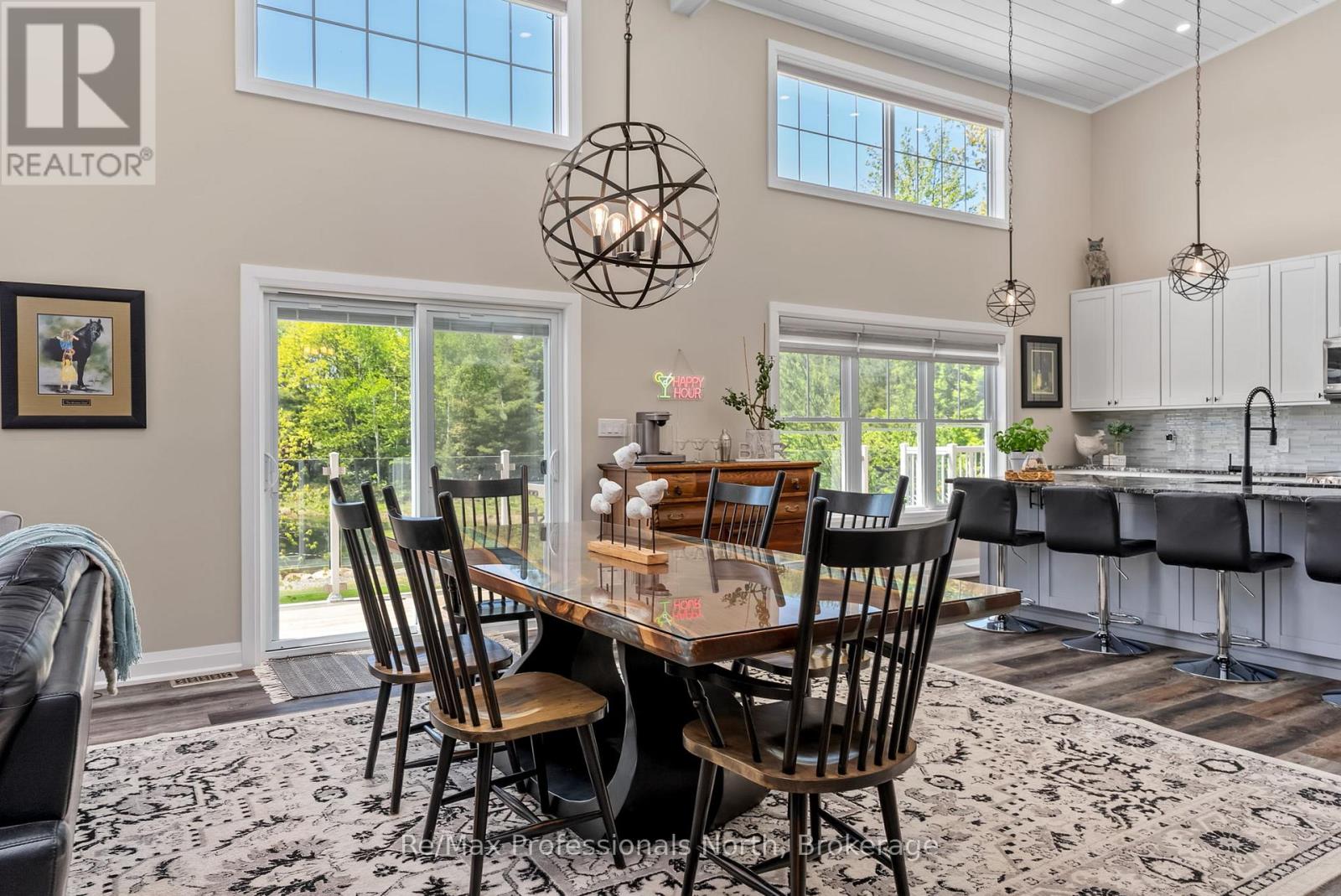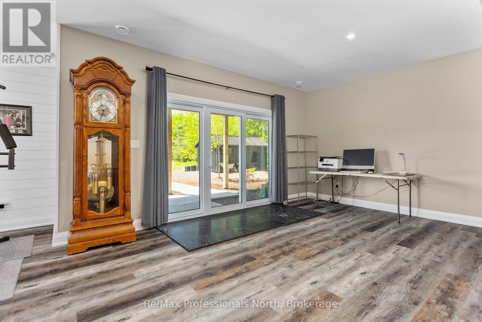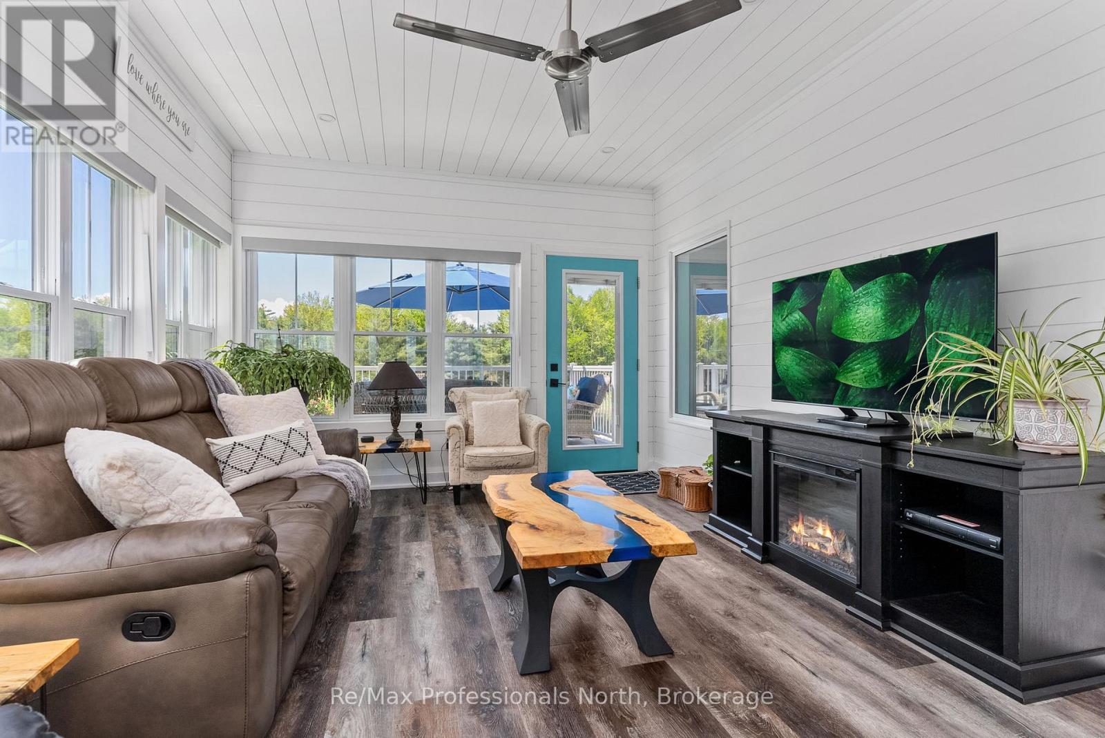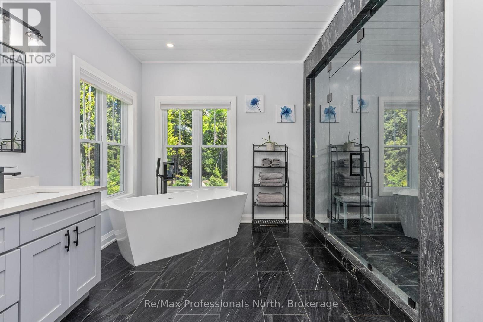 Welcome to 1076 Xavier Street situated in one of Muskoka's most desirable executive enclaves, an exceptional custom-built estate set on 7.17 acres just south of Gravenhurst's downtown. Set back from the road and hidden from view, this 2022-built home offers rare seclusion with a long granite-lined driveway, scenic pond with sandy beach and island, stunning outdoor living, and a 40' x 60' heated shop creating a Muskoka retreat that feels like your own private resort. A dramatic granite staircase leads to a covered front porch and into 3,602 square feet of beautifully finished space across two levels. Vaulted shiplap ceilings, expansive windows, and a striking black propane fireplace framed by floor-to-ceiling white shiplap define the great room. The entertainers kitchen features chiseled-edge granite throughout, including a statement island ideal for hosting. From the dining area, step out to a rear deck that spans the entire back of the home and overlooks your firepit sitting area, a tranquil pond, beach, and landscaped island framed by mature forest. A footbridge invites exploration, where the second firepit and Muskoka chairs offer the perfect vantage point for morning coffees or evening stargazing. The insulated Muskoka room offers passive climate flow from the home, a supplemental electric fireplace, and access to both decks. The private primary suite features direct access to the deck and hot tub, a walk-in closet, and a spa-inspired 5-piece ensuite. The fully finished walkout lower level offers a large rec room, two additional bedrooms, a full bath, and direct access to the backyard. At the rear of the property, a 40' x 60' heated shop includes 12' doors, hydro, and 3 piece bath ideal for the hobbyist, recreational gear, or as a private workspace and storage haven. A Generac backup generator provides year-round peace of mind. This is more than a home; it's an experience offering refined living, captivating scenery, and complete privacy in an exclusive setting. (id:64974)