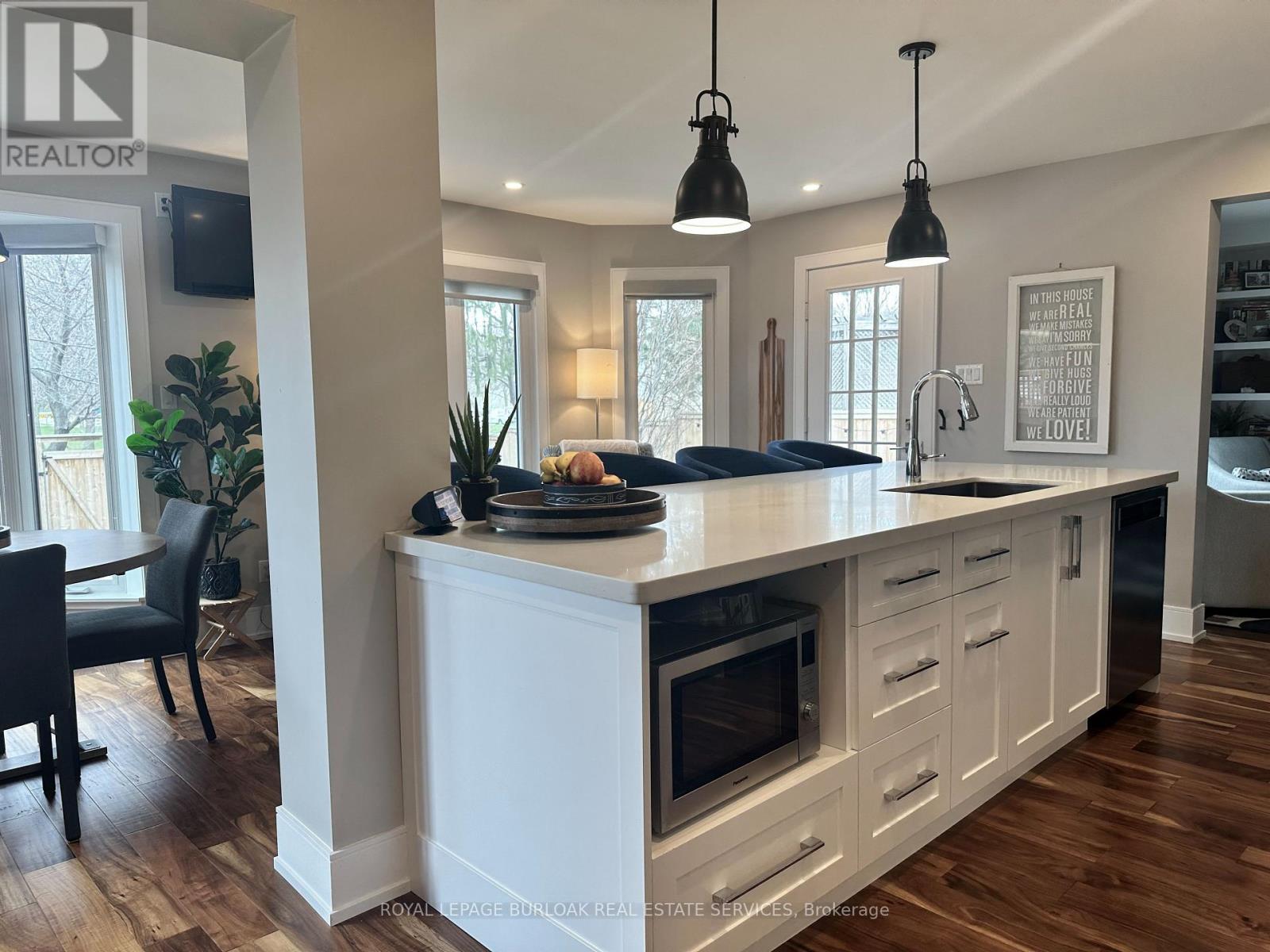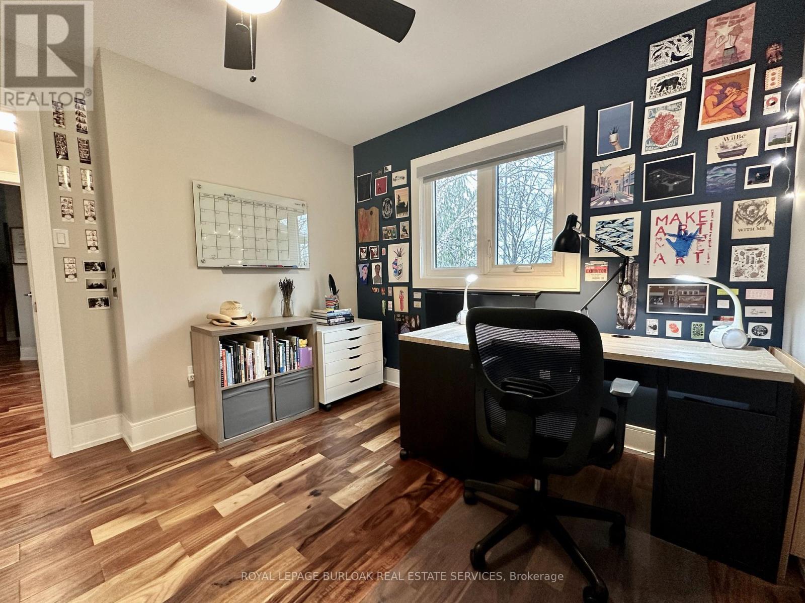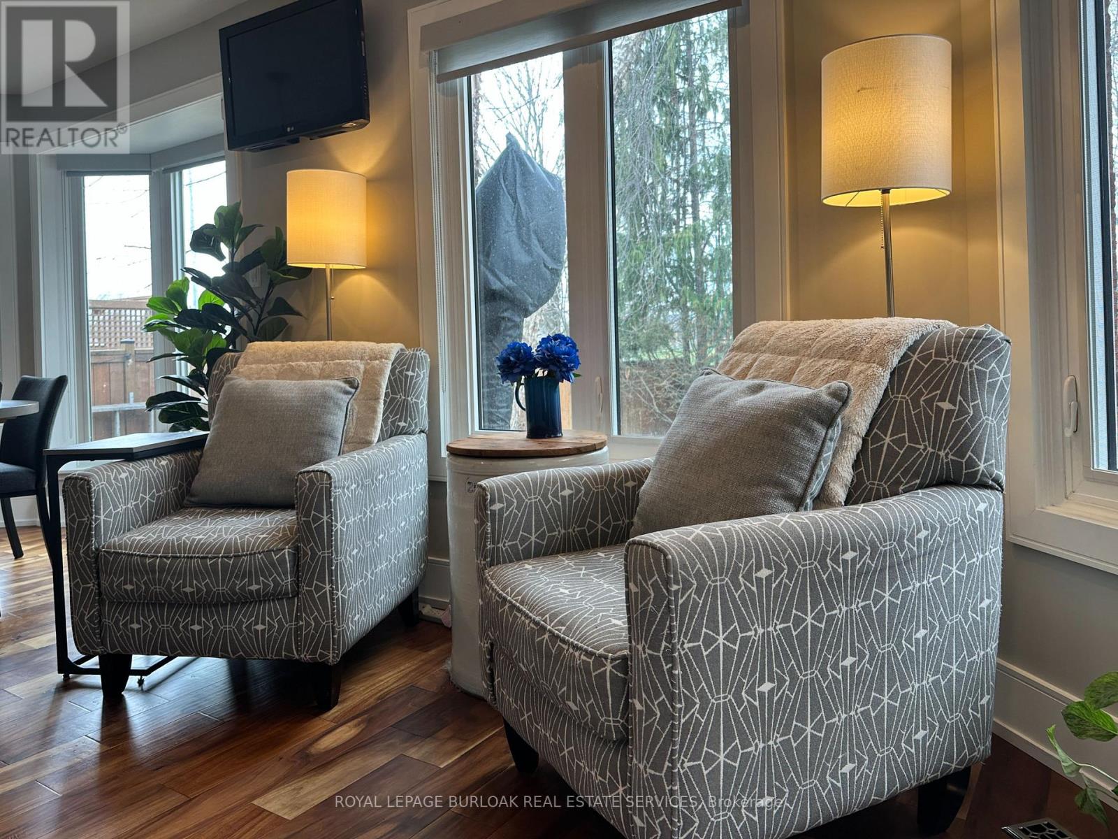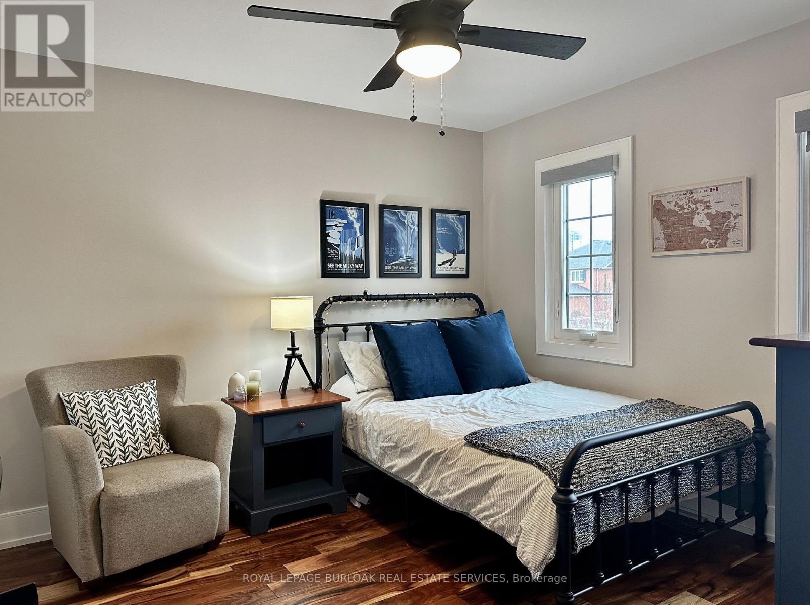 Rarely offered for sale two story detached home in Maple Lane Estates. Walk to downtown, Spencer Smith Park, the Burlington Art Gallery and Mapleview Mall. Convenient access to 403, 407, and QEW. Backing onto Maple Park with a gated fence access, this home is perfect for a growing family. Move in and relax! Fully updated inside and out, the ground floor offers an open concept, modern kitchen with island seating for 4 and wine fridge that is fully open to the family room and perfect for entertaining. Updated flooring throughout the house. The renewed landscaping, front and backyard (2025) with irrigation system allows for more outdoor living space on the spacious back deck. Includes heated floor in primary en suite, central vac, cold cellar for storage, and a fully finished basement with an extra bedroom and a full bathroom.**Seller is related to the listing salesperson. (id:64974)