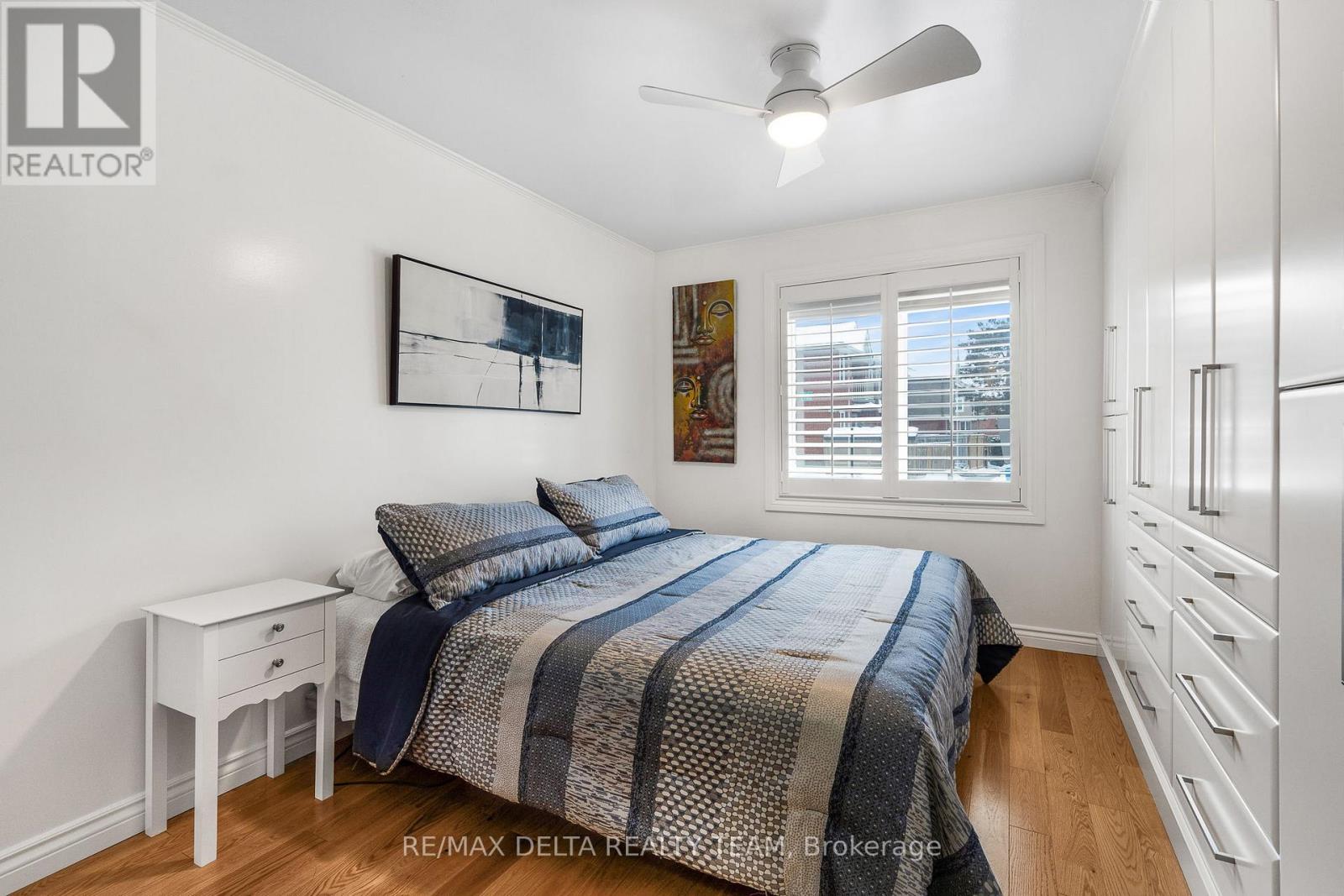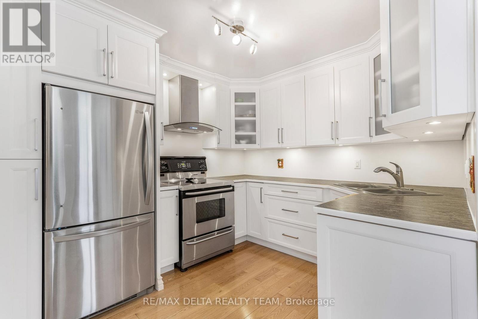 Truly one of a kind, this upgraded bungalow-style condo offers refined finishes and exceptional attention to detail throughout. Hardwood flooring extends seamlessly across the main level and down the staircase to the lower level, complemented by rich oak interior doors. The designer-renovated kitchen ($20k) by Creation Unik, and bathroom showcase timeless finishes, with the bathroom featuring an elegant walk-in shower and cork floor for warmth and comfort. The primary bedroom is enhanced by (17K custom built-in cabinetry, hardwood floors and exterior walls have been insulated) offering both sophistication and exceptional storage. The lower level features A versatile rec room-currently used as a bedroom-pairs perfectly with in-unit laundry equipped with newer appliances, creating a functional living space. Impressive curb appeal with an interlock patio and a striking front door replaced by the owner. Includes one parking space (#255). Ideally situated close to shopping, schools, and with effortless access to Highway 174, this is a truly special property that stands apart from the rest. Basement renovated, wall insulated and floor has moisture barriers. Stairs, oak with tempered glass wall at the top. $3k customized front door by Verdun doors and windows, lifetime warranty. (id:64974)