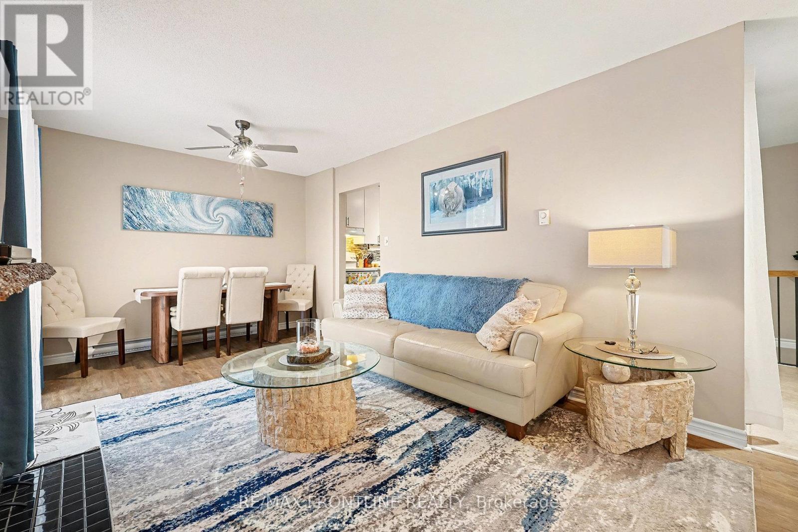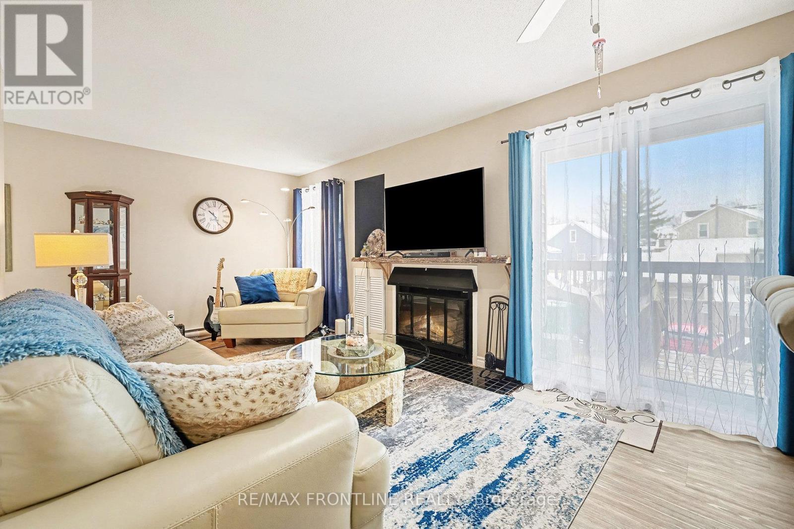 Welcome to this inviting two-story, 2 bed, 2 bath condominium in the heart of Carleton Place, where thoughtful design meets everyday comfort, in a setting that feels like home from the moment you arrive. Step inside to discover a sun-drenched living and dining area that serves as the heart of this residence. A charming wood-burning fireplace creates a warm focal point, perfect for cozy evenings. Sliding glass doors open onto a private balcony. The updated kitchen with generous storage solutions make meal preparation an absolute pleasure. Every detail has been considered to maximize functionality and you will appreciate the convenience of the main floor powder room. The lower level reveals a full 4pc bathroom and two beautifully proportioned bedrooms, each featuring windows that flood the spaces with natural light. The primary bedroom walk-in closet provides abundant storage. The combination of energy efficient baseboard heaters and the fireplace ensures comfortable temperatures regardless of the season. The unique small fenced yard provides added privacy and a secure outdoor space for your small pets to enjoy. There is also room for small raised gardens if gardening is a passion. This home includes one parking space. The location truly shines with Findlay Park just steps away and the picturesque Mississippi River within walking distance. Local shops, restaurants, schools and so much more are all nearby, while easy highway access simplifies commuting. This move-in ready home awaits its next chapter. Schedule your private viewing today and discover the perfect blend of comfort and convenience that could be yours. Current monthly condo fees 631.00 which include water, sewer, garbage, snow removal, building insurance. (id:64974)