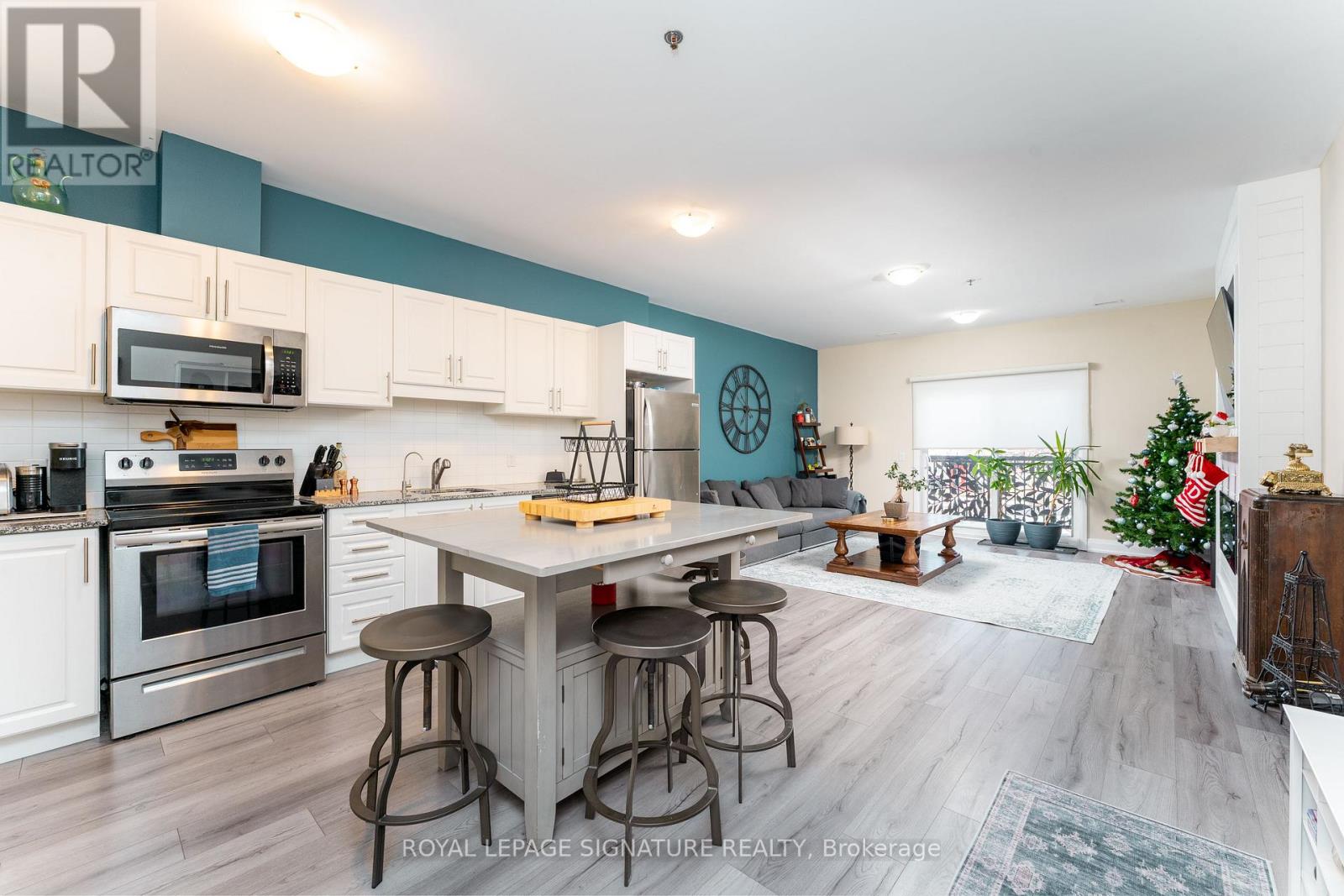 Great area and a wonderful starter place to raise a family. Two bedroom 2 bathroom condo apartment with parking and locker. Close to a quaint town. The condo building is in close walking distance to parks,restaurants & shopping. The place has a beautiful built-in tv unit and fireplace. Kitchen is open concept kitchen with stone counters andback splash. The living room walks out to balcony. Laminate flooring throughout. The hallway features a built-in cubbies for coats. The condo is in walking distance two schools and grocery stores. (id:64974)