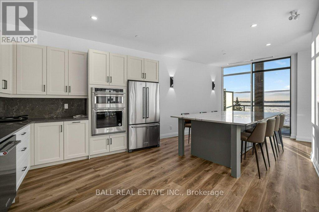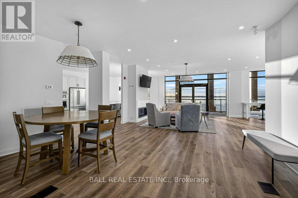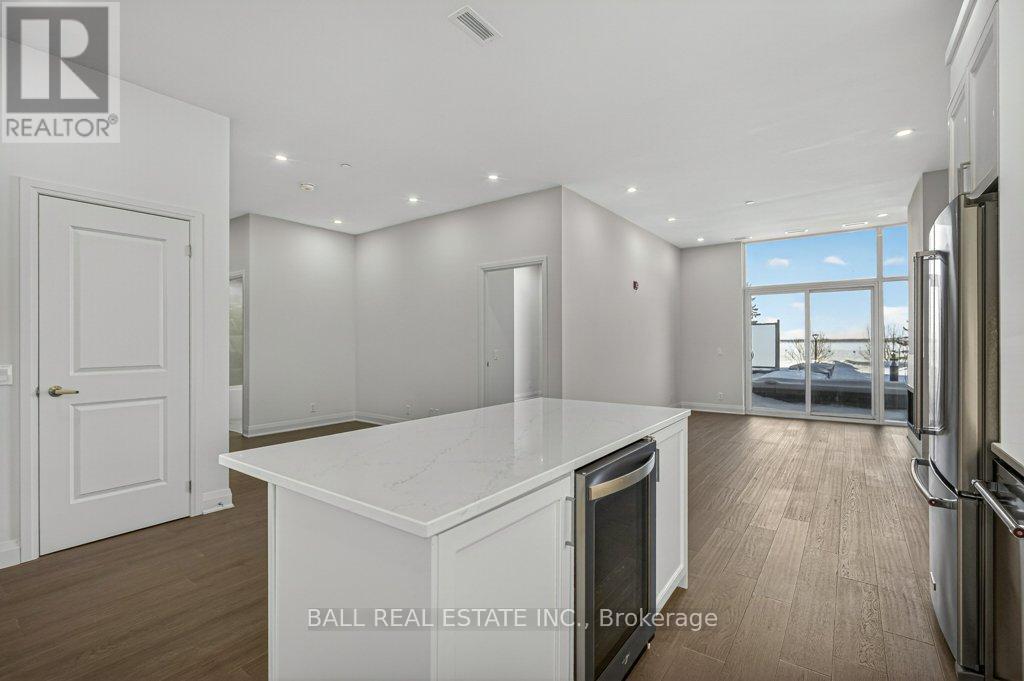 Luxury Living in the Heart of Kawartha Lakes, experience resort-style living every day in Kawartha Lakes' premier condo development - The Moorings on Cameron Lake. This stunning 2-bedroom, 2-bath suite + den offers 1401 sq foot of elegant and spacious living with nine foot ceilings, clerestory windows and an open-concept layout with premium finishes throughout. Suite Features: Expansive kitchen/dining/living area with gas fireplace and walk-out terrace overlooking the lake with western sunsets (gas BBQ hookup). Upgraded kitchen with quality cabinets, quartz countertops, under-cabinet lighting, large island and stainless steel appliances. Primary suite has waterfront view with walk-in closet and luxurious en-suite bathroom. Second bedroom ideal for guests or office space with waterfront view. Den area with a walk-in closet. In-suite laundry room with extra storage. Engineered hardwood & porcelain tile flooring throughout, upgraded doors and trim. Two underground parking spots and private locker included. World-Class Amenities: Outside Lakeview lounge with western sunsets, lakeview state-of-the-art fitness centre with indoor sauna, lakeview owners lounge with caterer's kitchen and movie theatre, (can be booked for private events). Two guests suites, grand foyer with gas fireplace, heated outdoor pool & hot tub, tennis/pickleball court, and beautifully landscaped outdoor areas. Boat slips available for purchase at the on-site marina (to be built, spaces limited). Steps from the Victoria Trail, shopping, dining, wellness services, and entertainment. Located on the tranquil shores of Cameron Lake, part of the Trent-Severn Waterway, and just minutes to Lindsay and Bobcaygeon, this is an ideal blend of luxury, convenience, and nature. Enjoy spectacular western sunsets, peaceful surroundings, and vibrant local living - all less than 90 minutes from the GTA. Only a few units remain - don't miss this rare opportunity to own at The Moorings! (id:64974)