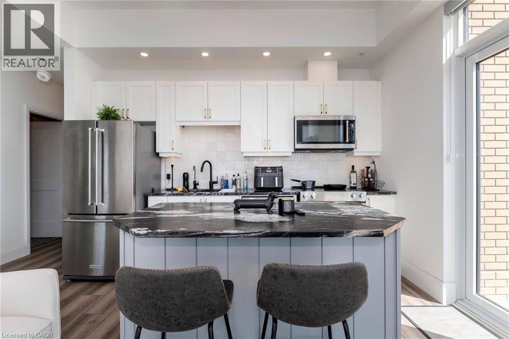 AVAILABLE IMMEDIATELY! CAN BE LEASED FURNISHED! Welcome to #2708-108 Garment, an exquisite corner penthouse suite offering unbeatable sunset views and unparalleled luxury. This 2-bedroom, 2-bathroom residence, complete with parking and locker, features unique custom upgrades that are sure to leave a lasting impression. With 10-foot ceilings throughout, the welcoming entryway leads you to floor-to-ceiling windows that showcase stunning 180-degree views of Kitchener-Waterloo. Boasting over $35,000 in upgrades, this space is designed to impress. The custom kitchen includes high-end KitchenAid appliances, including a French door fridge with a water line, and numerous bespoke upgrades not offered by the builder. You'll appreciate the imported Italian backsplash, premium granite island with four large pot drawers, and elegant gold cabinet handles. Additional upgrades include custom light fixtures, motorized blackout blinds, feature wall paneling, and a built-in desk and mantel for optimal space utilization. The main bedroom is spacious and inviting, bathed in natural light with breathtaking sunset views, and features an upgraded walk-in closet and ensuite bathroom. The second bedroom, perfect as an office, includes floor-to-ceiling windows, allowing you to enjoy the cityscape from all angles while you work from home. Building amenities enhance your lifestyle with a pool, fitness center, party room, and rooftop terrace complete with a basketball court and dog run. Located just steps from the LRT, Google/Technology hub, and downtown Kitchener, convenience and luxury combine seamlessly. Book your showing today and envision yourself living in this one-of-a-kind penthouse unit! (id:64974)