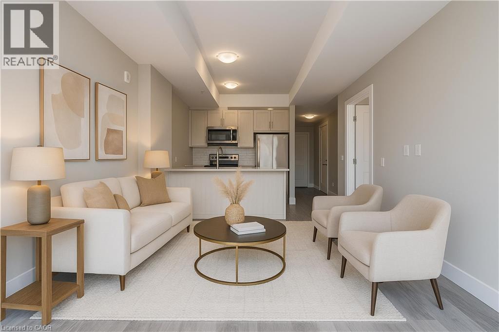 Located in Tower 3 of the Garment Street Condos in Kitchener’s Innovation District, Suite 1209 offers upscale living that feels more like home than a rental. With 540 interior square feet, soaring ceiling height, floor to ceiling windows and wide plank flooring this unit enjoys bright and open primary living spaces. The modern kitchen includes contemporary cabinetry, quartz countertops, stainless steel appliances, a complementary tile backsplash, plus a peninsula suited to both daily use and entertaining. The bedroom features a walk-in closet, and the unit is completed by a spacious four-piece, bathroom and in-suite laundry. This suite is also available with utilities included for $1900 monthly if desired. Building amenities include a resort-style rooftop pool, fitness centre, yoga studio, sports court, private theatre, entertainment lounge with kitchen, landscaped rooftop terrace with BBQs, pet run and wash, secure car and bicycle parking, and wireless internet throughout. Steps to Downtown Kitchener, Victoria Park, shops, restaurants, transit, and the future LRT hub, the location also provides easy access to the GO Train, ION Light Rail, and major employers including Google, UW Health Sciences Campus, D2L, Deloitte, and The Tannery. Walk Score: 87 | Transit Score: 64 | Bike Score: 85 (id:64974)