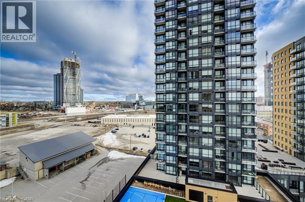 Welcome to luxurious urban living at its finest! This immaculate 1-bedroom, 1-bathroom condo on the 12th floor offers stunning city views and an upscale lifestyle right in the heart of Kitchener. Step inside to discover a high-end kitchen adorned with top-of-the-line appliances, sleek finishes, and freshly painted walls throughout. The spacious living area extends to a private balcony, perfect for your morning coffee or evening relaxation. Enjoy the convenience of in-unit laundry, plus your own underground parking spot and locker for extra storage. The building itself is an amenity paradise, featuring a state-of-the-art fitness center, a relaxing swimming spa, an outdoor basketball court, and a stylish event room equipped with additional kitchen space for entertaining. Step outside to the expansive outdoor terrace with multiple BBQs and ample seating to soak up the sun, or take advantage of the convenient doggie potty area to keep your furry friend happy. Whether you're seeking luxury, convenience, or community, this condo has it all—don’t miss your chance to call it home! - Additional underground parking spaces are $155 per month. (id:64974)