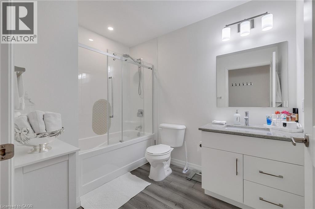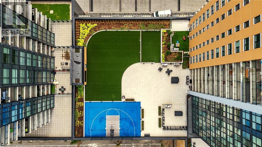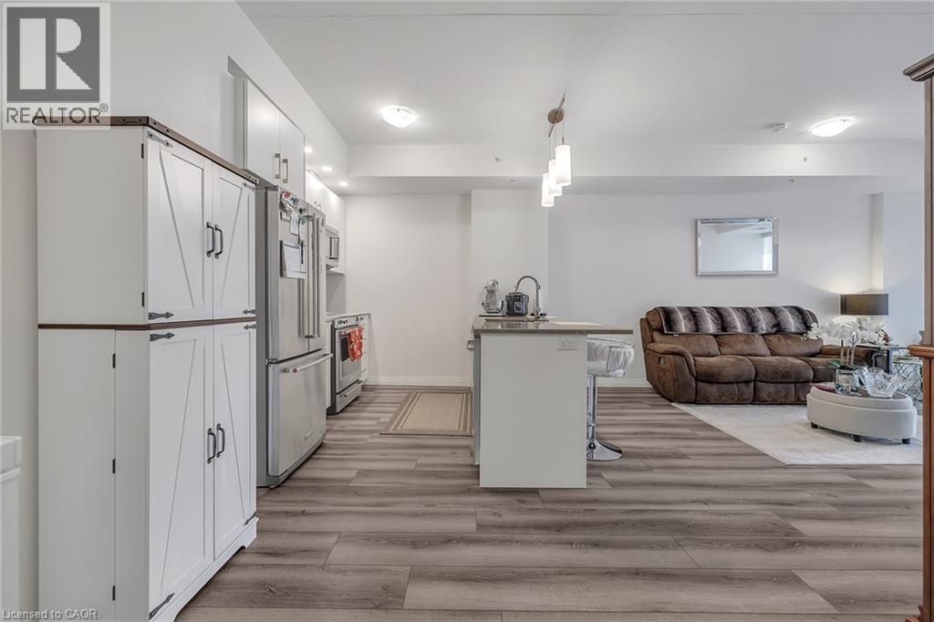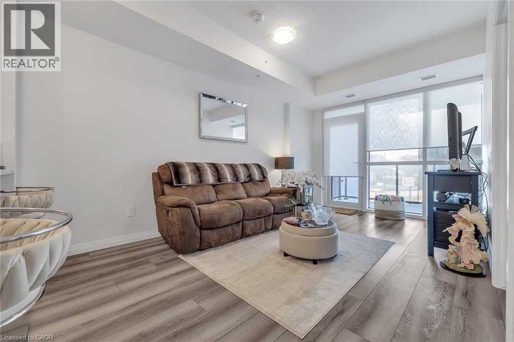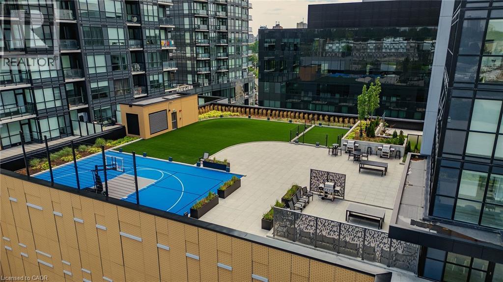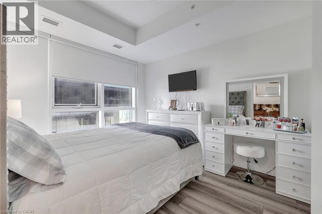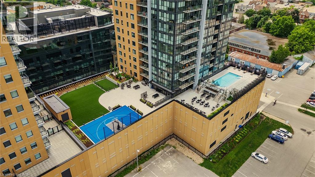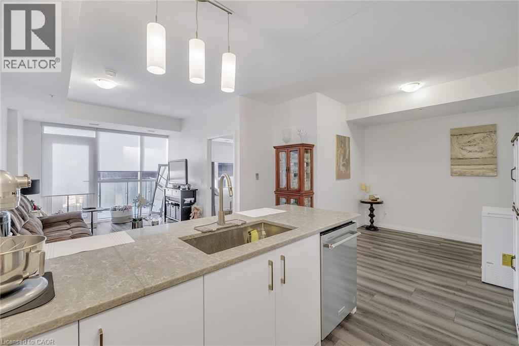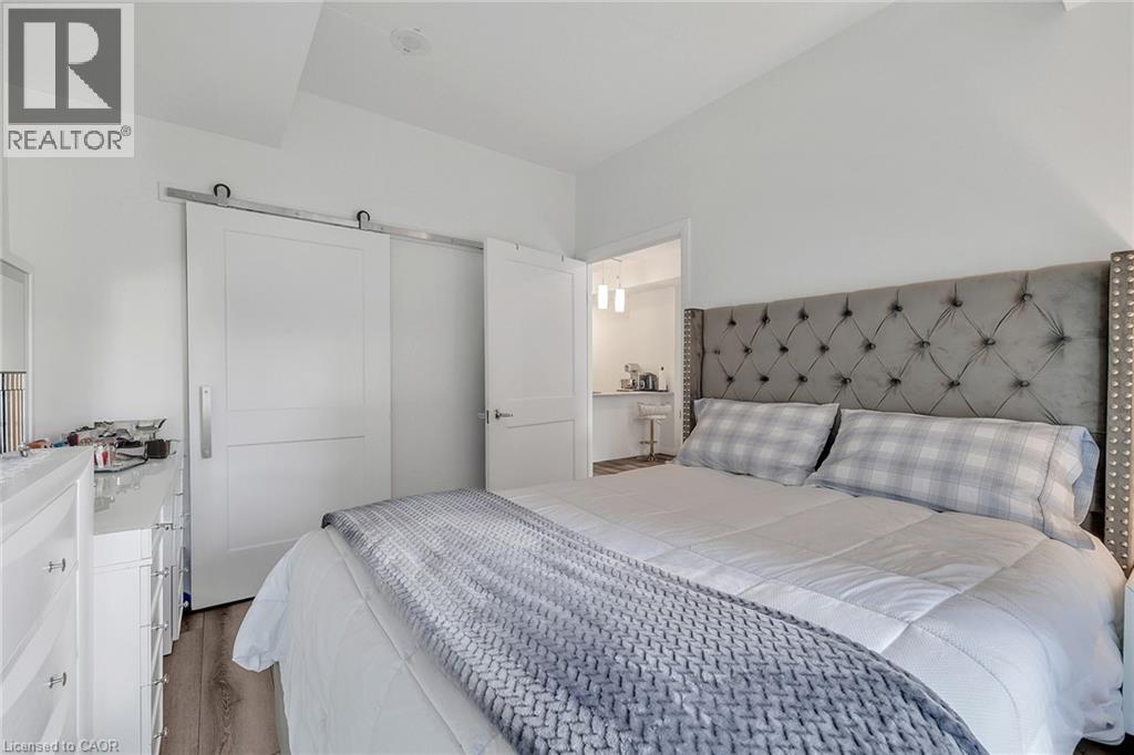 Discover one of the most desirable buildings in the city at Garment Condos! This spacious and well-designed unit offers exceptional value with a bright, open-concept layout and modern finishes throughout. The contemporary kitchen features sleek cabinetry, a convenient breakfast bar, and premium flooring that flows seamlessly into the living space. A generously sized bedroom, stylish 4-piece bathroom, in-suite laundry, and private balcony complete this comfortable and inviting home. Residents enjoy outstanding building amenities including a rooftop pool, fitness centre, party room, lounge area, yoga space, pet run, urban park, and sport court. Perfectly situated in the heart of Downtown Kitchener, just steps from Google, KPMG, Deloitte, the LRT hub, GO Train, Communitech, the Schools of Pharmacy and Medicine, Victoria Park, and an endless selection of shops, restaurants, and entertainment. A bright, modern condo in an unbeatable location—don’t miss this opportunity! (id:64974)