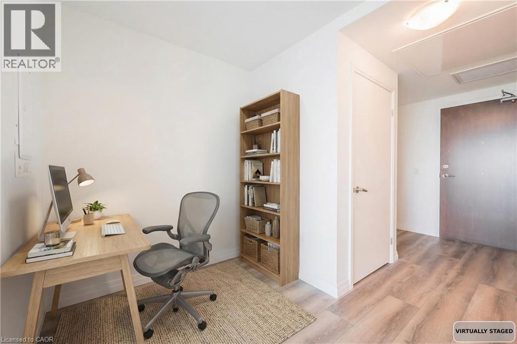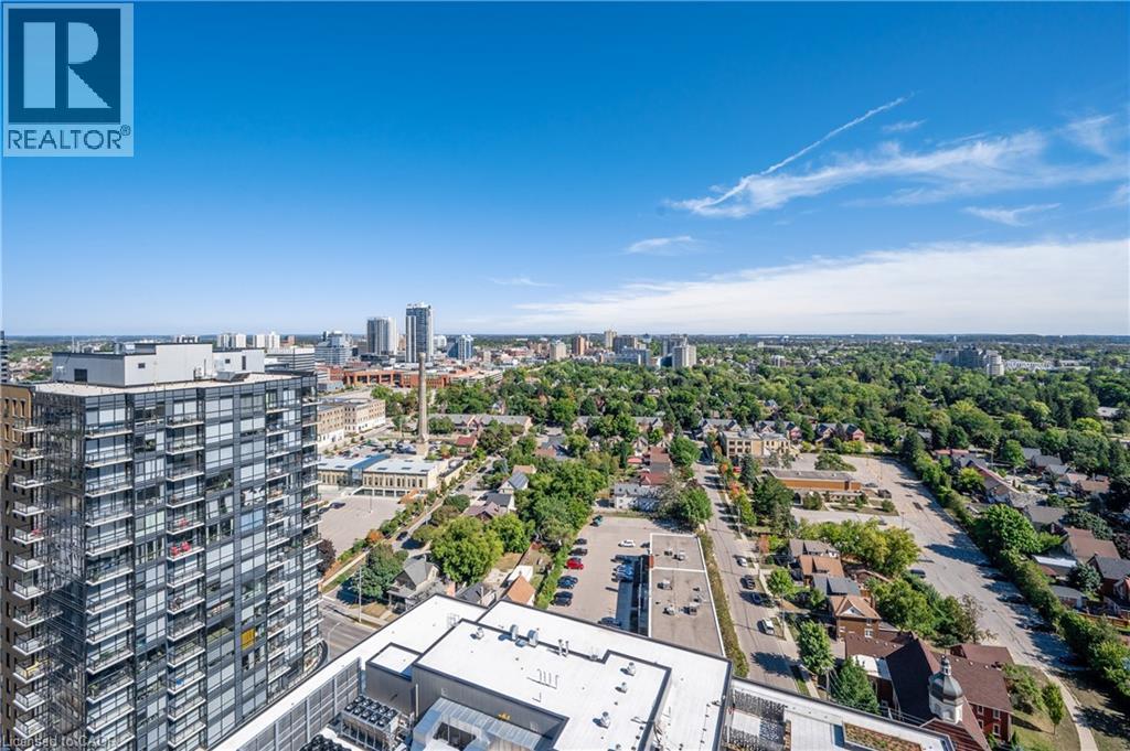 Elevate your lifestyle from the 22nd floor of Garment Street Condos, perfectly positioned in the heart of Downtown Kitchener’s Innovation District. Available April 15th, this premium 1-bedroom plus den suite features a highly functional layout with a dedicated home office/den area and an upgraded kitchen with sleek black hardware. Floor-to-ceiling windows and a private covered balcony offer breathtaking, unobstructed views of the city skyline and Victoria Park. This unit includes one unassigned parking space in the secure garage. Beyond the front door, you are steps away from the vibrant downtown core, where a world of endless cafes, premier restaurants, and year-round community events awaits those who love to explore and stay active. Tower 3 residents enjoy exclusive access to a rooftop pool, fitness center, sport court, and a social party room, while pet owners benefit from an on-site pet run and dog wash. This prime location is a commuter's dream, located steps from the LRT and GO Train, and within walking distance to Google, Deloitte, KPMG, and D2L. High-speed internet, heat, AC, and water are all included (tenant responsible for hydro and insurance). Experience the perfect blend of modern luxury and urban energy. (id:64974)