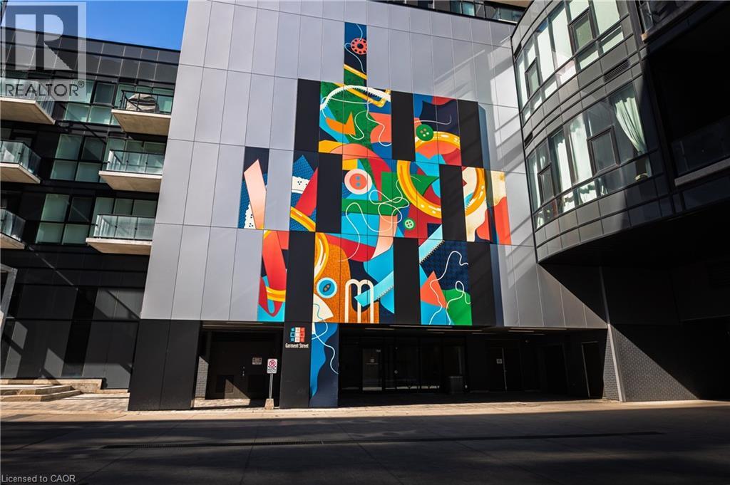 Welcome to Garment Street, Kitchener’s vibrant Innovation District! This modern bachelor/studio-style condo offers a thoughtfully designed open-concept layout. The bright living area is filled with natural light from large windows and features engineered flooring throughout, creating a clean and contemporary feel. The kitchen is beautifully finished with modern cabinetry, granite countertops, backsplash, and stainless steel appliances. The in-suite washer and dryer add everyday convenience. Residents of this sought-after building enjoy exceptional amenities including an outdoor swimming pool, half-court basketball court, landscaped terrace with BBQ area, party room with private patio, outdoor dog run with pet washing stations, fitness room, and a yoga/wellness studio. Located steps from the ION Light Rail Transit, GO Station, and bus routes. This unbeatable location is within walking distance to Tech Hubs including Google. You’ll also be just minutes from Downtown Kitchener, Victoria Park, restaurants, shopping, and more. Don’t miss this fantastic opportunity. (id:64974)