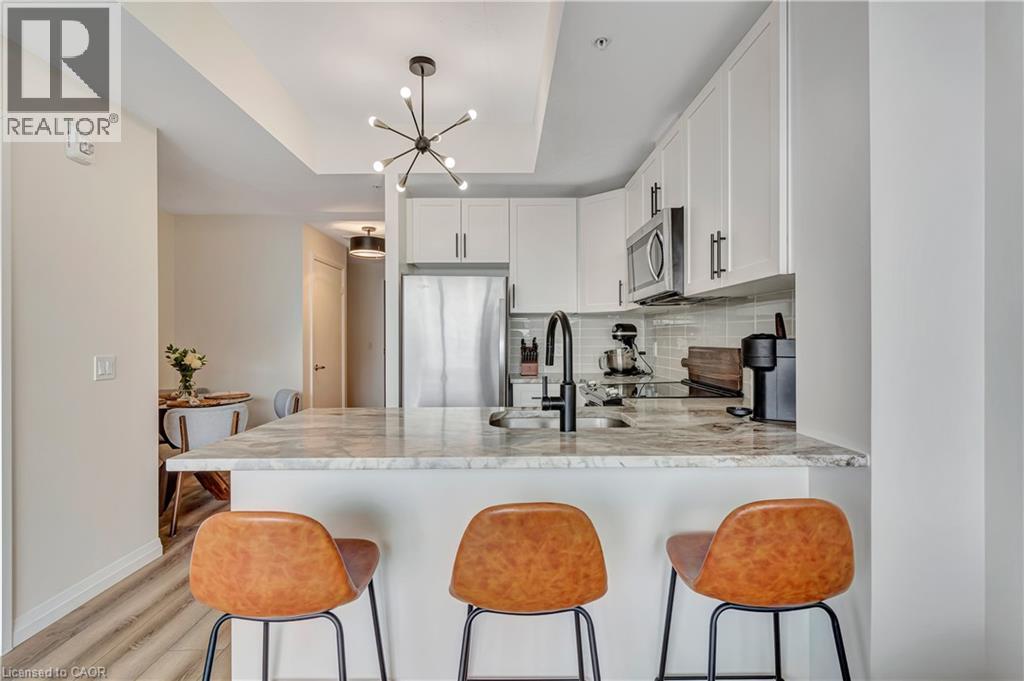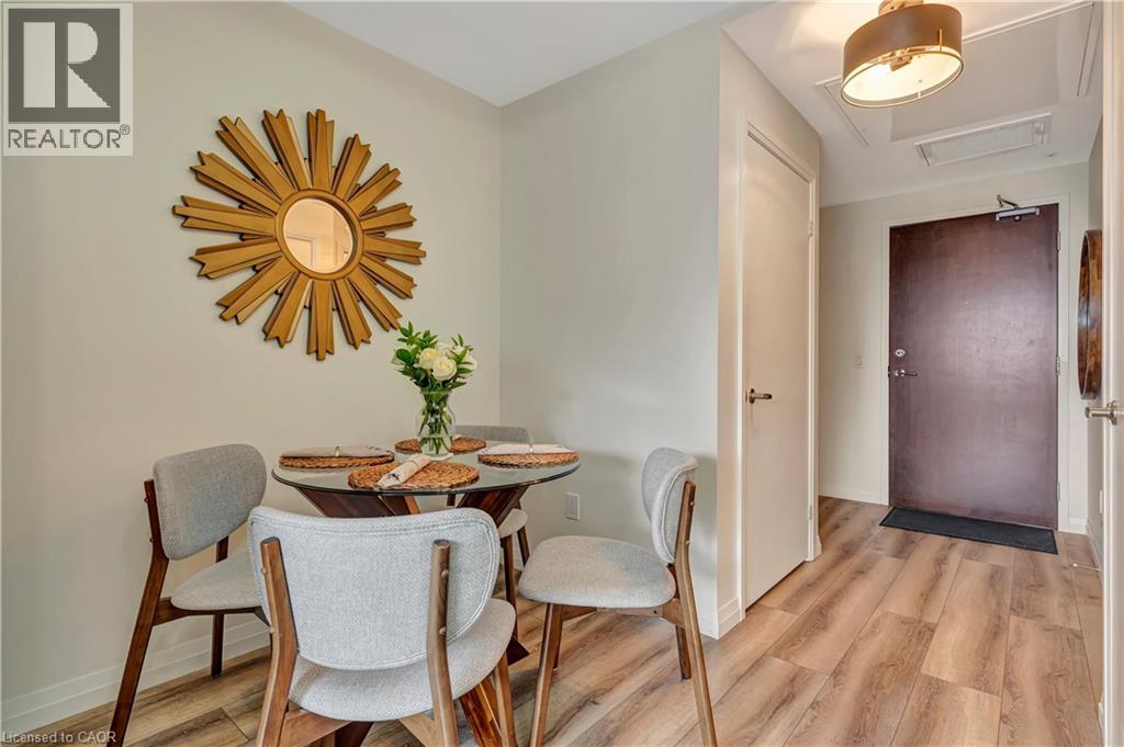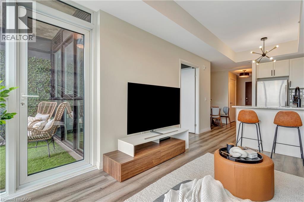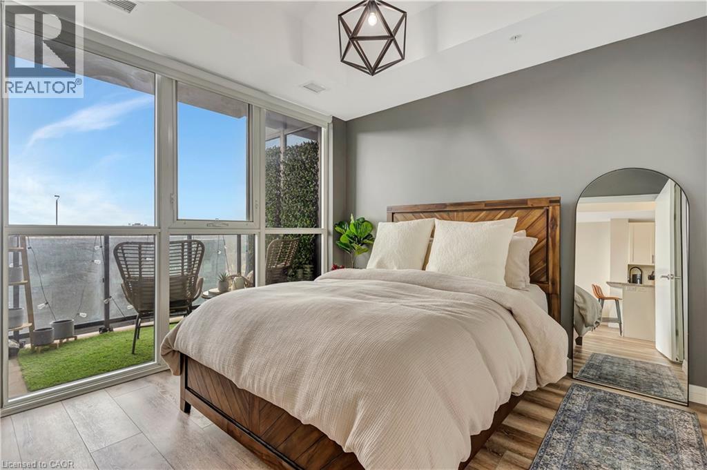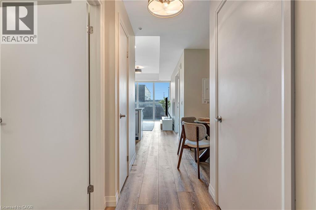 CITY LIVING, ELEVATED: YOUR NEW CHAPTER AT GARMENT ST. Imagine waking up in a bedroom bathed in soft light, knowing that if you wanted a few more hours of perfect sleep, your blackout blinds have you covered. You step onto premium vinyl flooring and head toward a kitchen that feels like it was pulled straight from a design magazine, 36” upgraded white cabinetry, sleek granite countertops, and a stylish glass backsplash that catches the morning sun. As you brew your coffee you look across your open-concept living space. With a quick tap, the motorized privacy blinds glide open, revealing the pulse of the city below, enjoy the view from the windows or your balcony. Located in the heart of the Innovation District, your commute is likely a leisurely stroll. You’re steps away from Google, Deloitte, KPMG, and Communitech. If you’re a student or professional at the McMaster School of Medicine or UW School of Pharmacy, you’re right where you need to be. Over 620 sqft, 1 bedroom with a wall-to-wall closet, and an extra-large bathroom for a spa-like experience under the high-pressure chrome shower head. The buildings amenities are ideal for hosting friends - on the landscaped BBQ terrace or taking a dip in the outdoor pool (complete with an accessible elevator and shower). Hit the fitness room, find your zen in the yoga area, or shoot some hoops at the on-site sports court. Whether you’re heading across town or out of the city, you are perfectly positioned. With the ION LRT, Go Train, and the future transit hub just minutes away, the entire region is your backyard. Parking: Secure parking available for lease at $140/month. (id:64974)