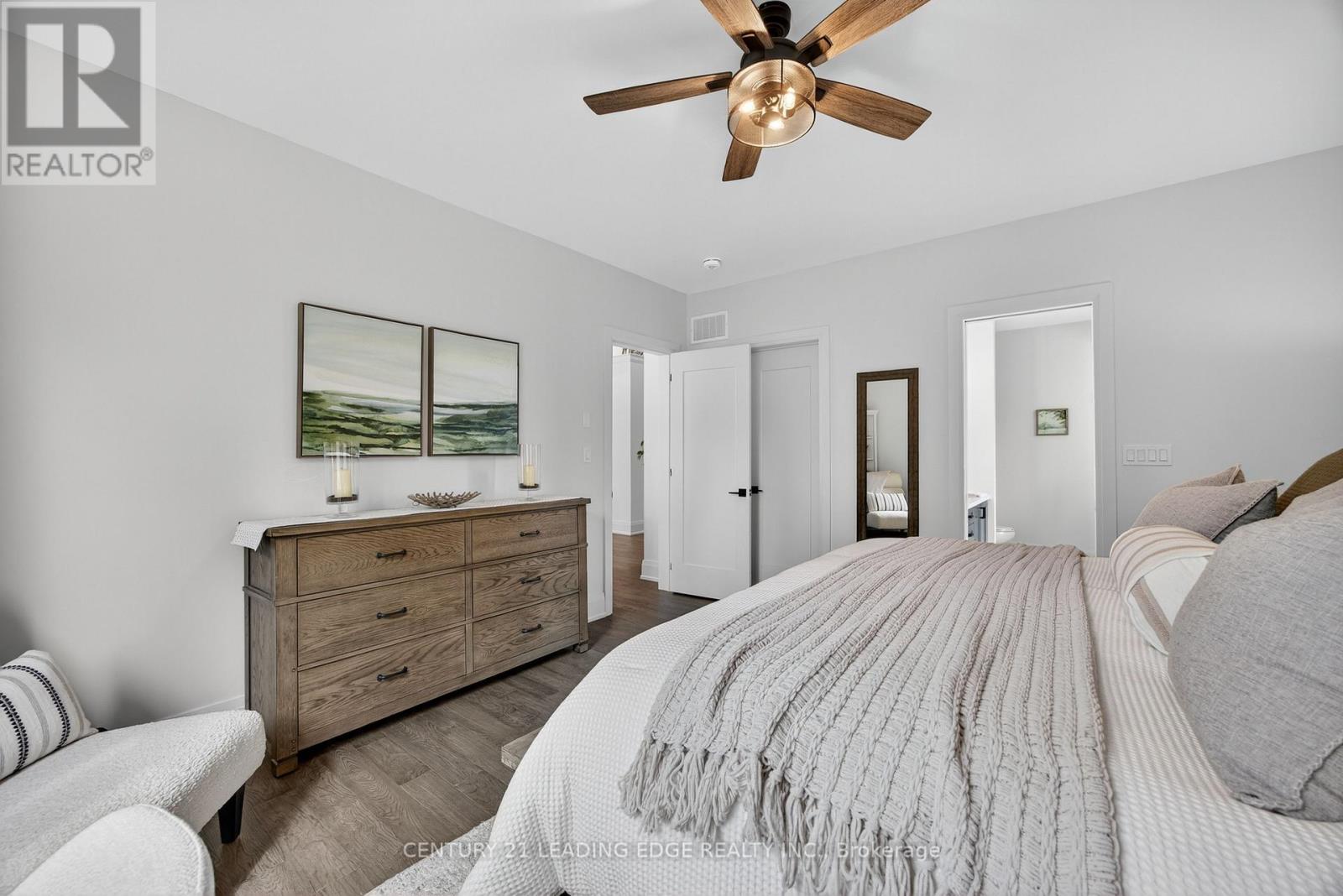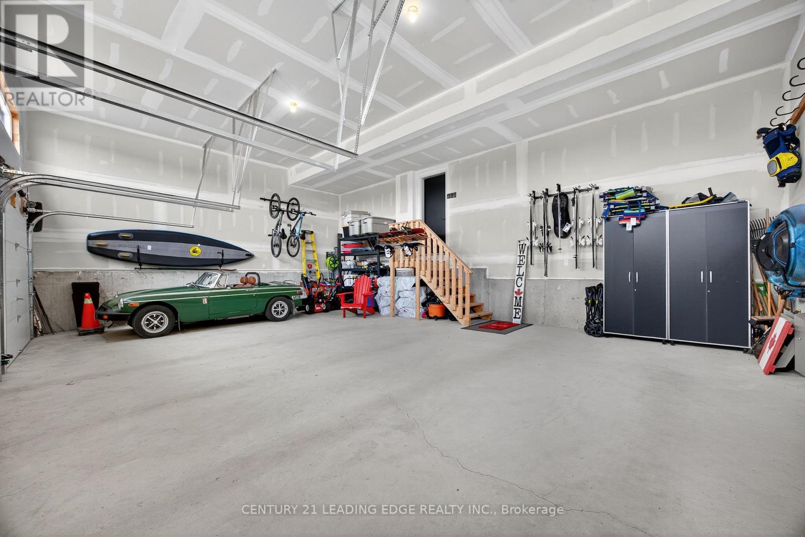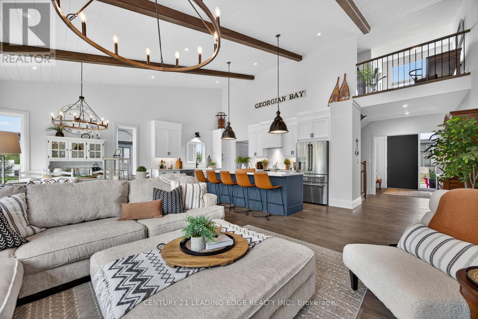 Welcome to 108 Goldie Court, a perfect home for your 4-season lifestyle! Meticulously upgraded, this open concept Alta model (2,375sqft) will not disappoint! A large inviting foyer to greet guests leads to a show-stopping great room with vaulted shiplap ceiling featuring 3 beams, Restoration Hardware island pendant lights, pot lights, hardwood floors, 41" gas fireplace and a 12' by 8' sliding door enhancing the treed view. Entertain family and friends around the huge, quartz island (9'8" sink free) with beverage fridge and undercounter microwave drawer. Kitchen features stainless steel GE Cafe appliances (fridge, induction stove & dishwasher), a stylish Frankle double-bowl farmhouse ceramic sink with additional window, a modern backsplash, plenty of storage including double pots & pans drawers, deep pantry, extended cabinets with undermount lighting & shiplap hood vent. A pocket door leads to the laundry room with double closet & garage access. Spacious main floor primary bedroom has a walk-in closet and a 5pc ensuite featuring upgraded black Moen faucets & handheld shower heads, glass 1/2 wall for shower & pocket door. Bedroom 2 on the main floor makes a great office/den with large window. Second floor has 2 bedrooms (Bdrm 4 with additional side window), a large loft area overlooking the great room & a 4pc bath. Open to below hardwood staircase to basement with bonus 9' ceiling, radiant heated floor (cozy for the winter), large windows and a 200amp electrical panel. Relax and watch the sunset on your western exposure 400sqft deck with gas bbq hookup & tranquil protected woodland view. Store your toys & gear in a 3 bay oversized dream garage with 9' wide doors, high ceiling & a 6 car driveway (no sidewalk). Conveniently situated between the scenic waterfront community of Thornbury & Collingwood, your active lifestyle is just steps to the Georgian Trail & Council Beach, minutes to Georgian Bay Club, private ski hills & Blue Mountain Village. (id:64974)