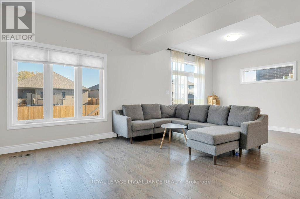 Executive 4 - Bedroom Home with In - Law Suite Potential Near CFB Trenton & bay of Quinte. Located just steps from the beautiful Bay of Quinte, 108 Ledgerock is a stunning two-storey home built in 2021, offering four bedrooms, three bathrooms, and an attached double-car garage. The modern, open concept layout is perfect for family living and entertaining. The bright kitchen features a natural gas stove, fridge, dishwasher, washer, and dryer - all appliances included. Enjoy year - round comfort with a natural gas furnace, central air conditioning, HRV system, and hot water on demand. The second floor offers four spacious bedrooms, a convenient laundry room, and a primary suite with a large walk-in closet and private three-piece en-suite. A side exterior door beside the lower-level staircase provides the perfect setup to convert the unfinished basement into an in-law suite or separate apartment, complete with a rough-in for a bathroom. Additional highlights include a sprinkler system for easy lawn care and a fantastic park next door featuring a basketball net and play area. Ideally located beside Bayside High School and just five minutes from CFB Trenton and Highway 401, this beautiful property combines style, comfort, and convenience - the perfect place to call home. (id:64974)