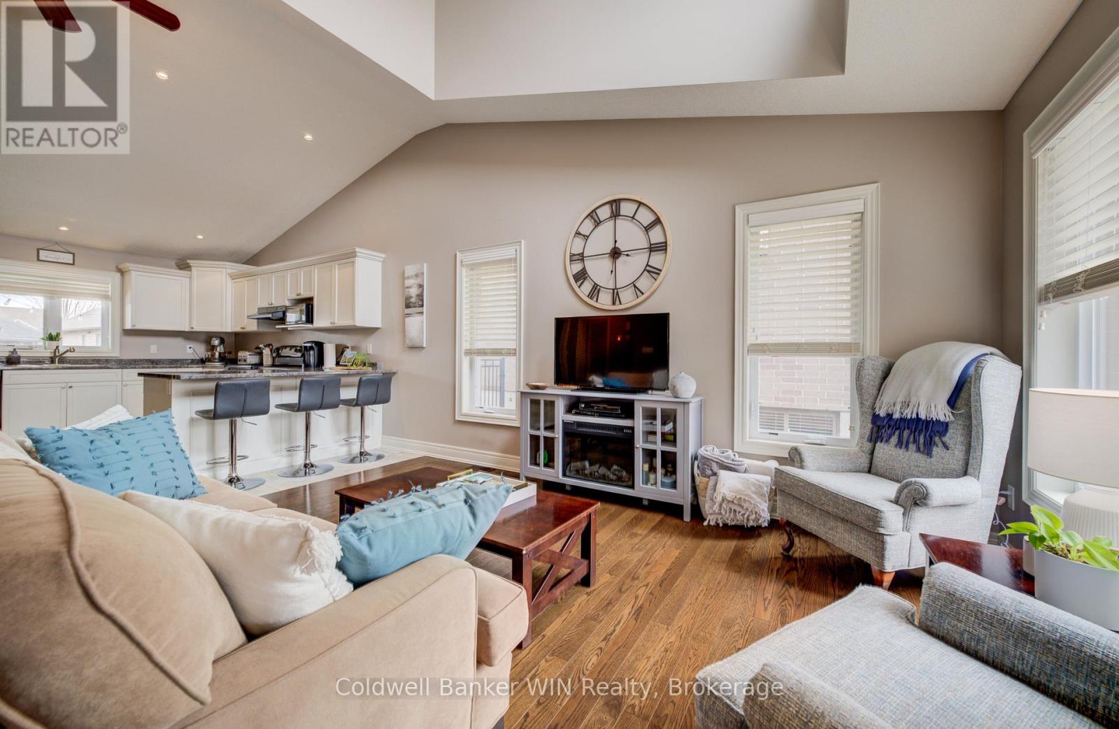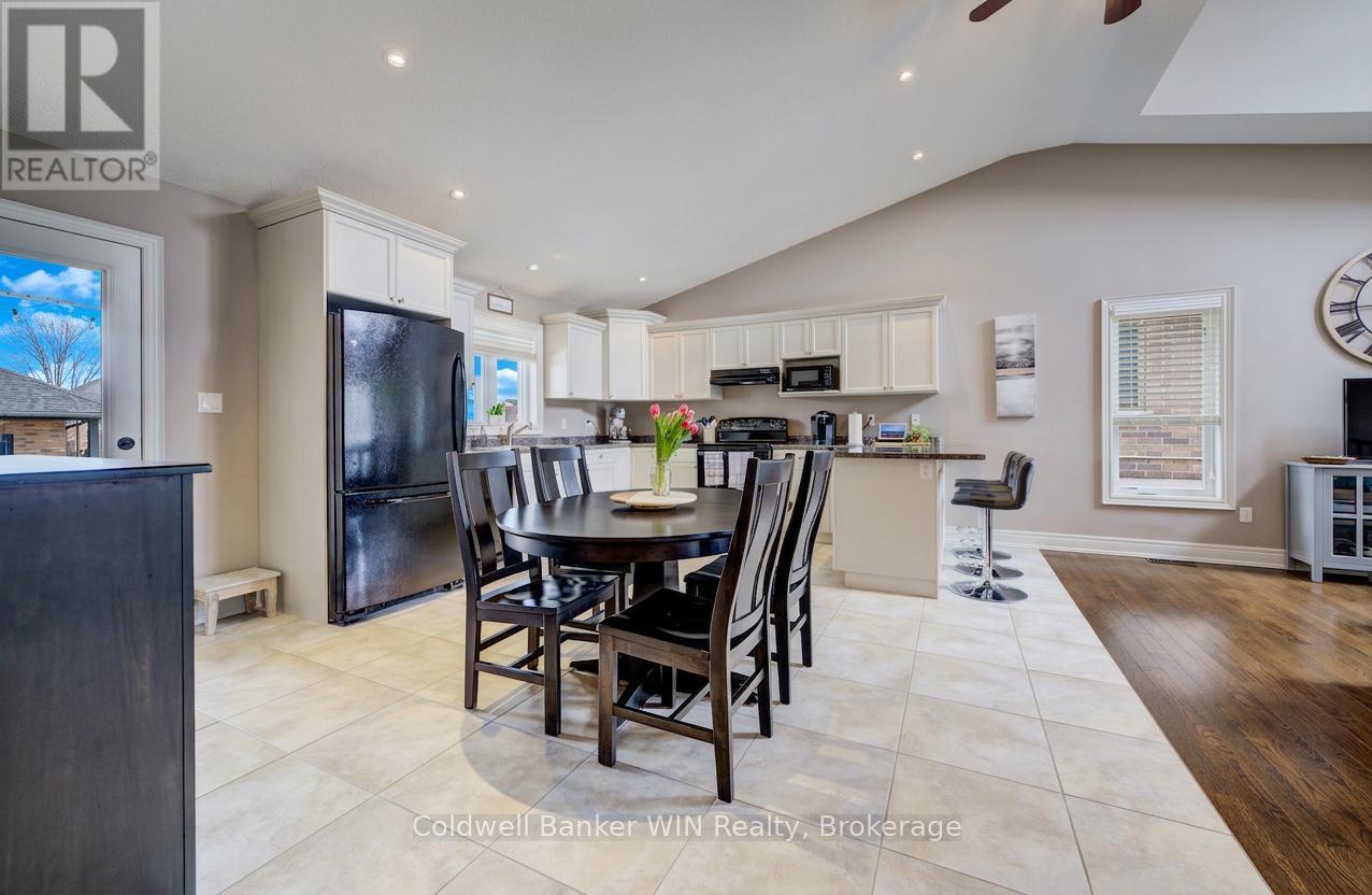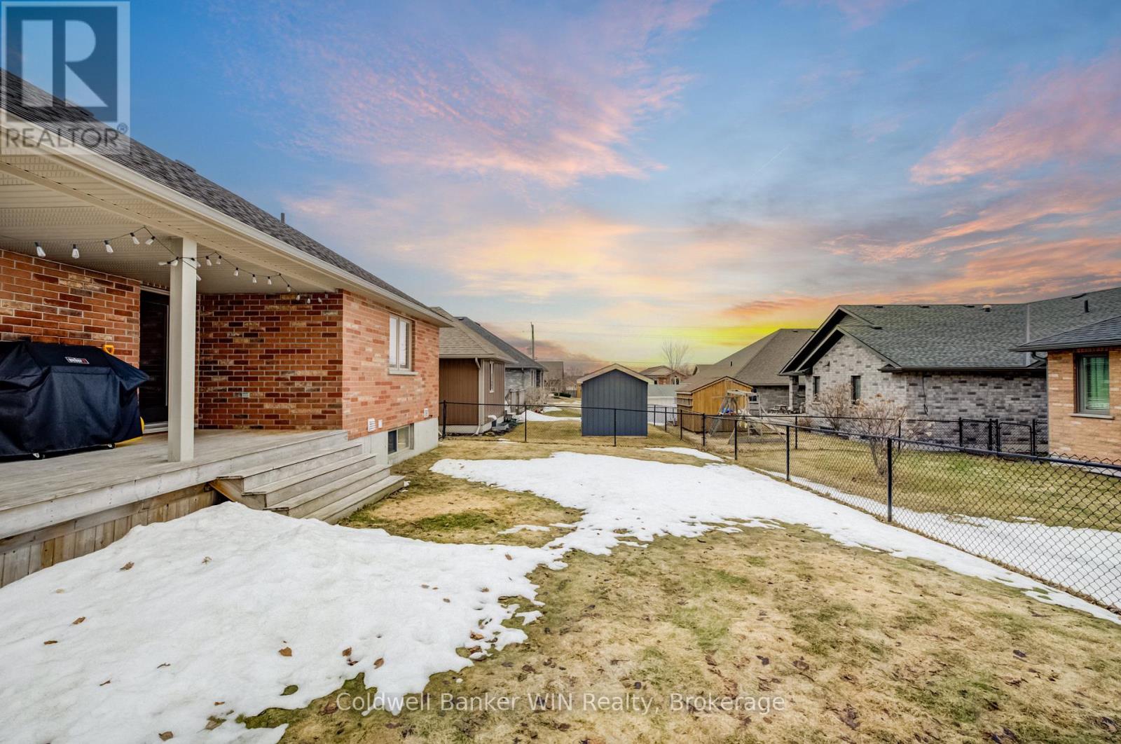 Welcome to this well-maintained 2012 red brick bungalow located in a quiet, family-friendly neighbourhood in Mount Forest. Offering excellent curb appeal, this home features a fully fenced yard, a single car attached garage, and a covered rear deck-perfect for relaxing or entertaining. Step inside to a bright, open-concept main living space highlighted by a stunning cathedral ceiling and dormer window that fills the home with natural light. The living room showcases beautiful hardwood flooring, while the kitchen and dining area are finished with durable ceramic tile. From the dining space, enjoy convenient access to the covered back deck for seamless indoor-outdoor living. The main floor offers two comfortable bedrooms and a 4-piece bathroom. For added flexibility, laundry is roughed-in within the bathroom closet for a potential stackable setup. Downstairs, the fully finished basement provides a spacious family room with plenty of room for multiple uses-whether it's a rec room, home office, or gym. You'll also find a third bedroom, a second 4-piece bathroom, and the current laundry area. Situated in a desirable neighbourhood of similar quality homes, this property offers easy access to downtown amenities, nearby green space, and the surrounding countryside making it an ideal place to call home. (id:64974)