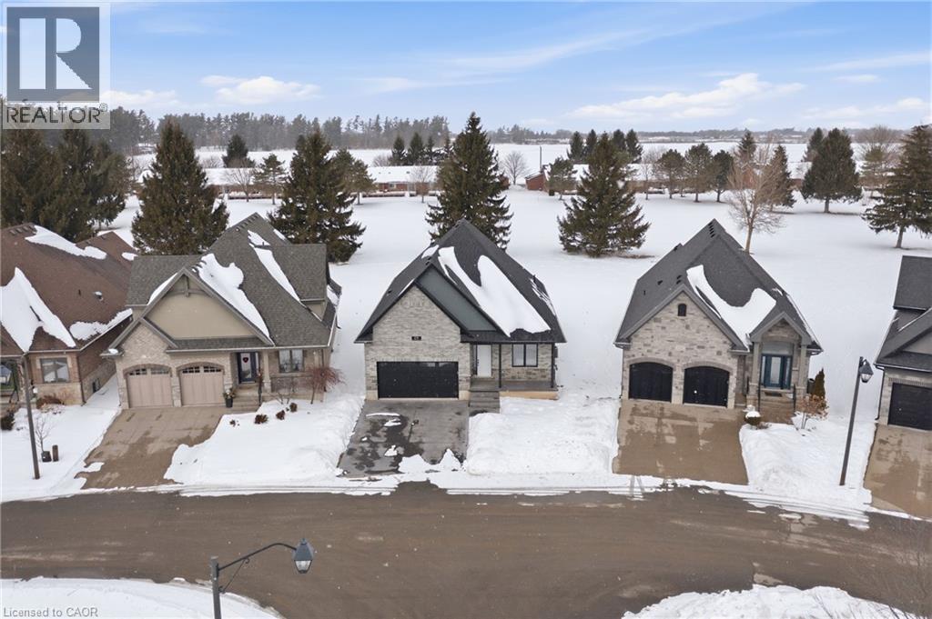 Now is your opportunity to live in a newly built luxury bungalow in the prestigious Fairway Estates community in Delhi where elegance, comfort, and low-maintenance living come together seamlessly. Enjoy a stress-free lifestyle with Tarion Warranty protection, plus snow removal and grass maintenance included for a low monthly fee. This home offers over 2,280 sq. ft. of finished living space, including a 1,515 sq. ft. custom bungalow built by a builder recognized fox blending European craftsmanship with Canadian building excellence. Their commitment to quality, integrity, and personalized service is reflected in every detail of this home. Featuring two bedrooms on the main floor and two additional bedrooms in the fully finished basement, this layout is ideal for those seeking single-level living without sacrificing space, as well as for families with teens or young adults who value privacy, separation, and independent living zones. The open-concept design is enhanced by 9' ceilings, extra-wide hallways, main-floor laundry, and heated floors in all bathrooms. High-end finishes include engineered hardwood on the main floor, luxury vinyl plank in the basement, quartz countertops throughout, ceiling-height kitchen cabinetry, under-cabinet lighting, a striking gas corner fireplace, and 5 1/4-inch modern baseboards. The lower level is exceptionally bright with large 4' basement windows, a direct garage-to-basement entrance, and central vacuum with canister. For hobbyists or those working from home, the basement also offers a large unfinished flex space and extensive storage in the expansive utility room. Outdoor living is equally impressive with a poured concrete front porch, covered back porch, and a dark grey stamped concrete driveway with swirl pattern. Included is an EV rough-in in the garage. This is more than a home—it's a refined lifestyle, where quality craftsmanship meets effortless living. Sale price reflects HST rebate included. (id:64974)