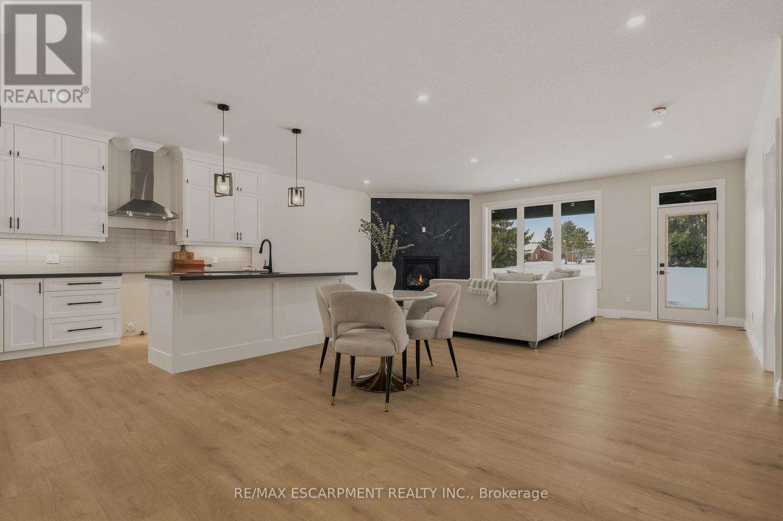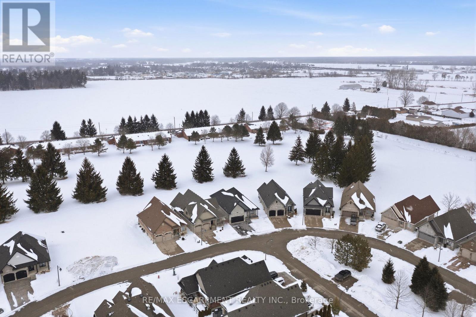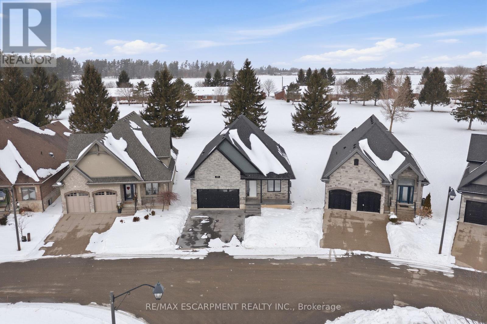 Now is your opportunity to live in a newly built luxury bungalow in the prestigious Fairway Estates community in Delhi where elegance, comfort, and low-maintenance living come together seamlessly. Enjoy a stress-free lifestyle with Tarion Warranty protection, plus snow removal and grass maintenance included for a low monthly fee. This home offers over 2280 sq.ft. of finished living space, including a 1,515 sq. ft. custom bungalow built by Euro-Canada Construction Developments Inc., a builder recognized for blending European craftsmanship with Canadian building excellence. Their commitment to quality, integrity, and personalized service is reflected in every detail of this home. Featuring two bedrooms on the main floor and two additional bedrooms in the fully finished basement, this layout is ideal for those seeking single-level living without sacrificing space, as well as for families with teens or young adults who value privacy, separation, and independent living zones. The open-concept design is enhanced by 9' ceilings, extra-wide hallways, main-floor laundry, and heated floors in all bathrooms. High-end finishes include engineered hardwood on the main floor, luxury vinyl plank in the basement, quartz countertops throughout, ceiling-height kitchen cabinetry, under-cabinet lighting, a striking gas corner fireplace, and 5 1/4-inch modern baseboards. The lower level is exceptionally bright with large 4' basement windows, a direct garage-to-basement entrance, and central vacuum with canister. For hobbyists or those working from home, the basement also offers a large unfinished flex space and extensive storage in the expansive utility room. Outdoor living is equally impressive with a poured concrete front porch, covered back porch, and a dark grey stamped concrete driveway with swirl pattern. Included is an EV rough-in in the garage. This is more than a home-it's a refined lifestyle, where quality craftsmanship meets effortless living. (id:64974)