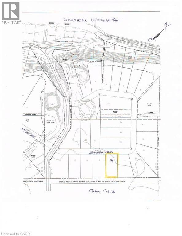 For more information, please click Brochure button. Lot 14 is situated on a secluded paved crescent within the Municipality of Meaford. Steps to Southern Georgian Bay access and trout fishing on Waterton Creek. Comprising 0.97 acres with 148 ft frontage by 287 ft depth, and a large, slightly elevated building plate. Unobstructed views of hay fields ending with the Escarpment, immerse the owner into quiet nature. Hydro and Bell are buried to preserve the natural beauty of this uniquely modern Scandinavian style community; Rockcliffe Estates. Registered protective covenants on land title. You may use your own builder. 15 minutes to Owen Sound Regional Hospital. 5 minutes to Coffin Ridge Winery. (id:64974)