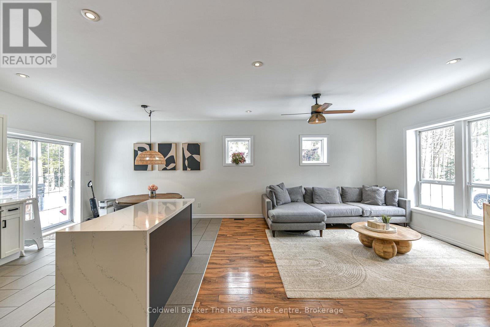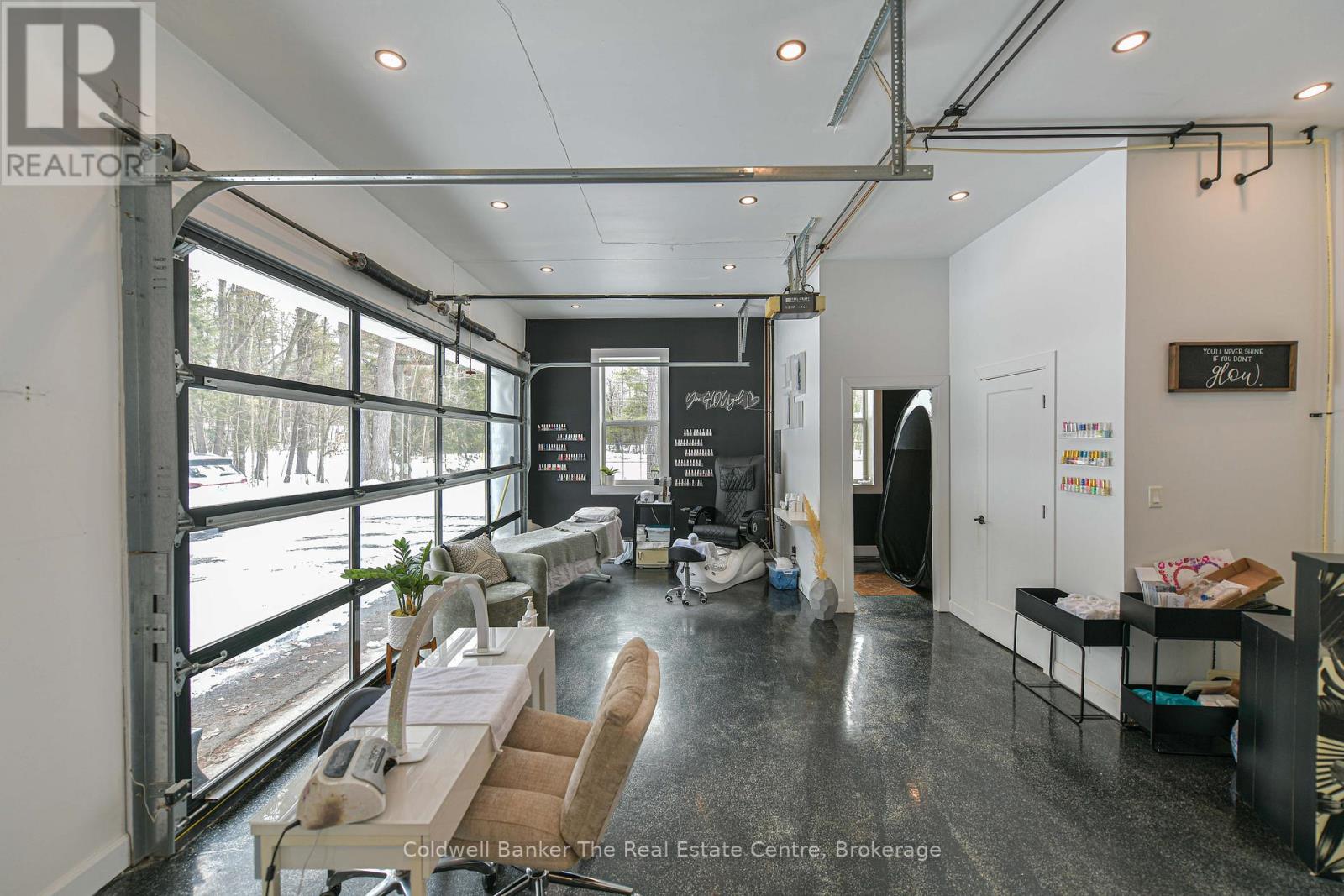 This stunning bungalow is situated on a flat 1.26-acre lot with a newly paved driveway and a extensive list of upgrades. Built with ICF construction to the rafters, this home is durable, energy-efficient, and low-maintenance, offering comfort and peace of mind for years to come. Inside, you'll be impressed by the open-concept kitchen, dining, and living area, perfect for entertaining or enjoying quiet evenings. The kitchen was fully remodeled in 2019, featuring ample cupboard space, quartz countertops, stainless steel appliances, a waterfall-edge island. The dining area opens to the backyard, where a spacious deck and brand-new hot tub provide the ideal setting for BBQs and outdoor enjoyment. The main floor has three bedrooms, including a primary retreat with cathedral ceilings, a walk-in closet, and a beautifully renovated ensuite with double sinks, a large custom tile shower, and rainfall showerhead. The basement has been fully finished and offers a rec room with an entertainment wall and custom bar, a spacious, kids play area that could be used as a gym or hobbie area, a spacious bedroom, a bathroom with an oversized walk-in shower, a laundry room, storage room, and utility room. It's a truly versatile space that provides ample room for all your needs without ever feeling like a basement. The garage has been converted into a stunning salon, complete with full-view glass garage door, epoxy floor with sparkle overlay, its own ductless heating/cooling system, and a 2-piece bathroom, an additional room that could be used as an office space and truly offers endless opportunities to run a business from home. This impressive space is a rare and valueable feature. Additional upgrades include a full Generac system (2025), lot leveling, grading, sod, full irrigation system, a 4k camera system and an invisible fence encompassing the property. Conveniently located between Gravenhurst and Orillia, this home offers easy travel and quick access to shopping and amenities. (id:64974)