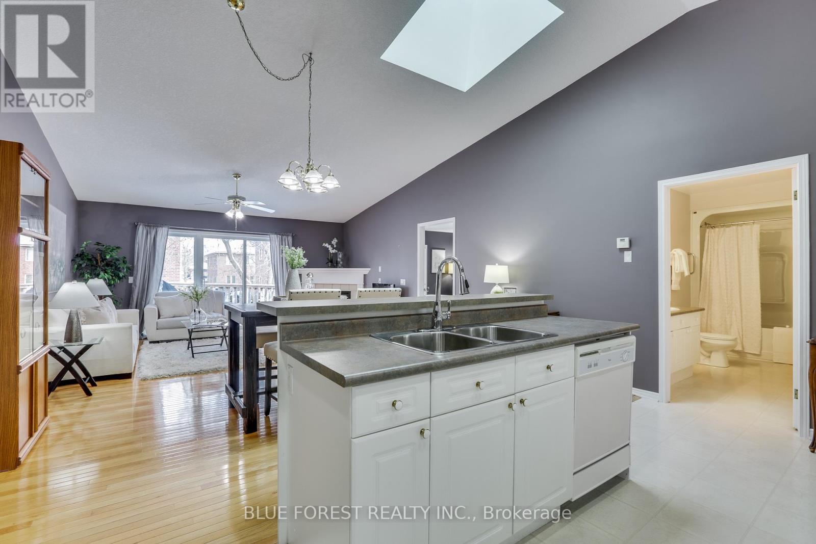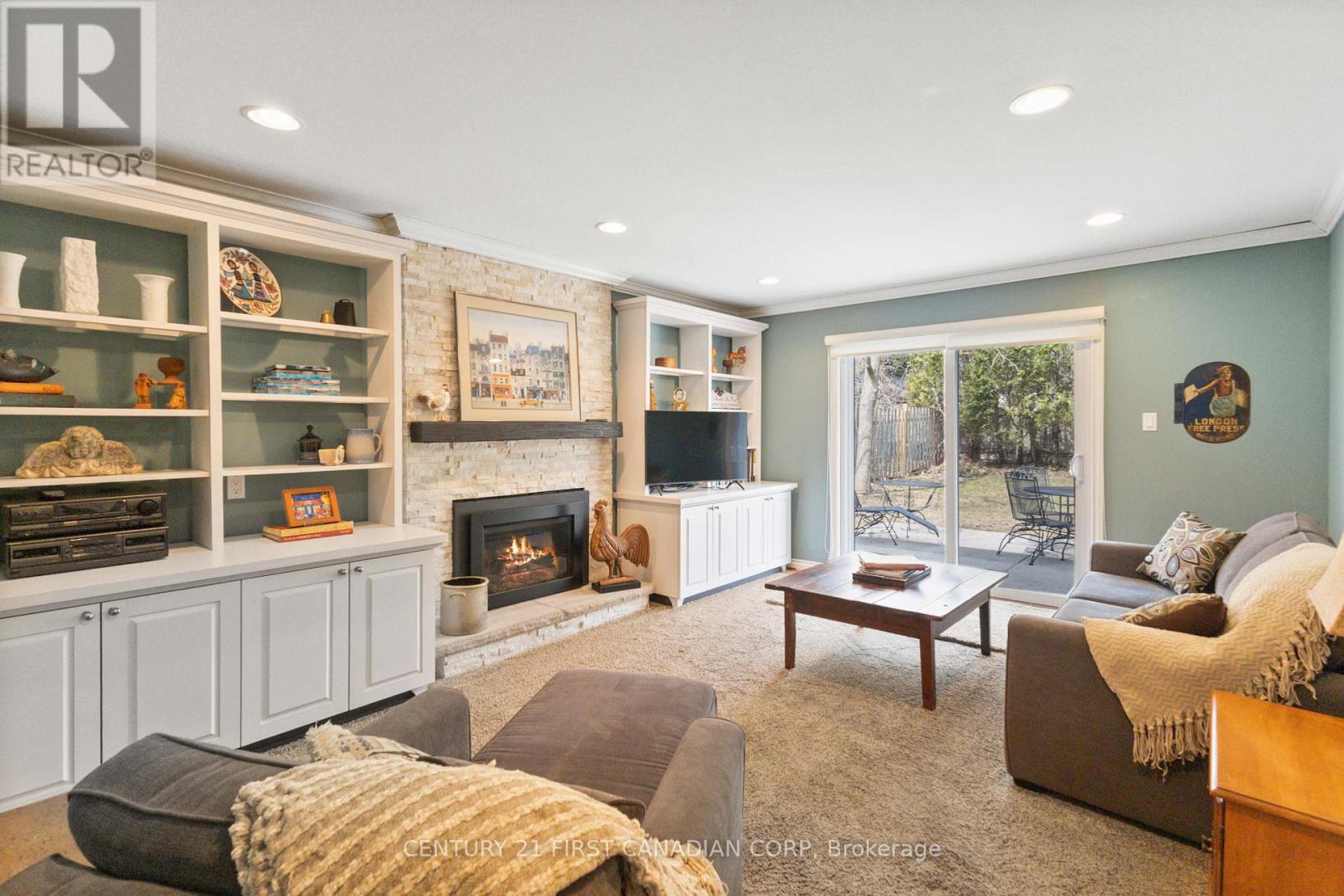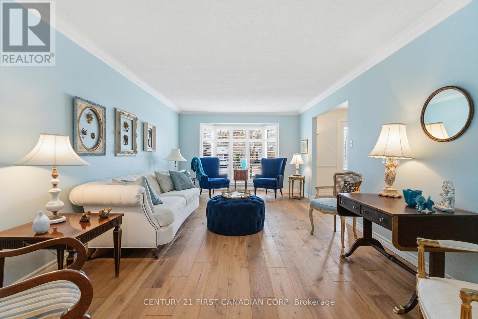 This home, lovingly maintained for over 30 years, is now available for the first time since the original owners! It features high ceilings and large windows that flood the rooms with natural light. The sun rises in the front and sets in the back, creating a beautiful ambiance. Custom California shutters add a touch of timeless elegance and practicality, keeping the home cool in the summer and letting in the sunshine in the winter. Mature trees on the property enhance the natural beauty of this charming home. Every detail has been carefully updated to create a luxurious and comfortable living space. The home boasts luxury real wood large plank flooring, crown molding adding a touch of elegance and timeless charm. Backs onto a lovely, quiet neighbourhood known for its charm, manicured landscapes and friendly neighbours. You wont want to leave! The backyard is a peaceful oasis away from the city, featuring a beautiful stamped concrete patio and landscaped gardens filled with perennial flowers and shrubs. Fully fenced and lined with picturesque evergreens, it offers enhanced privacy. Close to all the amenities you could want, including shops, Westmount Mall, transit, desirable schools and the 401/402/ The main level features a beautiful, bright living room with a lovely bay window, an updated real brick fireplace in the family room, a formal dining room a fully modern updated kitchen with a breakfast nook and an additional dining area that opens up into the backyard for hosting all the summer barbeques you could desire. The upper level has 4 bedrooms. The main bedroom includes a spacious walk-in closet with built-in shelving and an ensuite bathroom with updated amenities. The basement is also a delight, fully finished and ready for your personal touch. A lovely bonus is the cold storage room, a mini shop and storage area. Custom updated pot lights throughout each level enhance the natural light this home offers. Priced to sell. Don't miss out on this forever home! (id:64974)