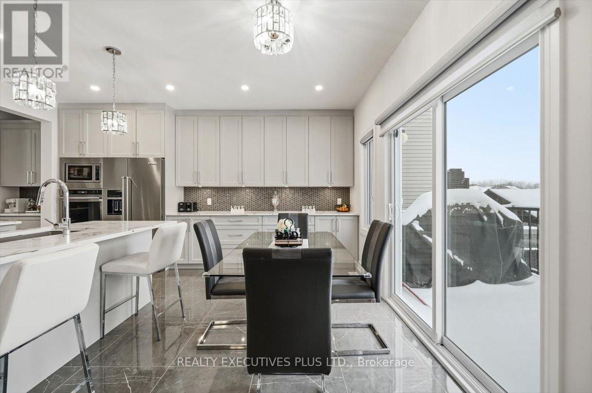 Welcome to this exceptional custom-built 4+1 bedroom home in Rockland, offering a perfect balance of luxury, comfort, and thoughtful upgrades throughout. The main floor impresses with 9-foot ceilings and a carpet-free design, complemented by elegant 2 ft x 2 ft ceramic tile flooring and upgraded light fixtures throughout. The chef-inspired kitchen showcases quartz countertops, upgraded cabinetry, a walk-in pantry, and top-of-the-line KitchenAid appliances, seamlessly flowing into the family room with a cozy gas fireplace. A convenient main-floor laundry room adds everyday practicality.From the kitchen and family room, enjoy picturesque views of the fully landscaped backyard, featuring a heated saltwater in-ground pool, a beautifully designed gazebo with electric retractable roof and power screens, and no rear neighbours, creating a private and inviting outdoor retreat. The upper level offers four generously sized bedrooms, including a stunning primary suite with a luxurious 5-piece ensuite, highlighted by a freestanding soaker tub.The fully finished basement continues the home's quality craftsmanship, offering 9-foot ceilings, a second family room, a fifth bedroom, and a modern 3-piece bathroom, ideal for guests or extended family. Additional highlights include a fully insulated and finished garage with an extended section, perfect for a small workshop or additional storage. With too many upgrades to list, this remarkable home truly must be seen to be fully appreciated. A rare opportunity to own a show-stopping property in Morris Village, delivering both elegance and lifestyle, with the added benefit of no rear neighbours. Book your private showing today. (id:64974)