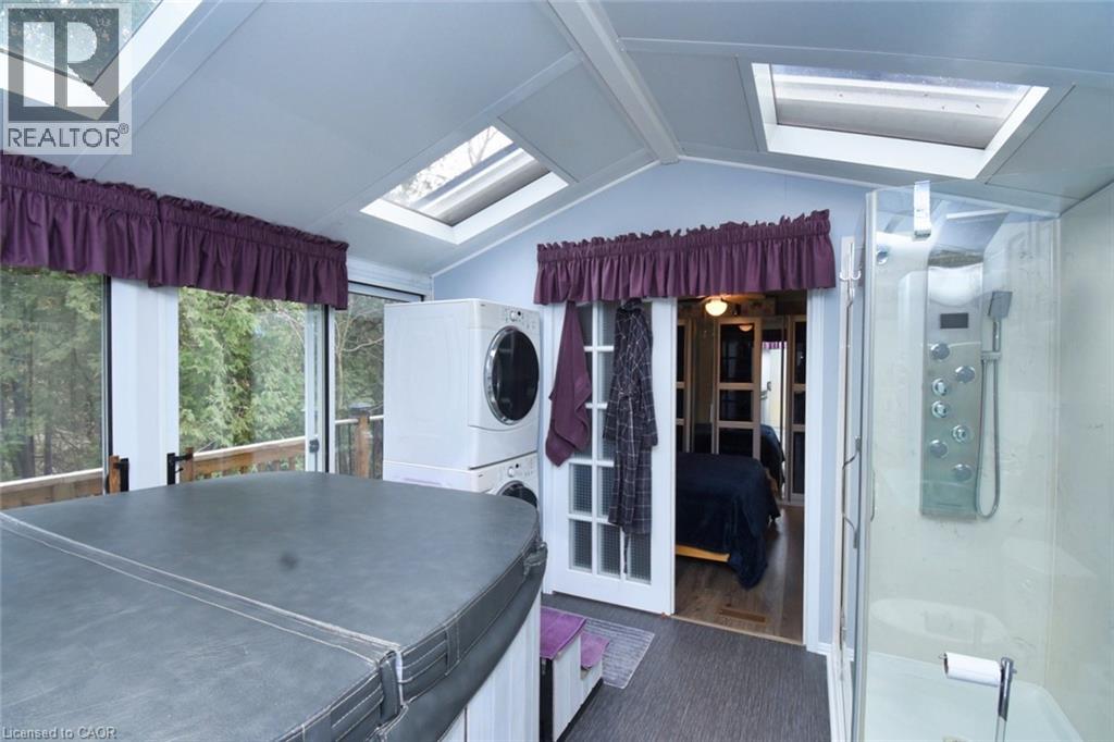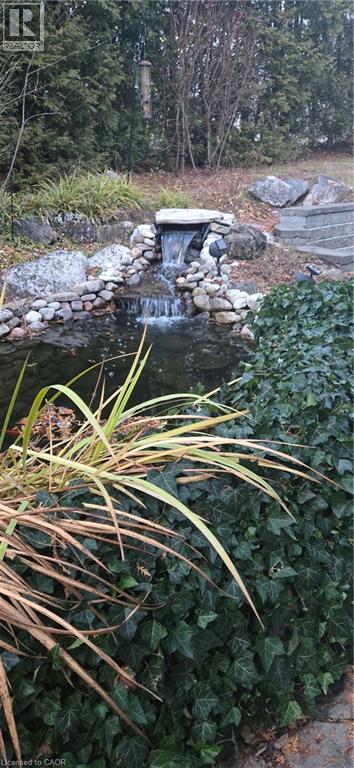 Amazing and exceptional private one of a kind setting for this spacious two bedroom home with many quality upgrades. Thoughtfully landscaped with a cascading waterfall. goldfish pond and terraced patio area. Must be seen! Two private driveways with an abundance of parking. Two spacious garden sheds. Wrap around deck with Gazebo - overlooking the ravine. A serene private setting for quiet enjoyment in this year round, all ages park adjoing the hiking trails. (id:64974)