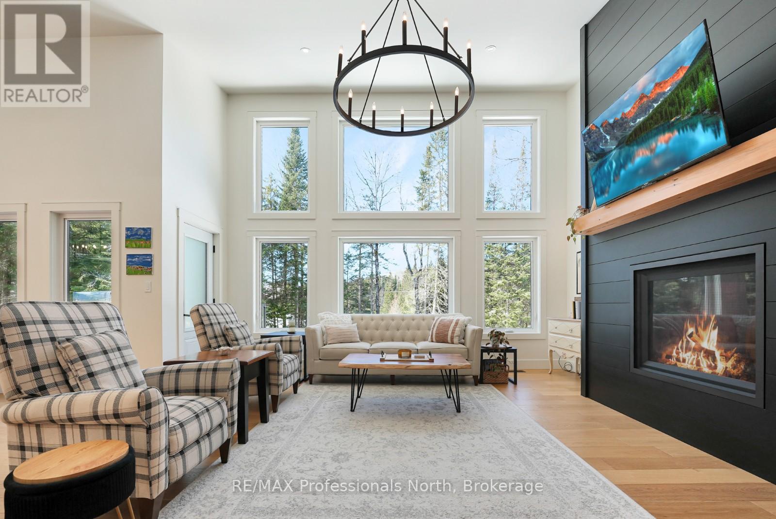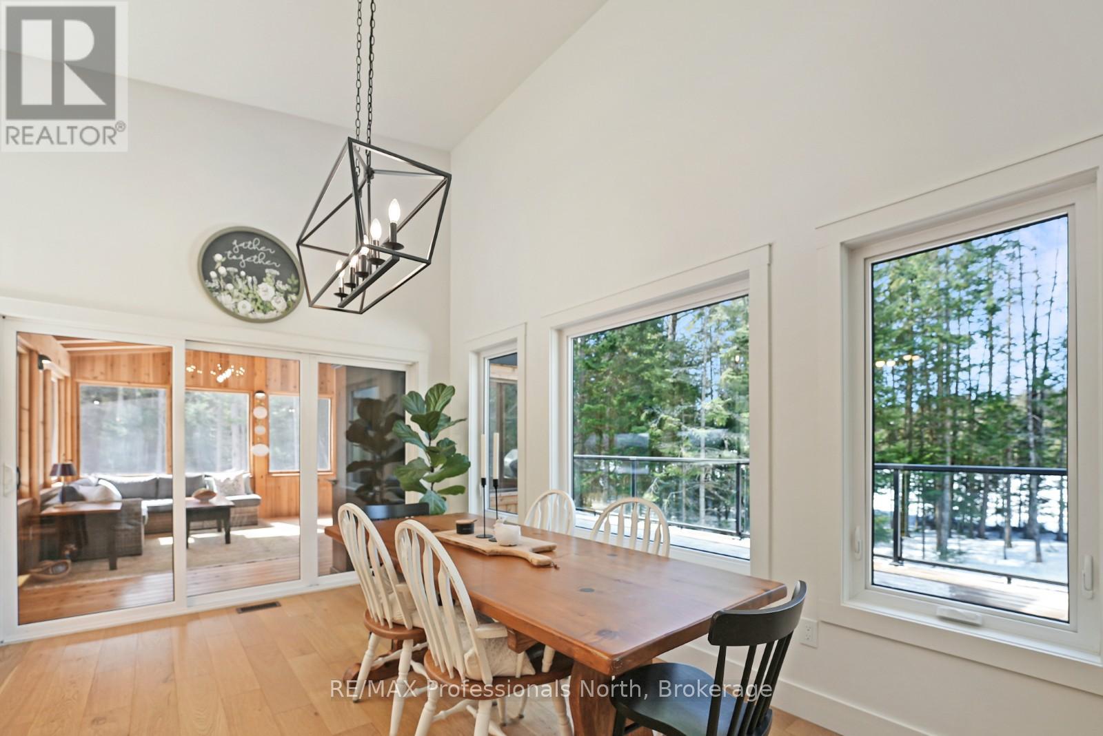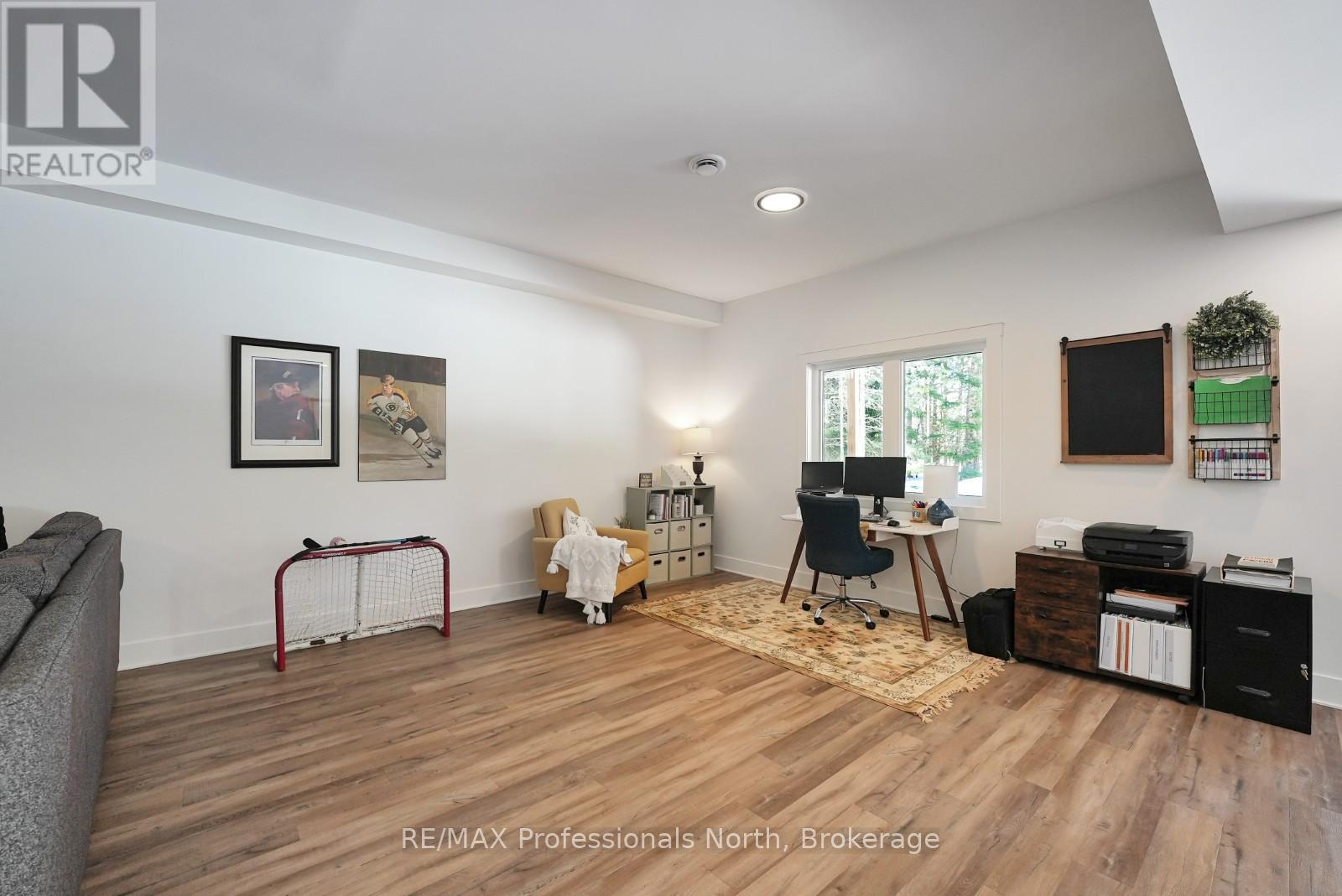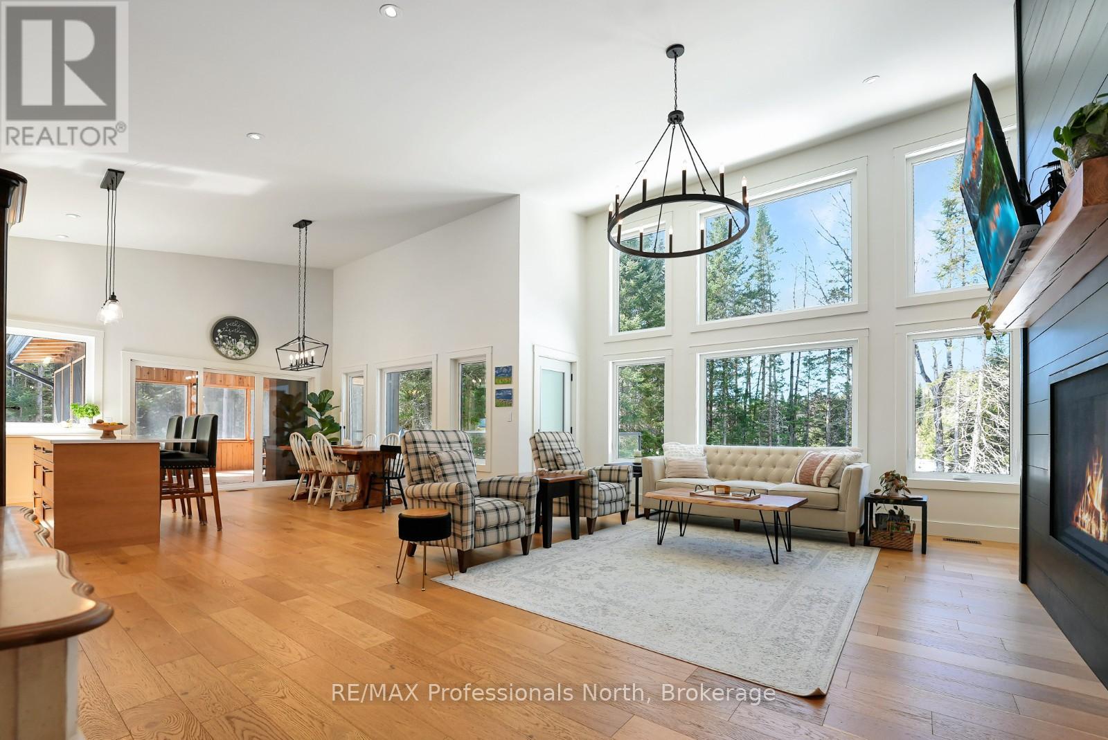 Set on a beautifully treed lot in a welcoming subdivision just five minutes from the Village of Haliburton, this newly built two-level home delivers space, privacy, and everyday convenience. With approximately 3,200 sq. ft. of thoughtfully designed living space, it combines clean, modern finishes with a layout that works seamlessly for families of all stages.The main floor is filled with natural light, anchored by expansive windows and an open-concept living and dining area designed for gathering. The contemporary kitchen features quartz countertops, stainless steel appliances, and a dedicated coffee bar for easy mornings. Just off the main living space, the impressive 16x16 three-season Haliburton Room extends your living area-ideal for relaxed dinners, entertaining friends, or enjoying peaceful views of the surrounding forest. Three spacious bedrooms and two well-appointed bathrooms complete this level.Downstairs, high ceilings and a bright walkout create an inviting extension of the home. A large family room, 2-piece bath, and heated attached workshop/garage add flexibility and function. The fully finished in-law suite, complete with its own entrance, kitchen, bedroom, 3-piece bath, and laundry, offers excellent potential for multi-generational living or supplemental rental income.Nearby walking trails and a tranquil creek enhance the setting, offering a balance of neighbourhood living and connection to nature-all just minutes from town amenities. ** This is a linked property.** (id:64974)