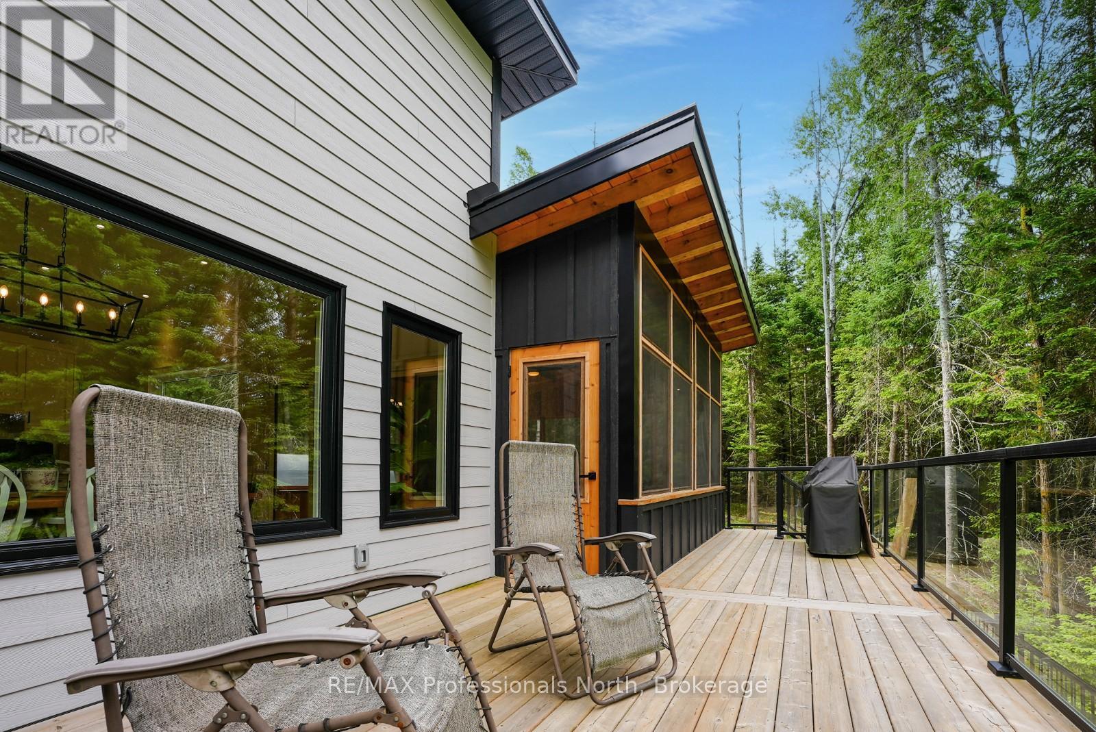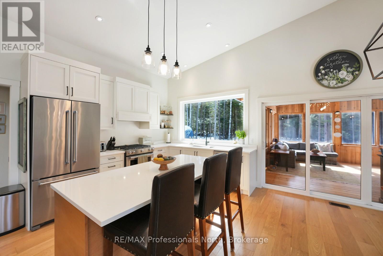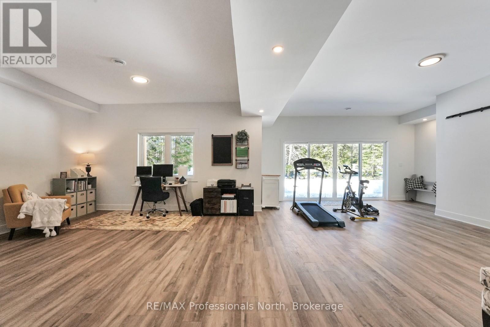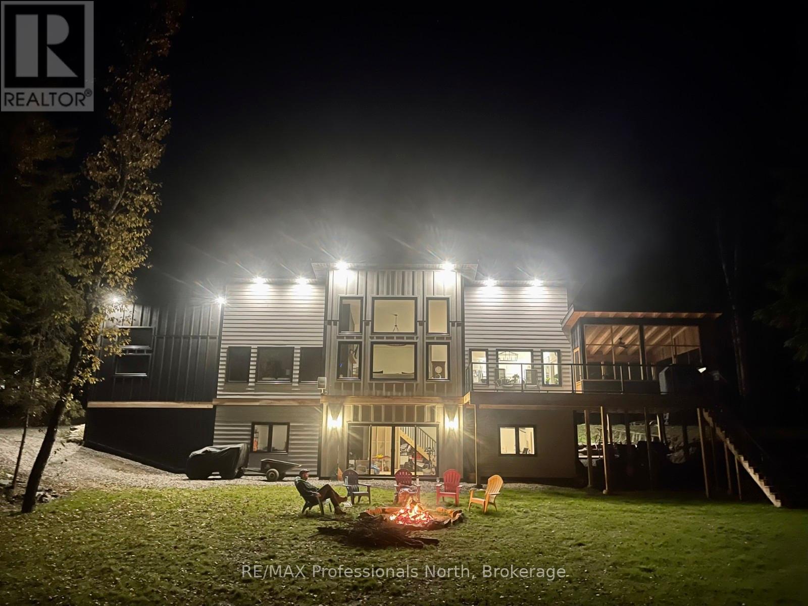 Set on a beautifully treed lot in a welcoming subdivision just five minutes from the Village of Haliburton, this newly built two-level home delivers space, privacy, and everyday convenience. With approximately 3,200 sq. ft. of thoughtfully designed living space, it combines clean, modern finishes with a layout that works seamlessly for families of all stages.The main floor is filled with natural light, anchored by expansive windows and an open-concept living and dining area designed for gathering. The contemporary kitchen features quartz countertops, stainless steel appliances, and a dedicated coffee bar for easy mornings. Just off the main living space, the impressive 16x16 three-season Haliburton Room extends your living area-ideal for relaxed dinners, entertaining friends, or enjoying peaceful views of the surrounding forest. Three spacious bedrooms and two well-appointed bathrooms complete this level.Downstairs, high ceilings and a bright walkout create an inviting extension of the home. A large family room, 2-piece bath, and heated attached workshop/garage add flexibility and function. The fully finished in-law suite, complete with its own entrance, kitchen, bedroom, 3-piece bath, and laundry, offers excellent potential for multi-generational living or supplemental rental income.Nearby walking trails and a tranquil creek enhance the setting, offering a balance of neighbourhood living and connection to nature-all just minutes from town amenities. ** This is a linked property.** (id:64974)