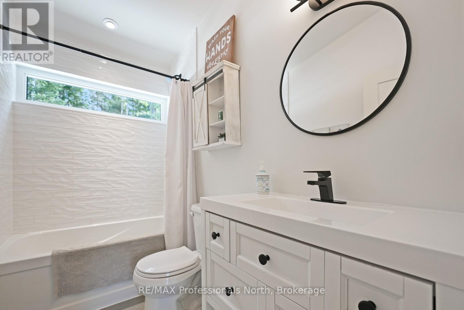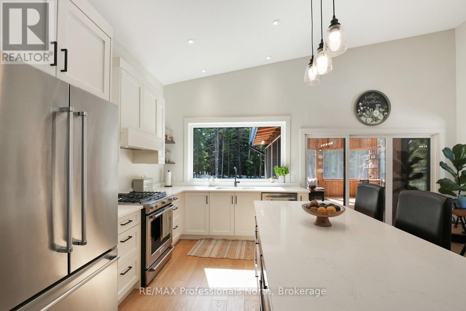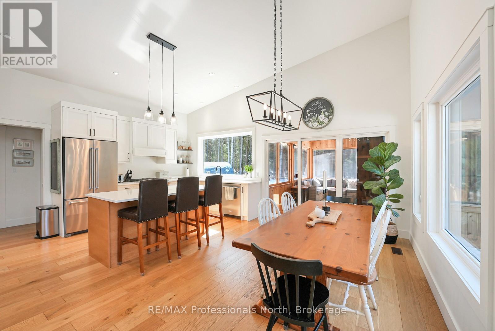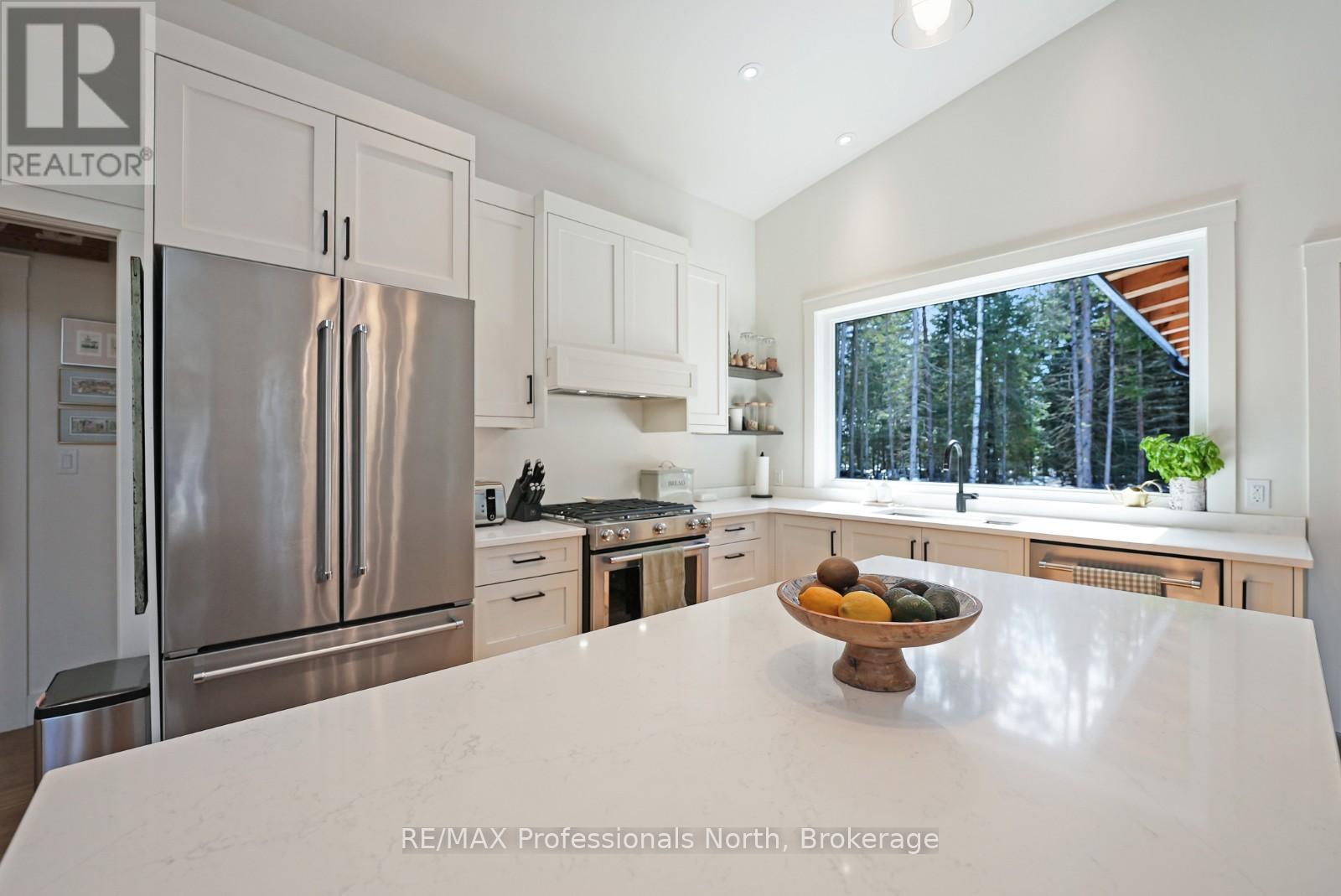 Set on a beautifully treed lot in a welcoming subdivision just five minutes from the Village of Haliburton, this newly built two-level home delivers space, privacy, and everyday convenience. With approximately 3,200 sq. ft. of thoughtfully designed living space, it combines clean, modern finishes with a layout that works seamlessly for families of all stages.The main floor is filled with natural light, anchored by expansive windows and an open-concept living and dining area designed for gathering. The contemporary kitchen features quartz countertops, stainless steel appliances, and a dedicated coffee bar for easy mornings. Just off the main living space, the impressive 16x16 three-season Haliburton Room extends your living area-ideal for relaxed dinners, entertaining friends, or enjoying peaceful views of the surrounding forest. Three spacious bedrooms and two well-appointed bathrooms complete this level.Downstairs, high ceilings and a bright walkout create an inviting extension of the home. A large family room, 2-piece bath, and heated attached workshop/garage add flexibility and function. The fully finished in-law suite, complete with its own entrance, kitchen, bedroom, 3-piece bath, and laundry, offers excellent potential for multi-generational living or supplemental rental income.Nearby walking trails and a tranquil creek enhance the setting, offering a balance of neighbourhood living and connection to nature-all just minutes from town amenities. ** This is a linked property.** (id:64974)