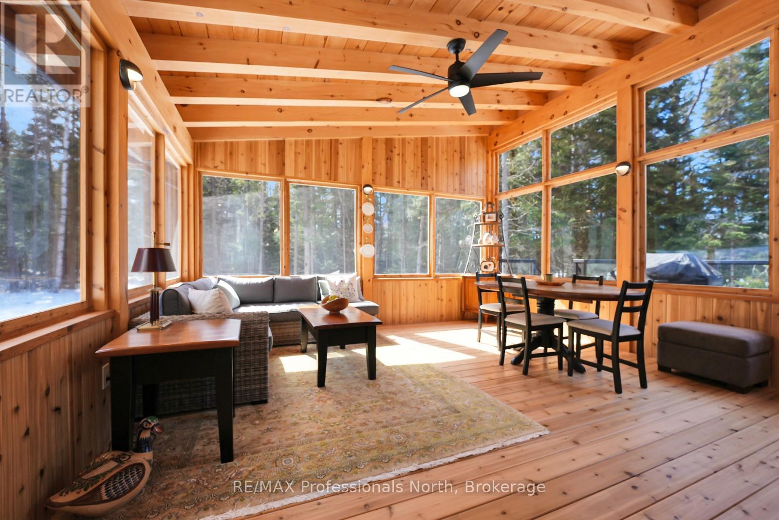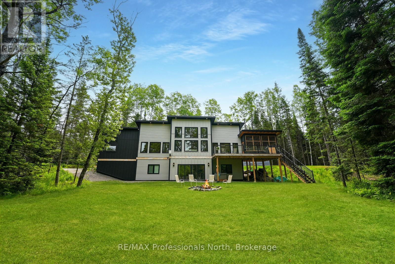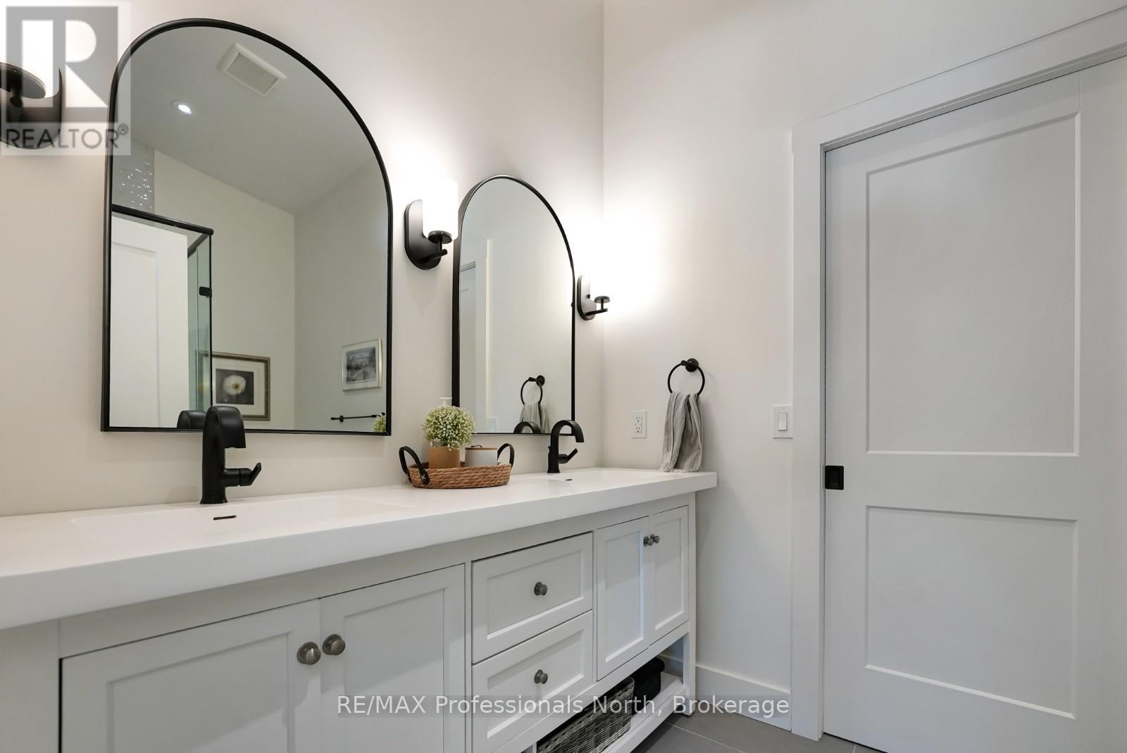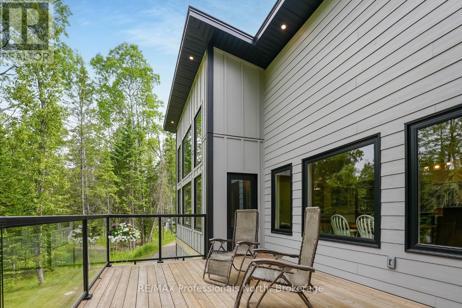 Set on a beautifully treed lot in a welcoming subdivision just five minutes from the Village of Haliburton, this newly built two-level home delivers space, privacy, and everyday convenience. With approximately 3,200 sq. ft. of thoughtfully designed living space, it combines clean, modern finishes with a layout that works seamlessly for families of all stages.The main floor is filled with natural light, anchored by expansive windows and an open-concept living and dining area designed for gathering. The contemporary kitchen features quartz countertops, stainless steel appliances, and a dedicated coffee bar for easy mornings. Just off the main living space, the impressive 16x16 three-season Haliburton Room extends your living area-ideal for relaxed dinners, entertaining friends, or enjoying peaceful views of the surrounding forest. Three spacious bedrooms and two well-appointed bathrooms complete this level.Downstairs, high ceilings and a bright walkout create an inviting extension of the home. A large family room, 2-piece bath, and heated attached workshop/garage add flexibility and function. The fully finished in-law suite, complete with its own entrance, kitchen, bedroom, 3-piece bath, and laundry, offers excellent potential for multi-generational living or supplemental rental income.Nearby walking trails and a tranquil creek enhance the setting, offering a balance of neighbourhood living and connection to nature-all just minutes from town amenities. ** This is a linked property.** (id:64974)