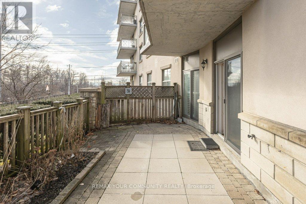Welcome to Villa Giardino! Rarely offered a 2 Bedroom 2 Bath 1000sqft Main Floor unit with a Functional & Open Concept Layout with a Peaceful, Tranquil & Friendly Neighbourhood Vibe. This condo offers an oversized Eat-In Kitchen with combined Dining Room, A Separate Living Room with access to a sun filled and private Garden Terrace with Ravine Views for your year round enjoyment. Also Included are 2 Full 4 Piece Baths with Ensuite Laundry and Central Vacuum for easy living. Close proximity to major attractions such as Vaughan Mills, Canada's Wonderland, The New Cortellucci Vaughan Hospital, Restaurants, HWY 400 and access to Public Transit makes this a don't miss opportunity. All Utilities and Cable TV + Telephone Included In Maintenance Fees with Exercise Room! Also Included, Ample Visitor Parking. Hairdressing Services, One Parking Spot, Locker, Wine Cellar (Cantina) and Standing Freezer. Don't miss out. (id:64974)