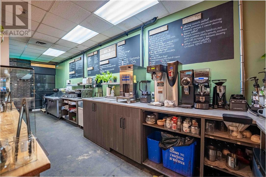 Established in 2016, KuppaJo Espresso Bar is a well-known and highly regarded downtown café recognized for its artisanal coffee, espresso, and welcoming atmosphere. The business has built a strong brand presence and loyal customer base, supported by excellent online reviews and strong community recognition. Ideally located in the heart of Sudbury’s revitalized downtown core, the café benefits from consistent foot traffic and excellent visibility. Fresh baked goods are prepared daily on the premises for café service. A newly signed 5-year lease provides stability and long-term security for future ownership. This is a turnkey opportunity for an owner-operator or investor to acquire a thriving café with an established reputation and continued growth potential. The sale includes an extensive list of equipment and chattels. Contact listing agent for more details. (id:64974)