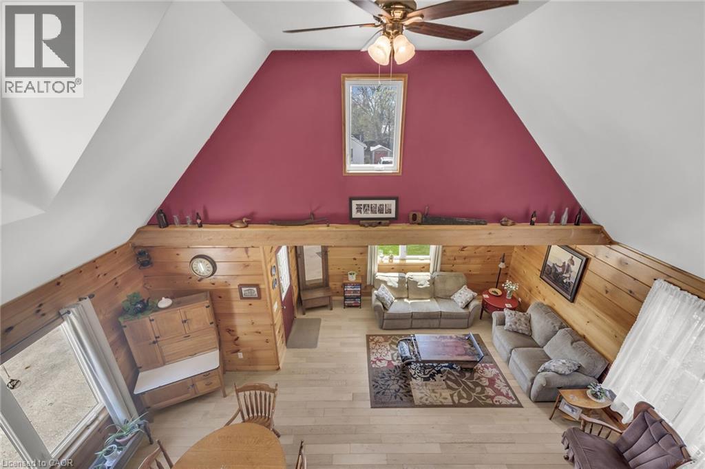 Ideally located, Prime Port Dover 2 bedroom, 1 bathroom home on sought after McNab Street. Showcasing extensively updated 2 bedroom 1.5 storey home and detached garage with totally separate, fully finished loft with vaulted ceilings & gorgeous wood accents throughout. Great curb appeal with vinyl sided exterior, paved driveway, steel roof, back covered porch / carport, & landscaping. The flowing interior layout of the home features vaulted ceilings throughout with pine T&G accents, oak kitchen cabinetry, gorgeous living room, desired Mf bedroom, 4 pc Mf bathroom & laundry room. The upper level includes large second “loft style” bedroom. Upgrades in 2014 include majority of plumbing, electrical, flooring, fixtures, bathrooms, siding, roof, & more. Incredible location close to popular downtown Port Dover amenities, shopping, beach, marinas, parks, & schools. Ideal Investment for the first time Buyer, young family, or those looking to downsize. Beautifully updated & Attractively priced. The Perfect Port Dover Package! (id:64974)