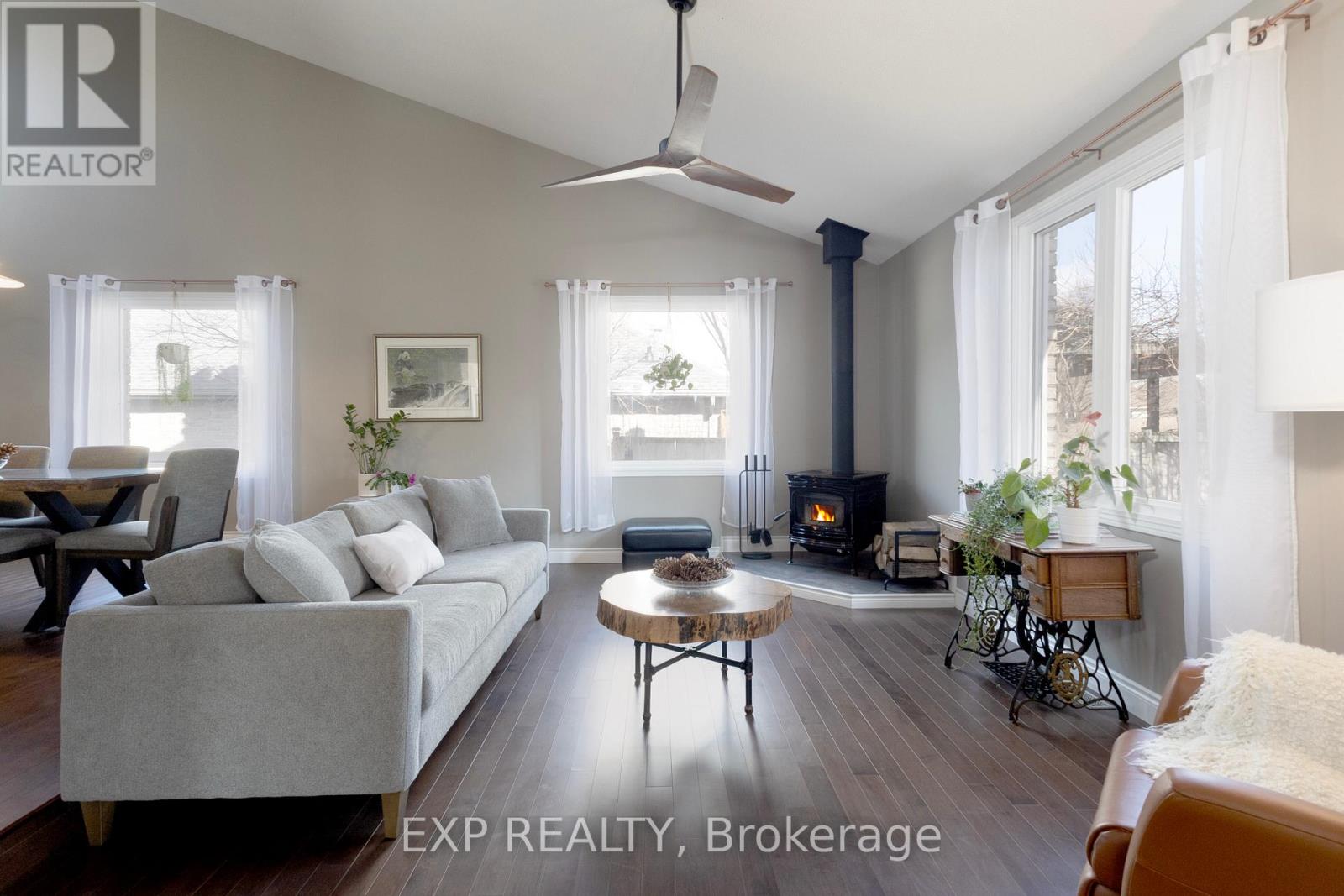 Welcome to 109 Parkview Drive in the heart of Dorchester. This beautifully maintained two-storey home sits on a private, landscaped lot surrounded by mature trees, just steps from the scenic walking trails of Dorchester Mill Pond. Enter through a custom front door into a bright, spacious foyer. The open-concept main floor features soaring cathedral ceilings in the living and dining areas, creating an inviting space filled with natural light. The family room showcases a striking floor-to-ceiling marble feature wall, complete with a modern fireplace and built-in shelving. The custom chef's kitchen is the centre-piece of the home, featuring a 6-burner Dacor gas cooktop, JennAir wall oven system, large island with integrated wine/beer fridge, and numerous custom upgrades. Upstairs offers 3 generously sized bedrooms and 2 bathrooms, including a spacious primary suite with three walk-in closets and luxurious 4-piece ensuite. Additional features include Canadian maple flooring throughout, main floor laundry, oversized 2-car garage, concrete driveway, and storage shed. The unfinished basement includes a newly installed egress window, providing excellent potential for future living space. This meticulously cared-for home offers the perfect blend of comfort, style, and location, ideal for both everyday living and entertaining. (id:64974)
