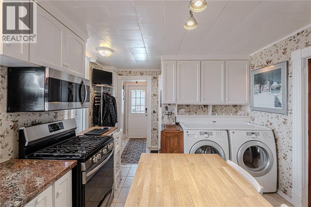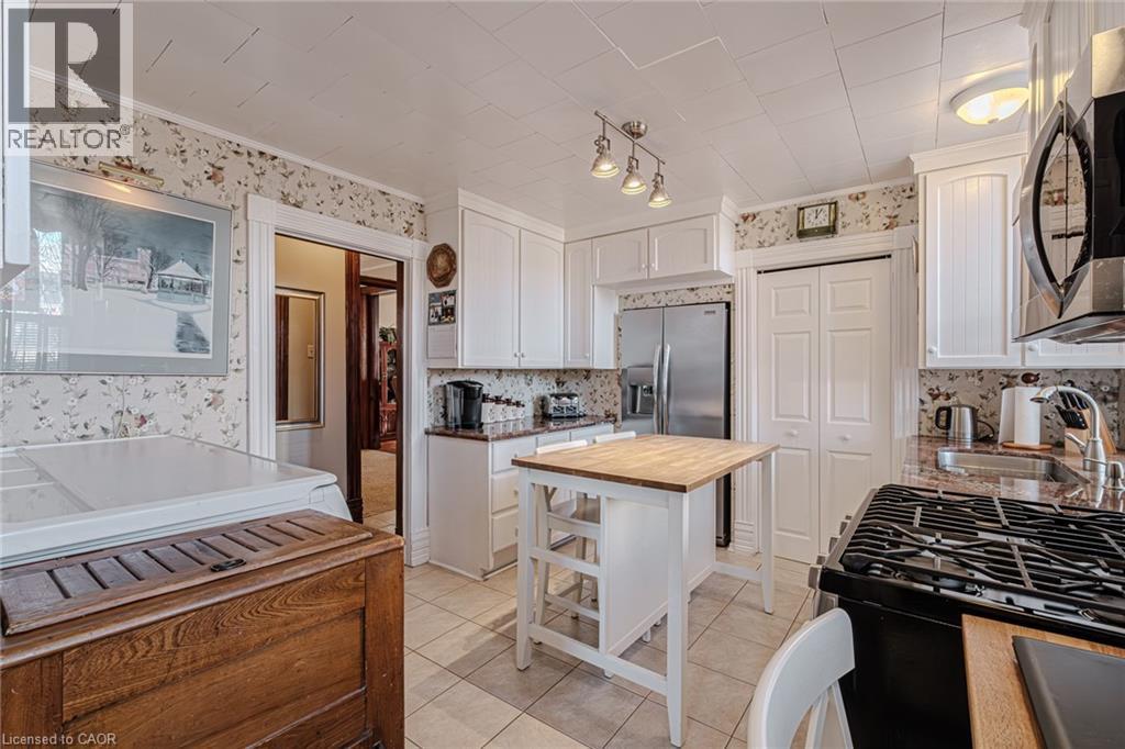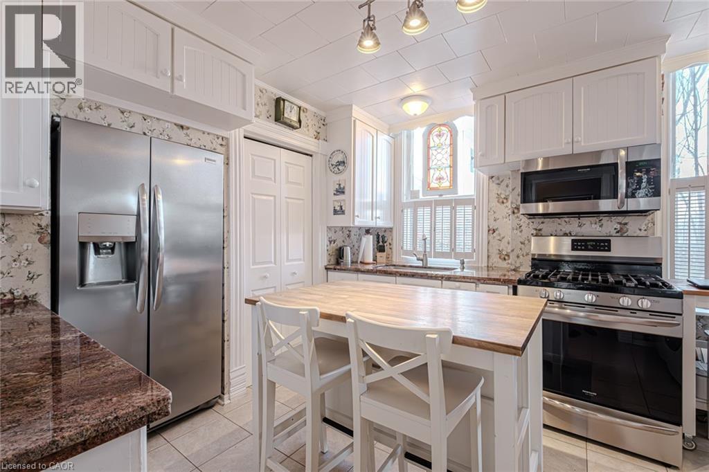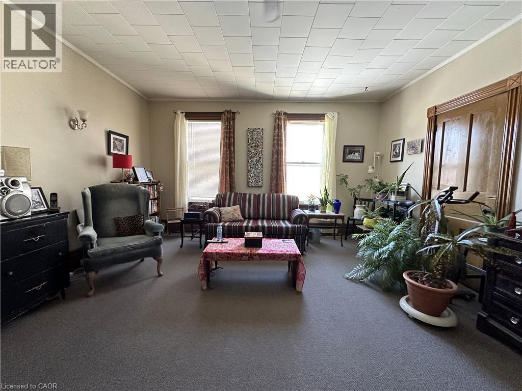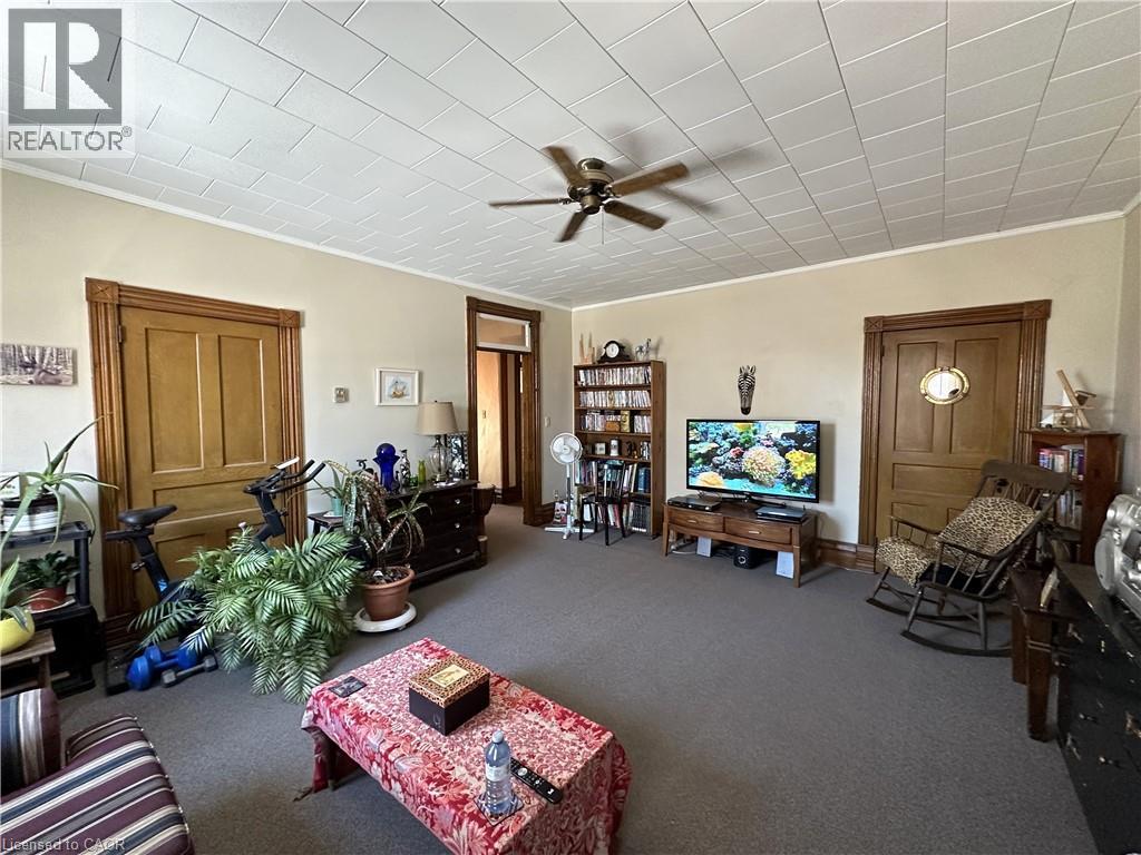 Gorgeous 2.5 story home in the heart of Simcoe. Pull in the private driveway leading to the manicured front yard and the covered porch. Step indoors to the foyer which leads to the parlor. Tall ceilings and stunning original features surround you in this inviting space. From here enter the spacious living room with pocket doors on either side. Original hardwood floors in both the parlor and living room. Natural light beams in from the large windows throughout the mainfloor with a colourful display of stained glass in the dining room. Next is the dining room with plenty of space for the whole family to gather together. Down the hall is the kitchen featuring granite countertops, a pantry and a laundry space (mainfloor laundry!). Just off the kitchen is a door to the backyard. At the back of the home is the first comfortable bedroom, a four piece bathroom, a three piece bathroom and the primary bedroom. Follow the stairs up in the main unit to loft space with an extra bedroom, storage closet and a large attic space that could be finished into additional living space. The unfinished basement houses the utilities and provides storage space. Looking for more? Head up to the second unit with two bedrooms, an eat-in kitchen, 4 piece bathroom, spacious living room and a walk-out to the sun porch. Outdoors the backyard provides space for relaxing, gardening, barbecuing and entertaining. The garage is perfect for storing all those extras in life. This charming property is perfect for a family or an investor. Located near shopping, library, schools and more. (id:64974)