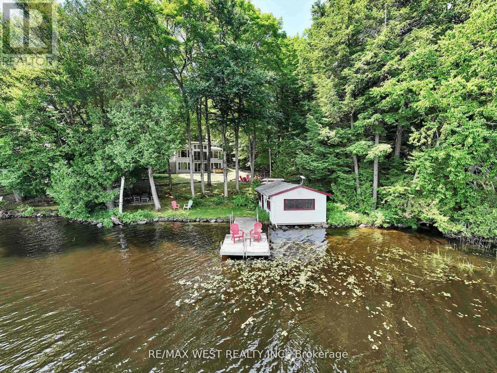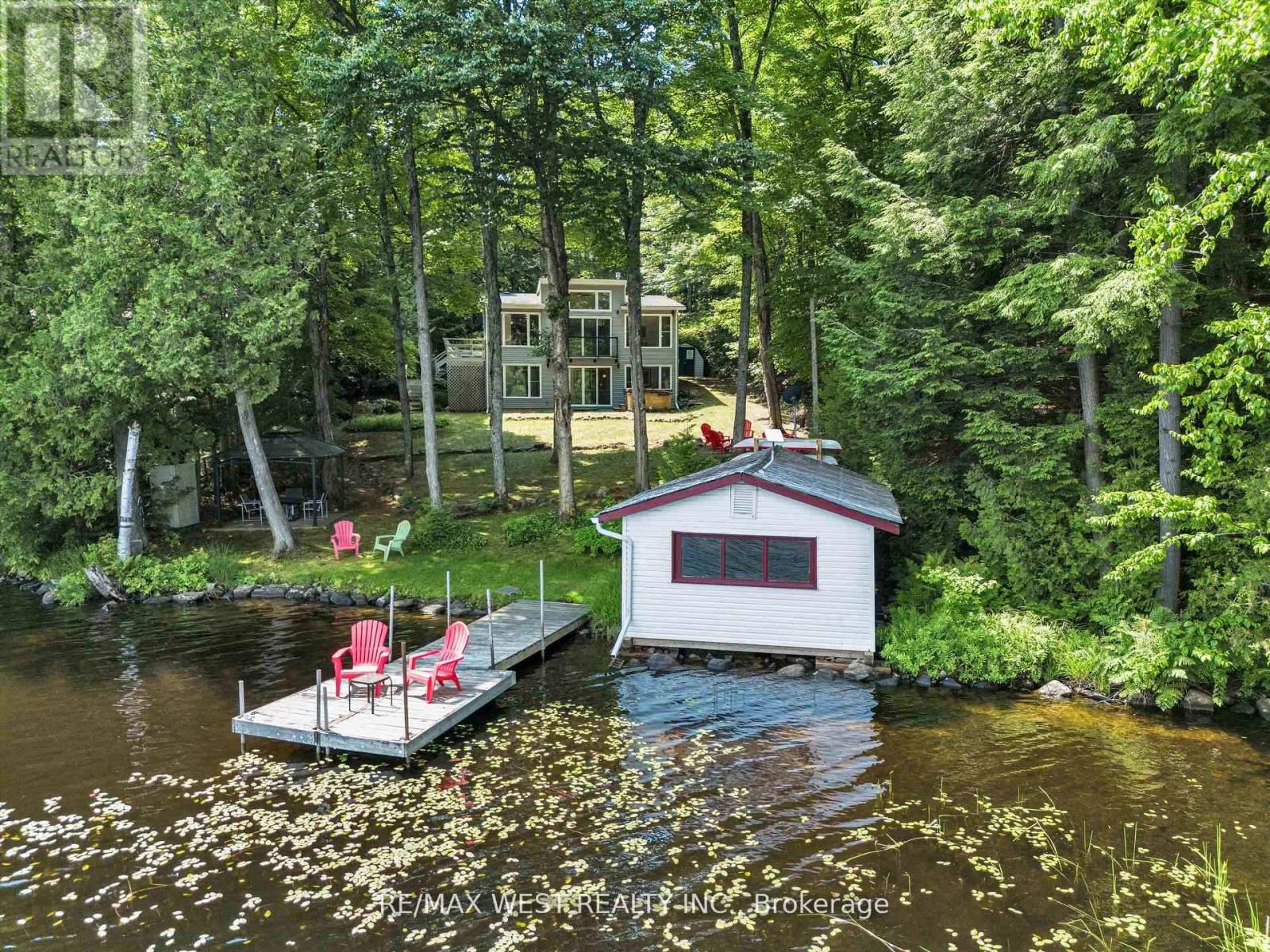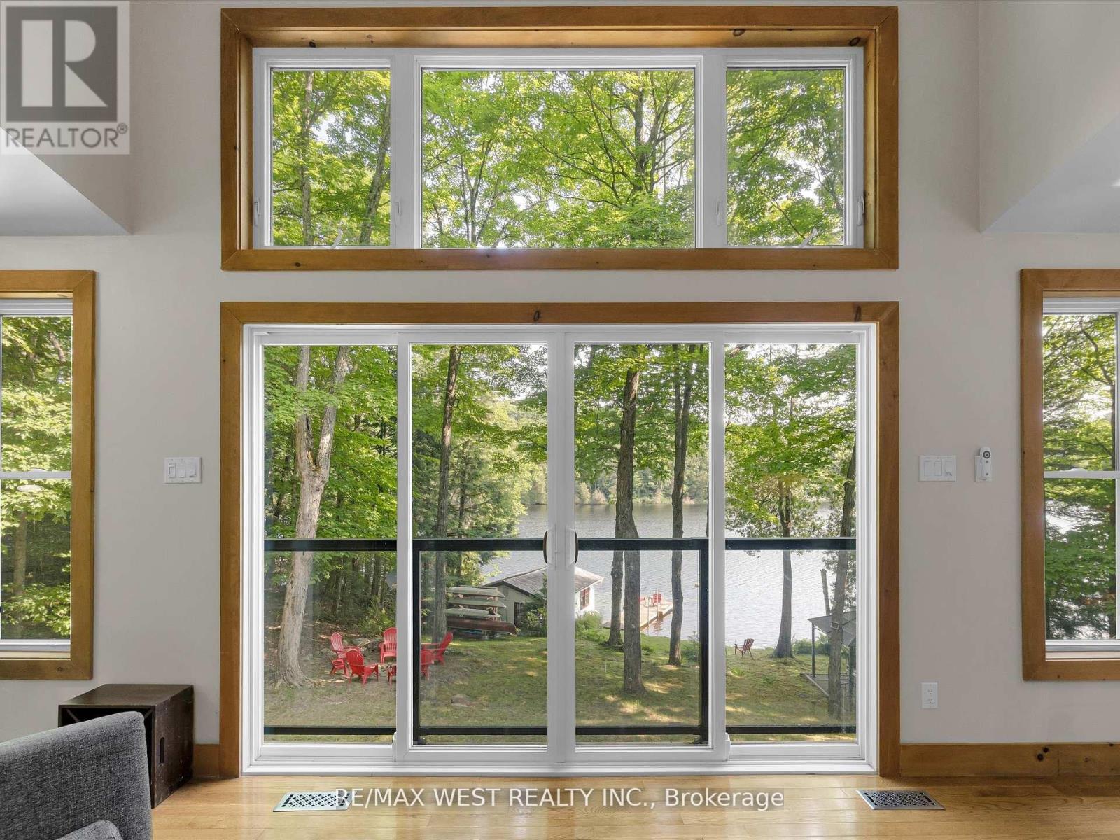 A Hidden Gem & Turn-Key Muskoka Waterfront Retreat. Welcome to a true hidden gem on the tranquil shores of Ril Lake in the heart of Lake of Bays, Muskoka. From the road, it may appear to be a modest bungalow, but step inside and discover a beautifully expanded, thoughtfully renovated two-story retreat that effortlessly combines rustic Muskoka charm with modern comfort and elegance. This fully furnished, four-season home offers over 83 feet of private, sandy-bottom shoreline with a rare boathouse at the waterline, perfect for storing water toys or casting a line right from shore. Whether you're searching for a family sanctuary, an income-ready investment, or a peaceful year-round residence, this property invites you to step out of the ordinary and into your own Muskoka story. Inside, the open-concept main floor welcomes you with a sunlit living room centered around a gas fireplace, flowing into a dining area, sitting nook, and work space all wrapped in stunning views of the trees and lake. Downstairs, a spacious family room with a wood-burning fireplace sets the stage for cozy nights, while the bright sunroom offers the perfect place for games, reading, or afternoon naps. There's also a roughed-in sauna room, waiting to become your personalized wellness space. Step outside and the magic continues. A hot tub tucked beneath the trees, a gazebo with a propane fire table, Muskoka chairs perfectly placed for sunset watching, and a private dock with a canoe, kayaks, and SUP. Everything is here and ready to enjoy! This is more than a cottage. It's a ready-made experience. Whether you're roasting marshmallows under starlit skies, hosting a family get-together, fishing from your dock, or simply sipping coffee in the sunroom, every moment here feels intentional and full of heart. Just bring your people, your provisions, and your love for the Muskoka lifestyle. The rest is already here, waiting for you. Wow, the seller is offering Vendor Take-Back at just 2%. (id:64974)