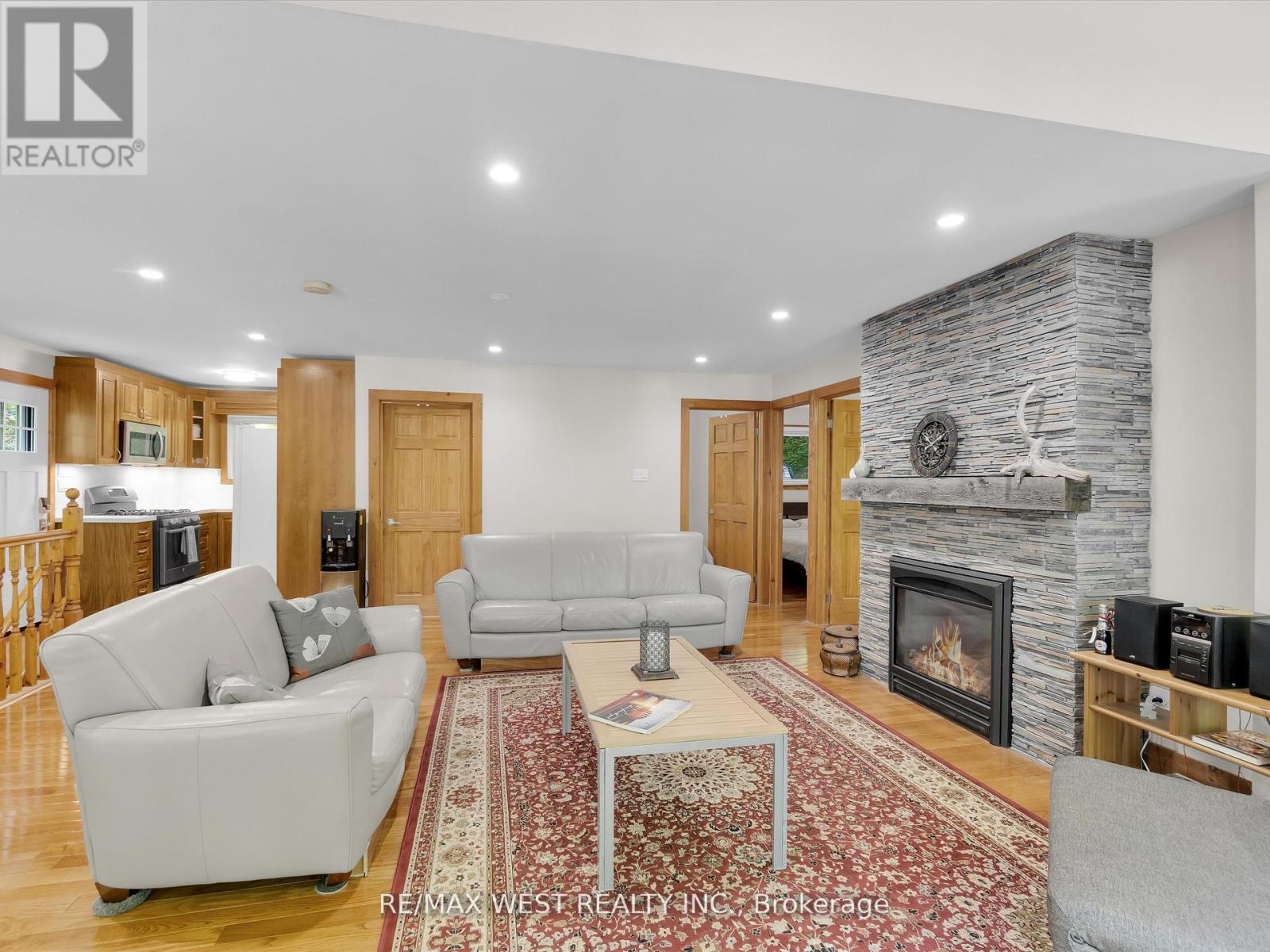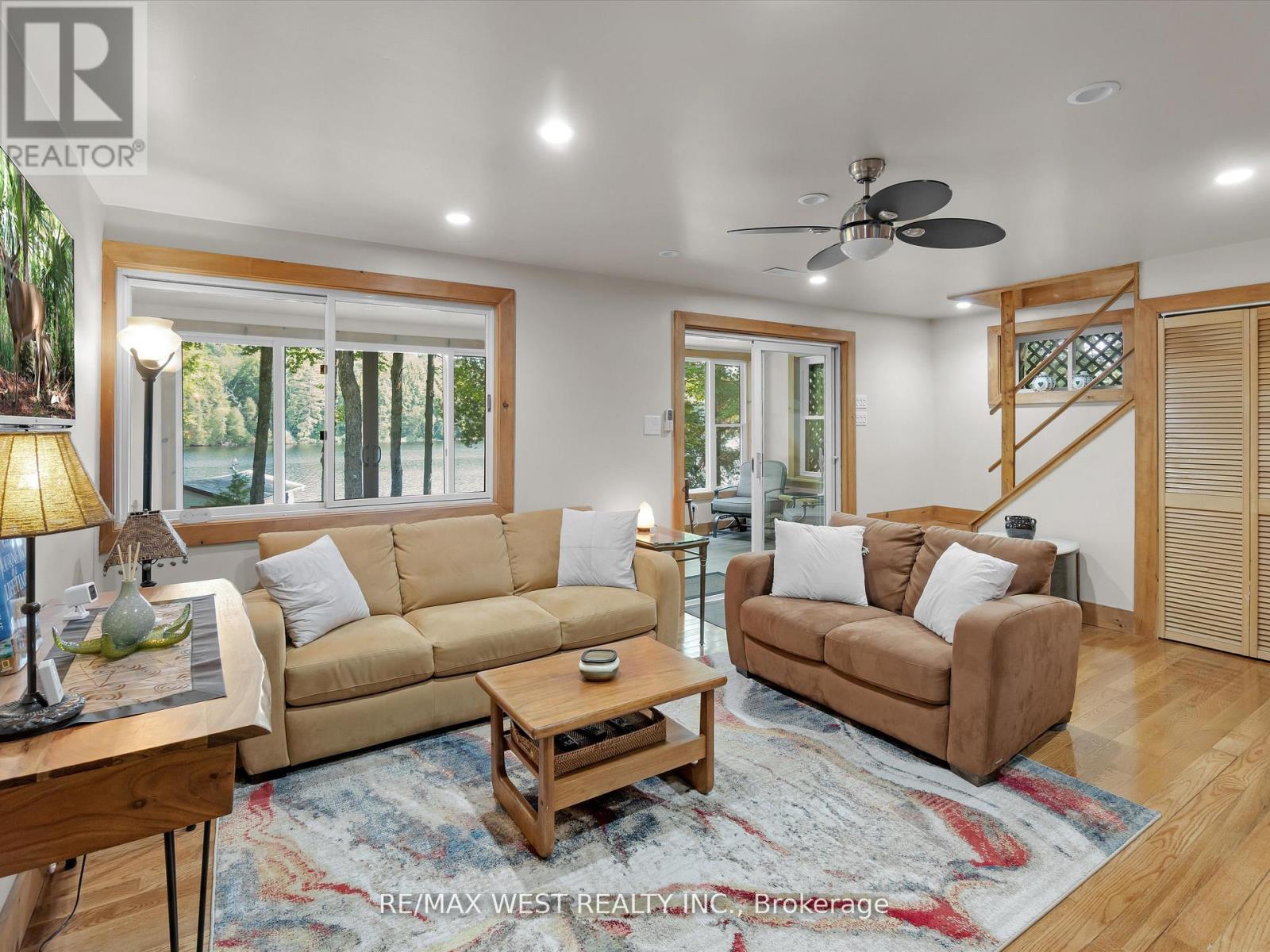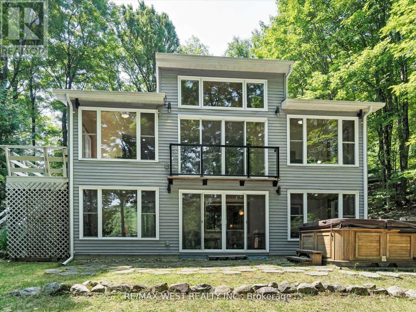 A Hidden Gem & Turn-Key Muskoka Waterfront Retreat. Welcome to a true hidden gem on the tranquil shores of Ril Lake in the heart of Lake of Bays, Muskoka. From the road, it may appear to be a modest bungalow, but step inside and discover a beautifully expanded, thoughtfully renovated two-story retreat that effortlessly combines rustic Muskoka charm with modern comfort and elegance. This fully furnished, four-season home offers over 83 feet of private, sandy-bottom shoreline with a rare boathouse at the waterline, perfect for storing water toys or casting a line right from shore. Whether you're searching for a family sanctuary, an income-ready investment, or a peaceful year-round residence, this property invites you to step out of the ordinary and into your own Muskoka story. Inside, the open-concept main floor welcomes you with a sunlit living room centered around a gas fireplace, flowing into a dining area, sitting nook, and work space all wrapped in stunning views of the trees and lake. Downstairs, a spacious family room with a wood-burning fireplace sets the stage for cozy nights, while the bright sunroom offers the perfect place for games, reading, or afternoon naps. There's also a roughed-in sauna room, waiting to become your personalized wellness space. Step outside and the magic continues. A hot tub tucked beneath the trees, a gazebo with a propane fire table, Muskoka chairs perfectly placed for sunset watching, and a private dock with a canoe, kayaks, and SUP. Everything is here and ready to enjoy! This is more than a cottage. It's a ready-made experience. Whether you're roasting marshmallows under starlit skies, hosting a family get-together, fishing from your dock, or simply sipping coffee in the sunroom, every moment here feels intentional and full of heart. Just bring your people, your provisions, and your love for the Muskoka lifestyle. The rest is already here, waiting for you. Wow, the seller is offering Vendor Take-Back at just 2%. (id:64974)