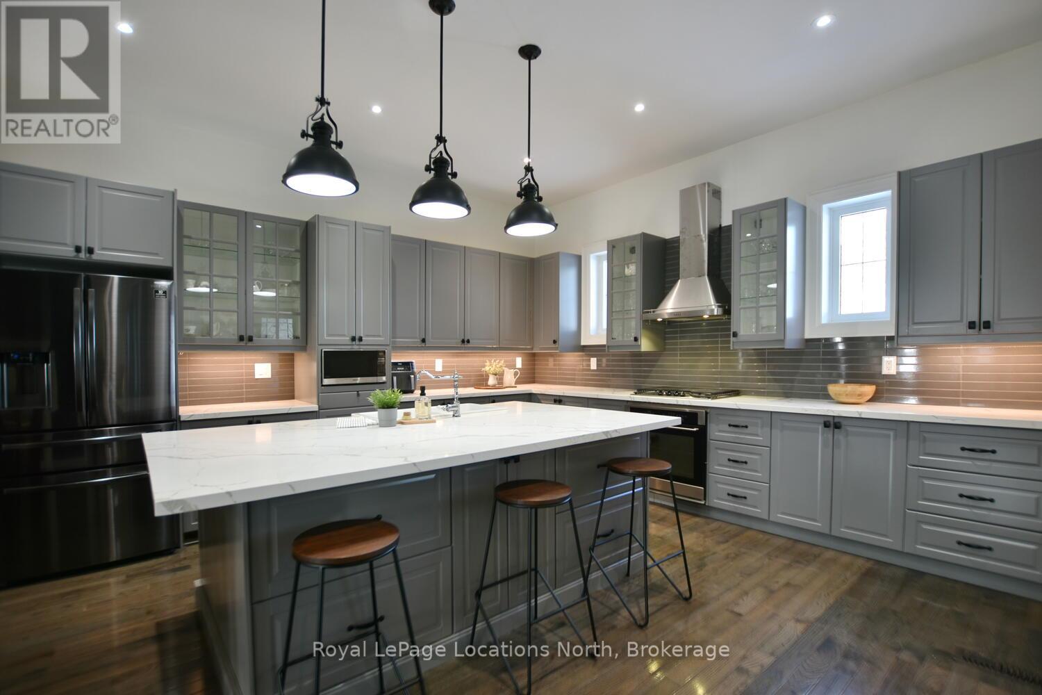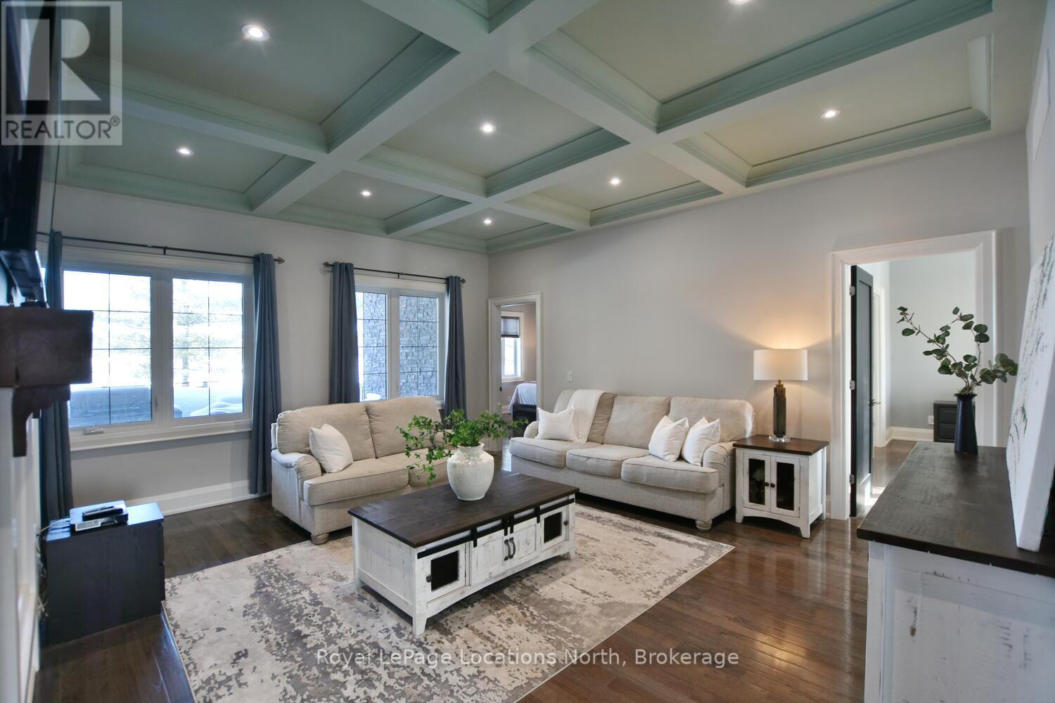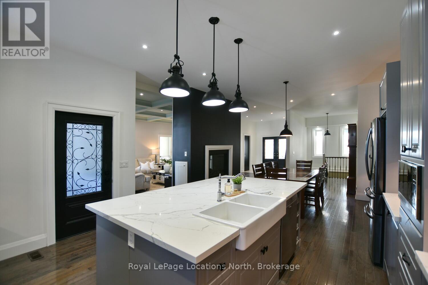 Welcome to 1092 County Road 124 in the charming village of Singhampton, perfectly positioned between the amenities of Collingwood, the ski hills of Blue Mountain and the sandy shores of Wasaga Beach. This custom-built bungalow offers the ideal blend of privacy, space and four-season recreation, all set on an impressive lot of just under one acre. Thoughtfully designed with comfort and functionality in mind, this 3 bedroom, 3.5 bathroom home features a bright, open-concept main floor with soaring ceilings and generous windows that flood the space with natural light. The inviting living area flows seamlessly into the dining space and well-appointed kitchen, creating an ideal layout for entertaining or everyday living. Direct access to the covered back deck extends your living space outdoors-perfect for summer barbecues, morning coffee or relaxing evenings overlooking your expansive property. The primary suite is a true retreat, offering impressive ceiling height, ample closet space and a spa-inspired ensuite designed to feel like your own private oasis. Two additional bedrooms and well-designed bathrooms provide comfort and convenience for family or guests. A welcoming covered front entrance adds charm and curb appeal while offering practical shelter year-round. The fully finished basement expands your living space with exceptional versatility. Enjoy movie nights in your dedicated theatre room, unwind in the private sauna, or take advantage of the additional living and recreation areas that make this lower level perfect for entertaining or extended family stays. A spacious two-car garage and ample driveway parking complete the package. Located close to hiking, cycling and snowmobile trails, golf, skiing and Georgian Bay, this property offers the best of country living with easy access to nearby towns and amenities. Experience space, style and lifestyle all in one exceptional Singhampton home!! Call now for a private tour!! (id:64974)