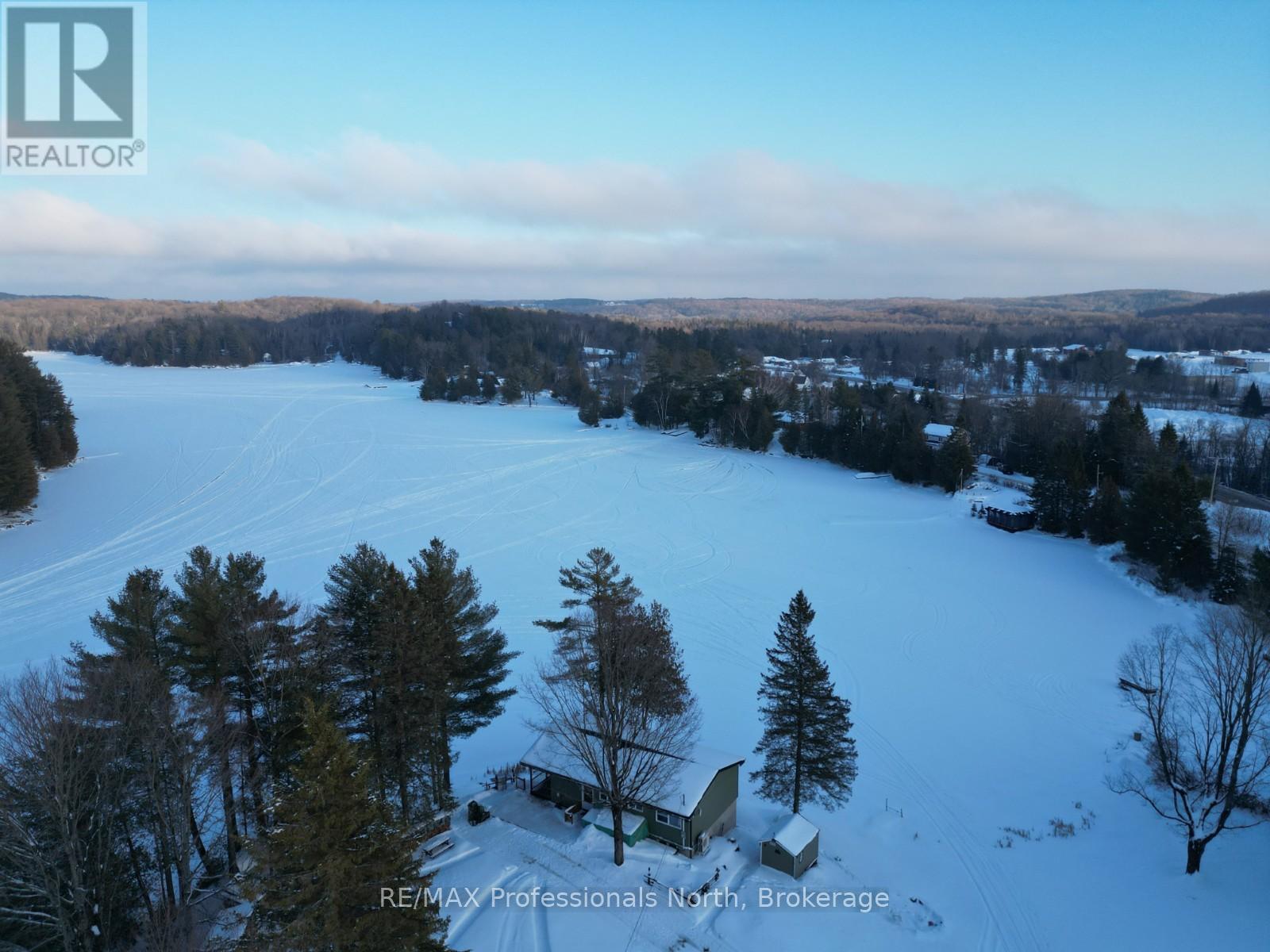 Two-storey family home offering 3 bedrooms and 1 bathroom, with main floor laundry. Situated on just under half an acre, the property features a 23' x 13' carport and a 16' x 12' shed for added storage. With views of Gooderham Lake and a walkable location to the village of Gooderham for the public beach, grocery essentials, library, and more, this home offers a solid foundation and the opportunity to update or refresh according to your own vision. Approximately 25 minutes to Haliburton for schools, restaurants, and health care services. (id:64974)