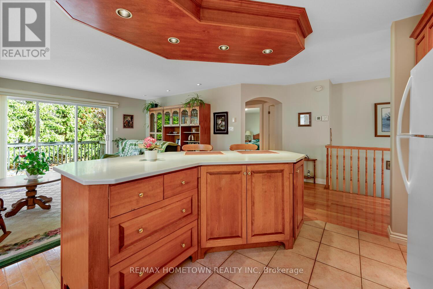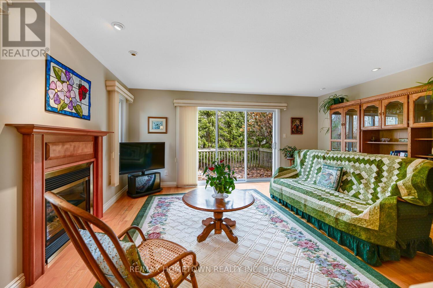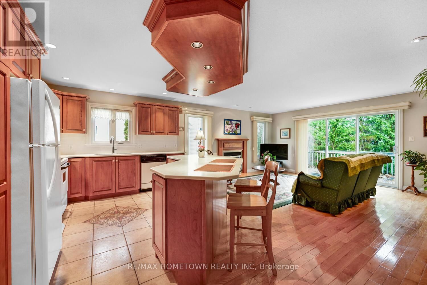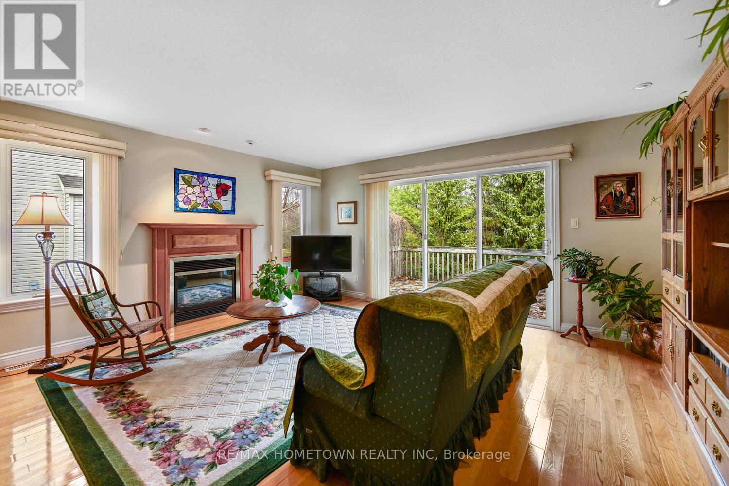 A rare and remarkable offering in the prestigious Bridlewood Subdivision, a community cherished since the early 1990s for its exceptional construction and enduring beauty under the stewardship of a family owned business, Bridlewood Homes Inc. This first-time-to-market bungalow showcases a thoughtfully modified Bridlewood floor plan and reflects a standard of care that feels almost untouched-truly a testament to pride of ownership. From the curb, the home sets an elegant tone with its full interlocking driveway, double garage, coordinated brick exterior, and interlocking walkway leading to the entrance. Inside, the generous foyer-with its double closet-opens gracefully into a pillared living and dining room crowned by a cathedral ceiling. An oversized casement window washes this space in natural light, creating an airy, inviting atmosphere that feels both classic and timeless. The beautifully updated kitchen offers abundant cabinetry and an eating island, opening seamlessly into a large family room anchored by a gas fireplace with oak mantle. A stunning triple patio door spans the rear wall, framing a truly extraordinary backyard-an expansive, private retreat lined with tall spruce trees that create the essence of country living within city limits. The primary suite offers a walk-in closet and a fully renovated, easily accessible ensuite. A second bedroom and a bright four-piece bath serve guests and family with equal comfort. The open, rail-detailed staircase leads to a bright 1,600 sq. ft. lower level, fully drywalled with electrical to code, oversized windows, and a three-piece rough-in-an exceptional canvas for future living space. With a newer roof, newer furnace, immaculate upkeep, and immediate availability, this home offers an elevated lifestyle suited to families, professionals, and retirees seeking refined living in Brockville's five-star, red-ribbon Bridlewood community. (id:64974)